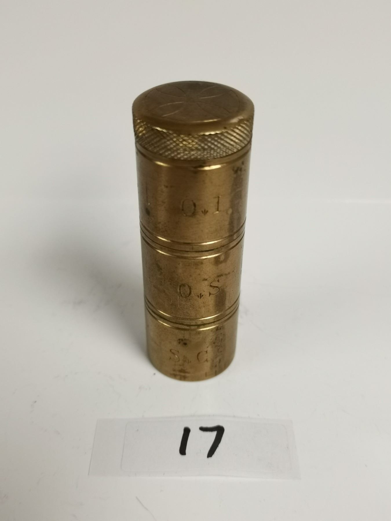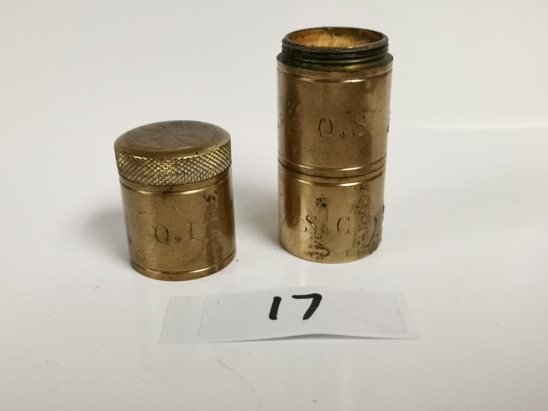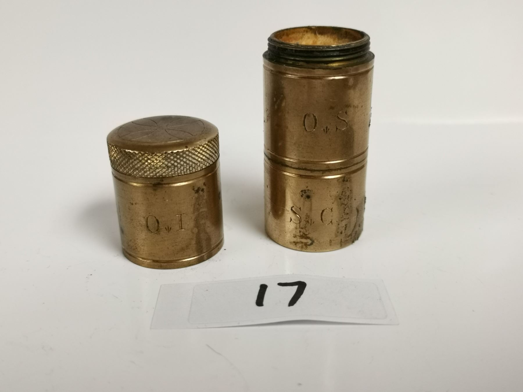 Antique brass religion triple oil stock last rights container