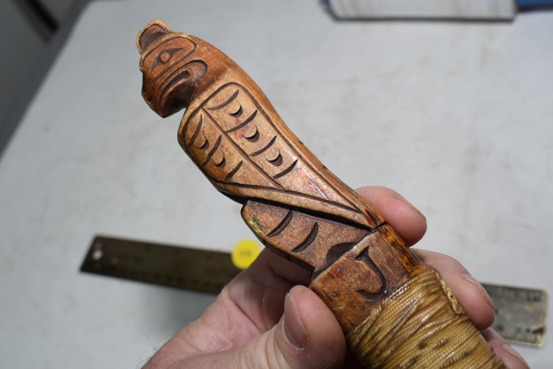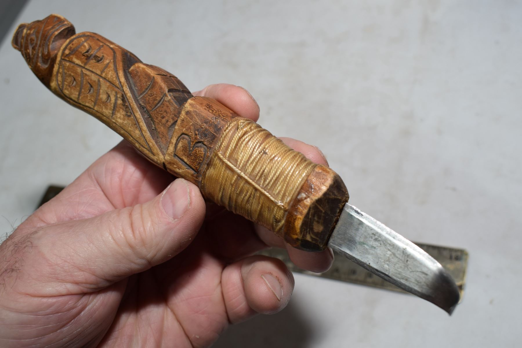 Antique carved knife, horse hoof?