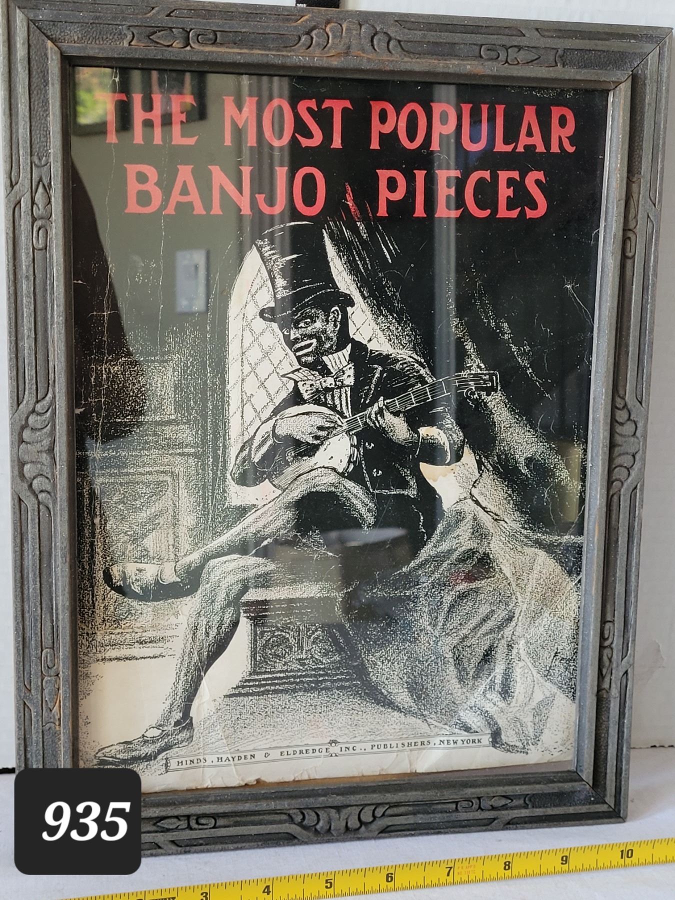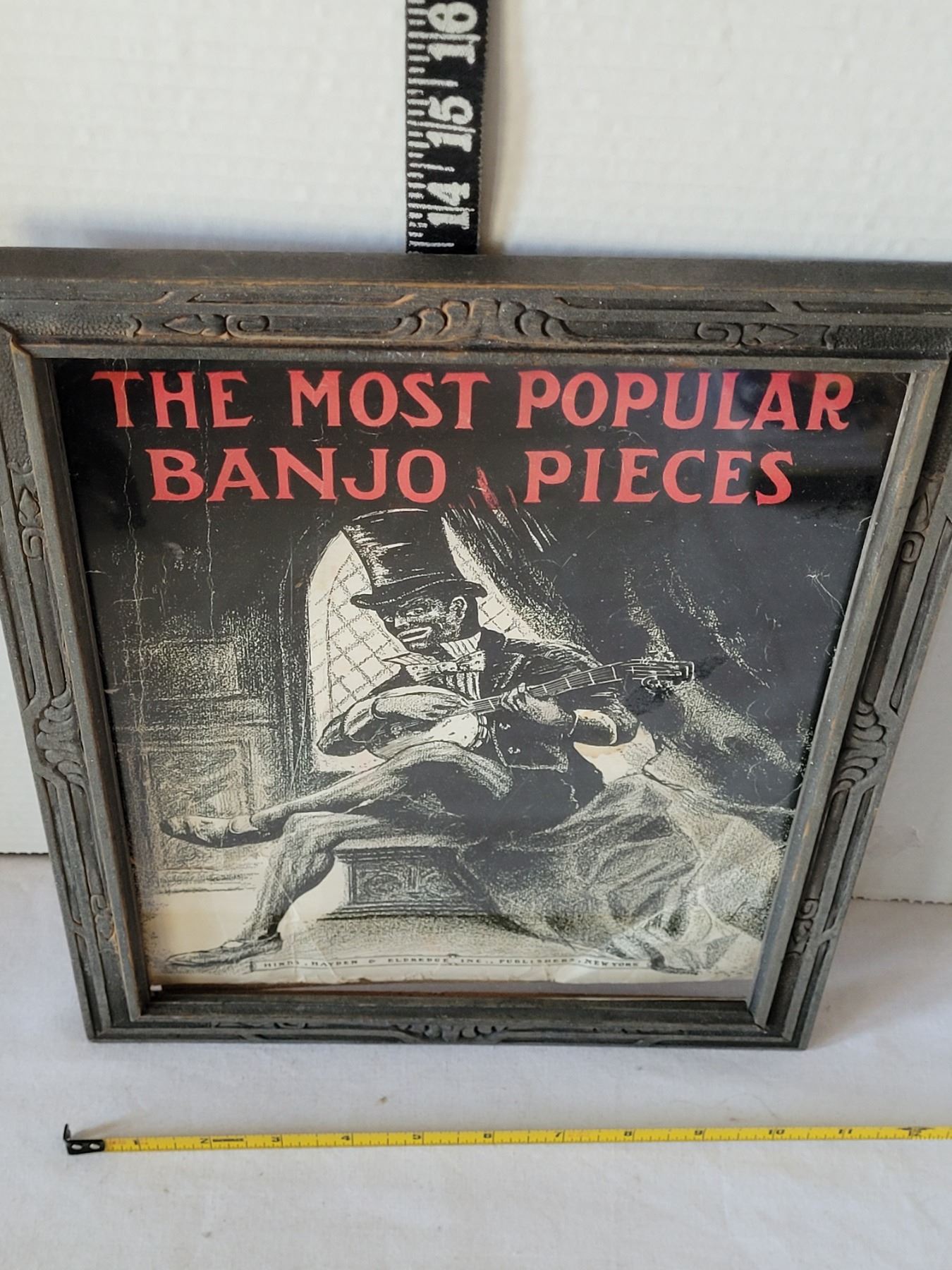 Antique framed Black Americana Banjo player. Hinds, Hayden & Eldridge publishers, New York