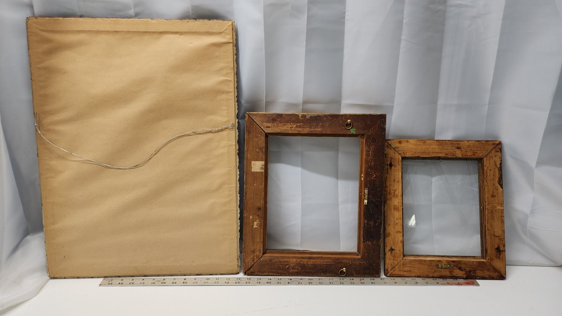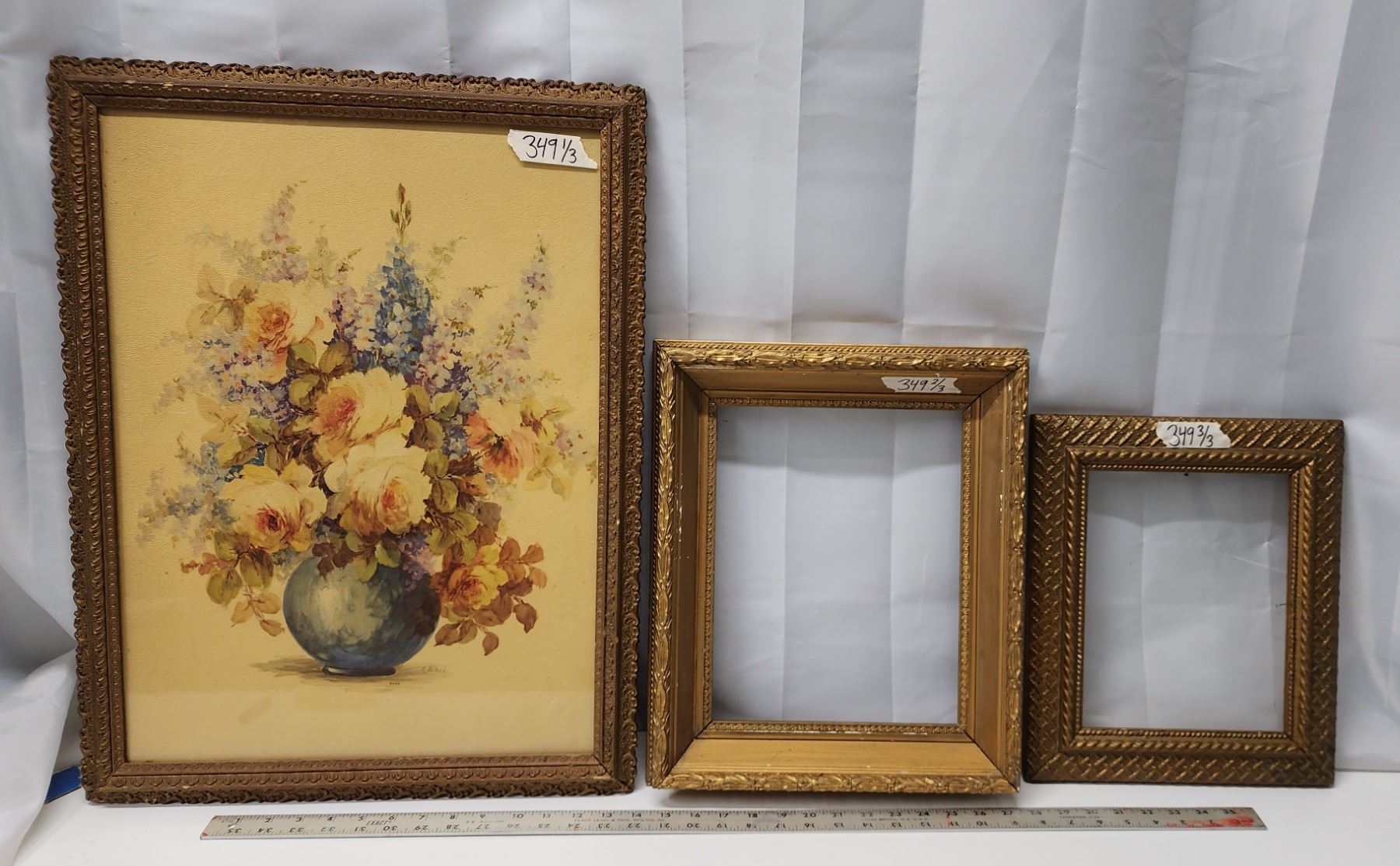 Antique framed picture, in ornate frame & 2 gold toned antique frames - 1 has glass
