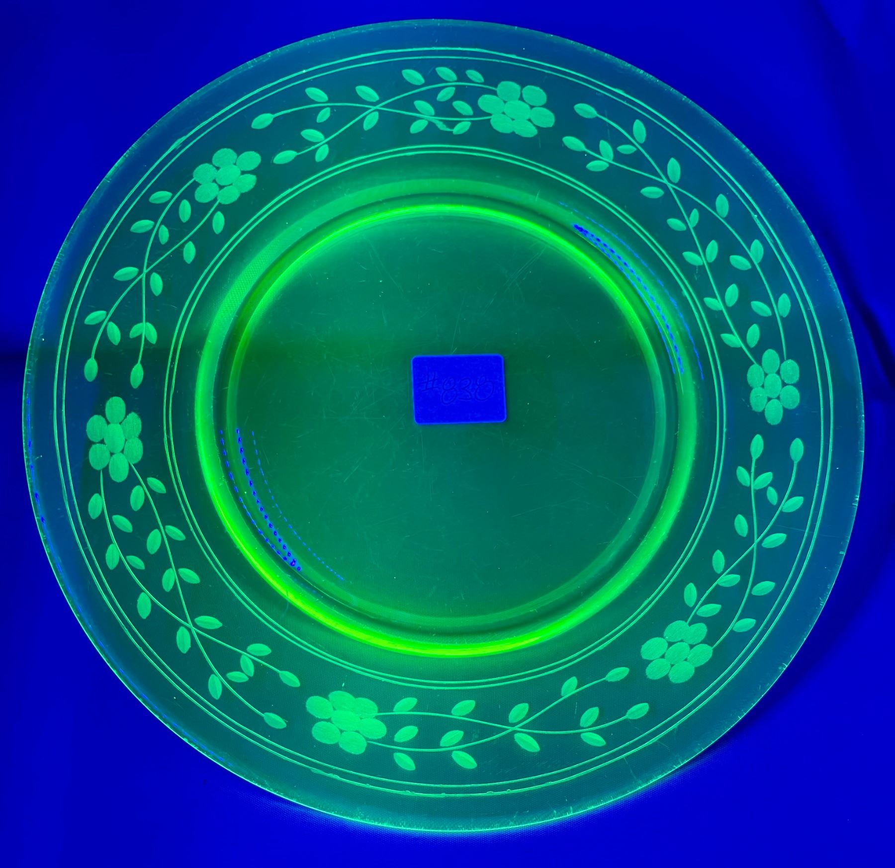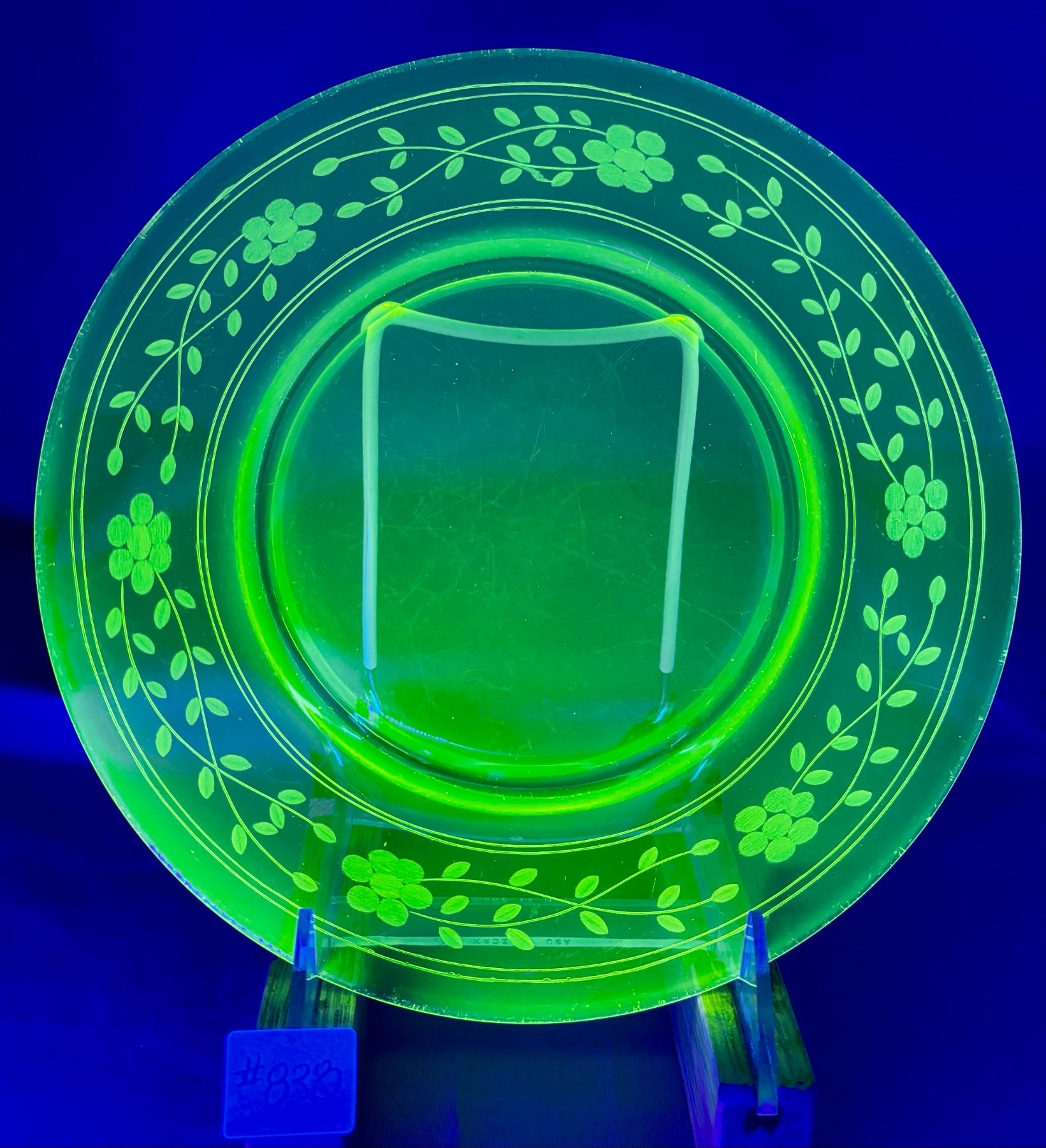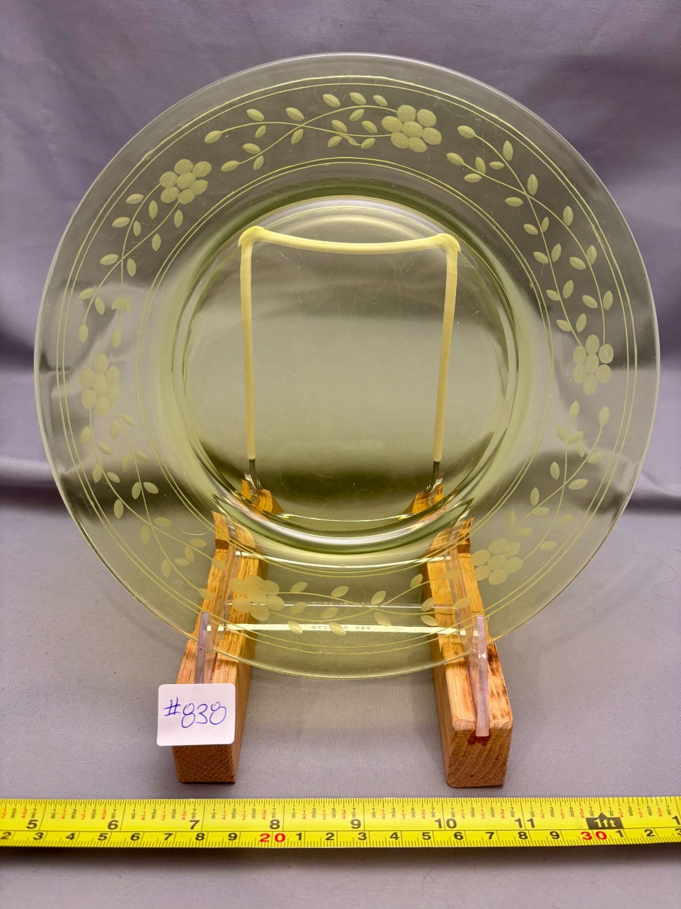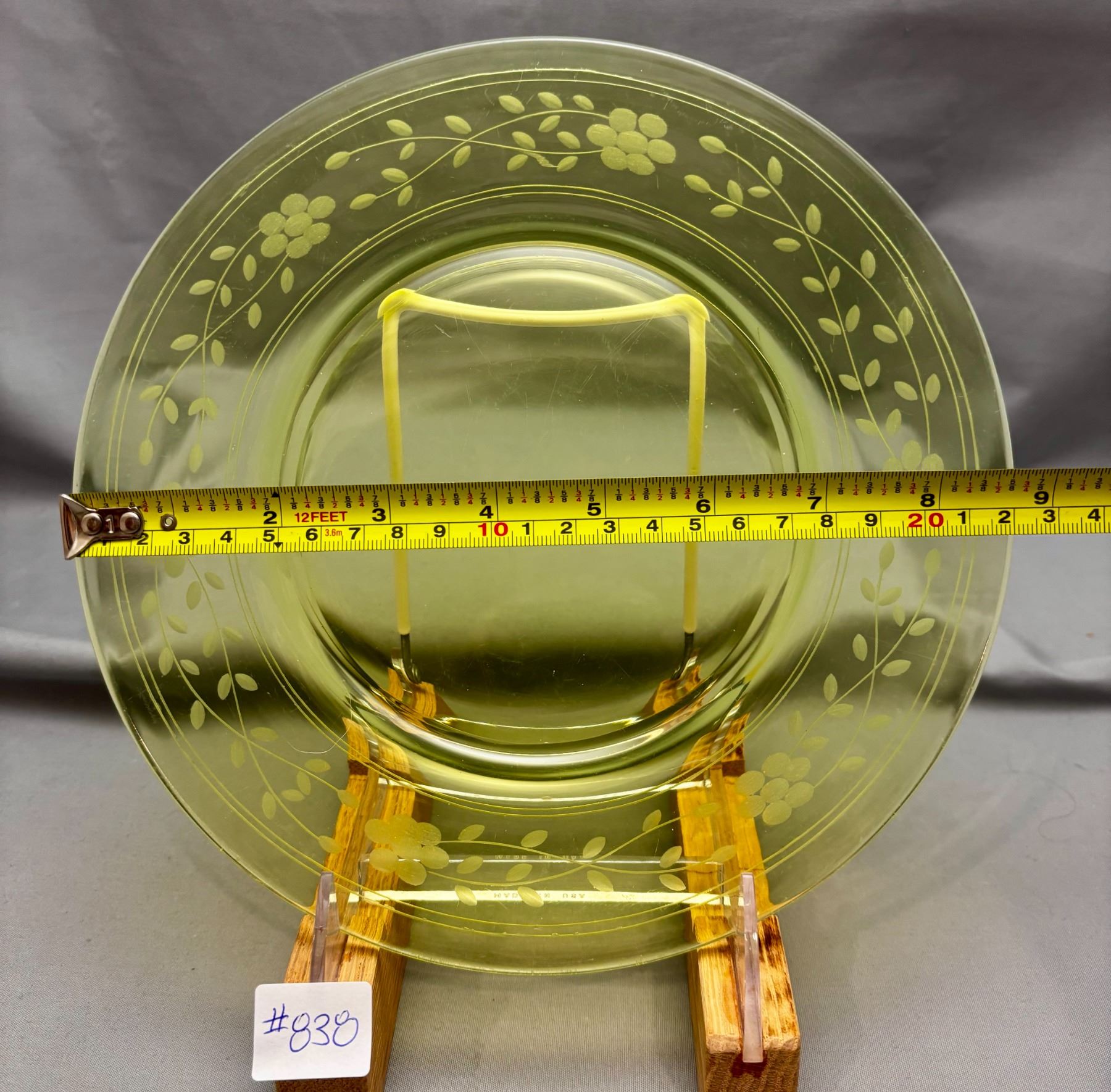 Antique late 1890's Uranium Glass Acid Etched Wheel Cut 8¾" Dinner Plate