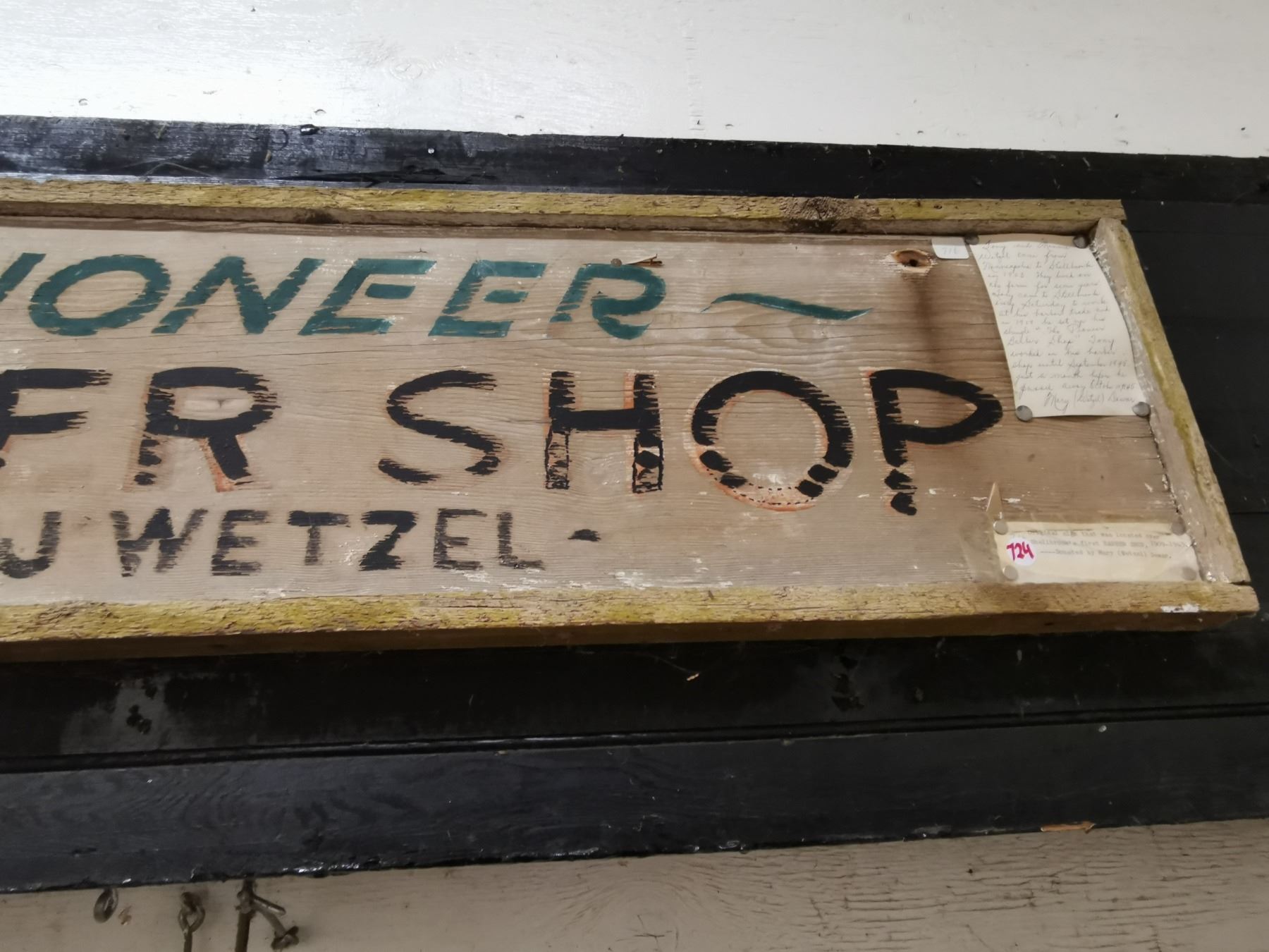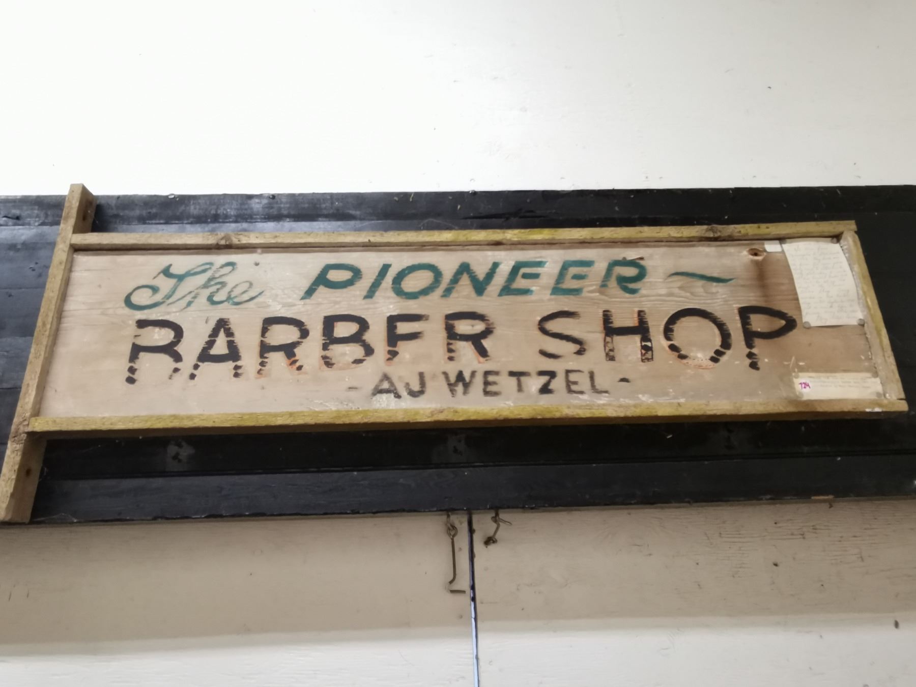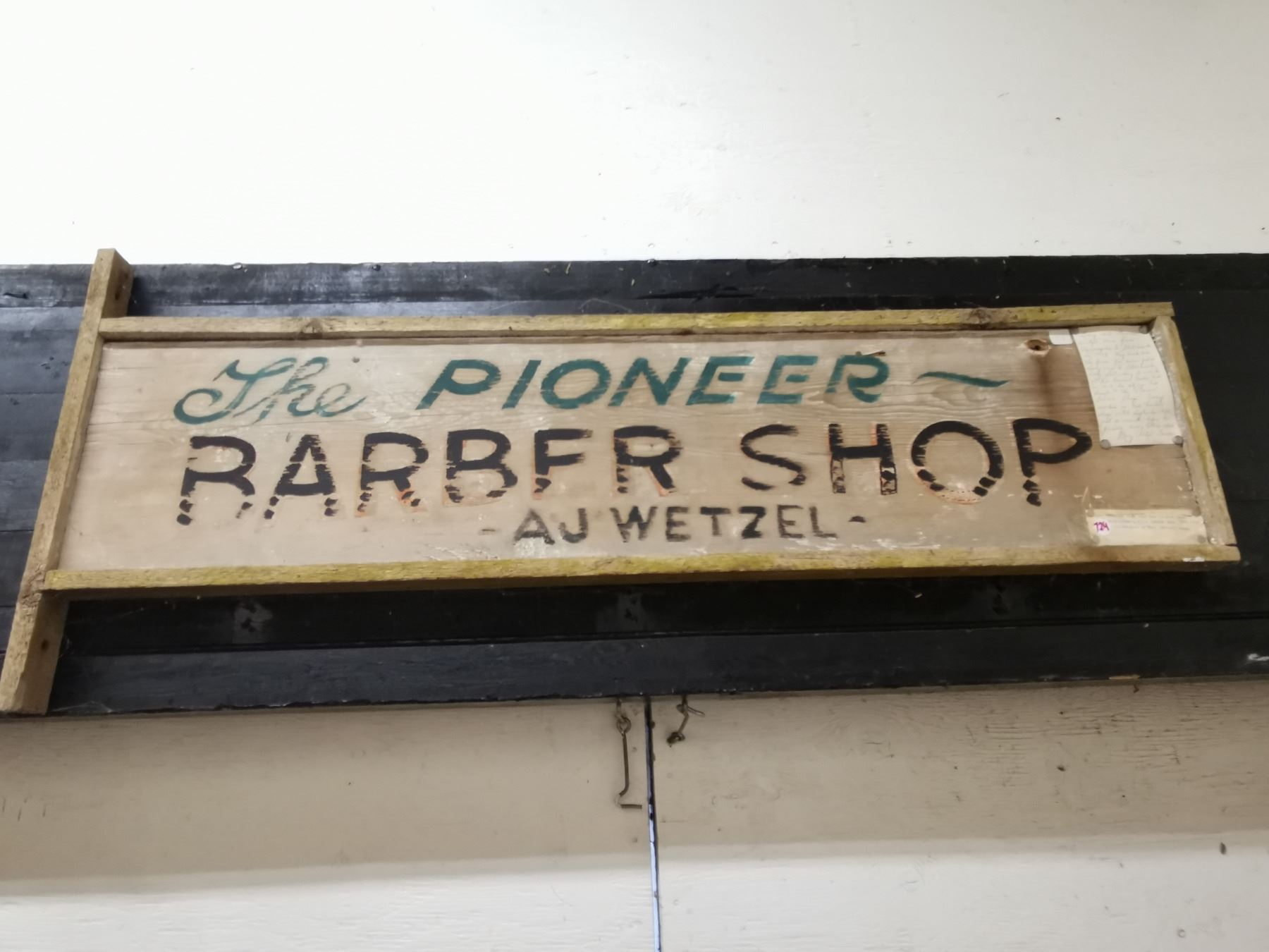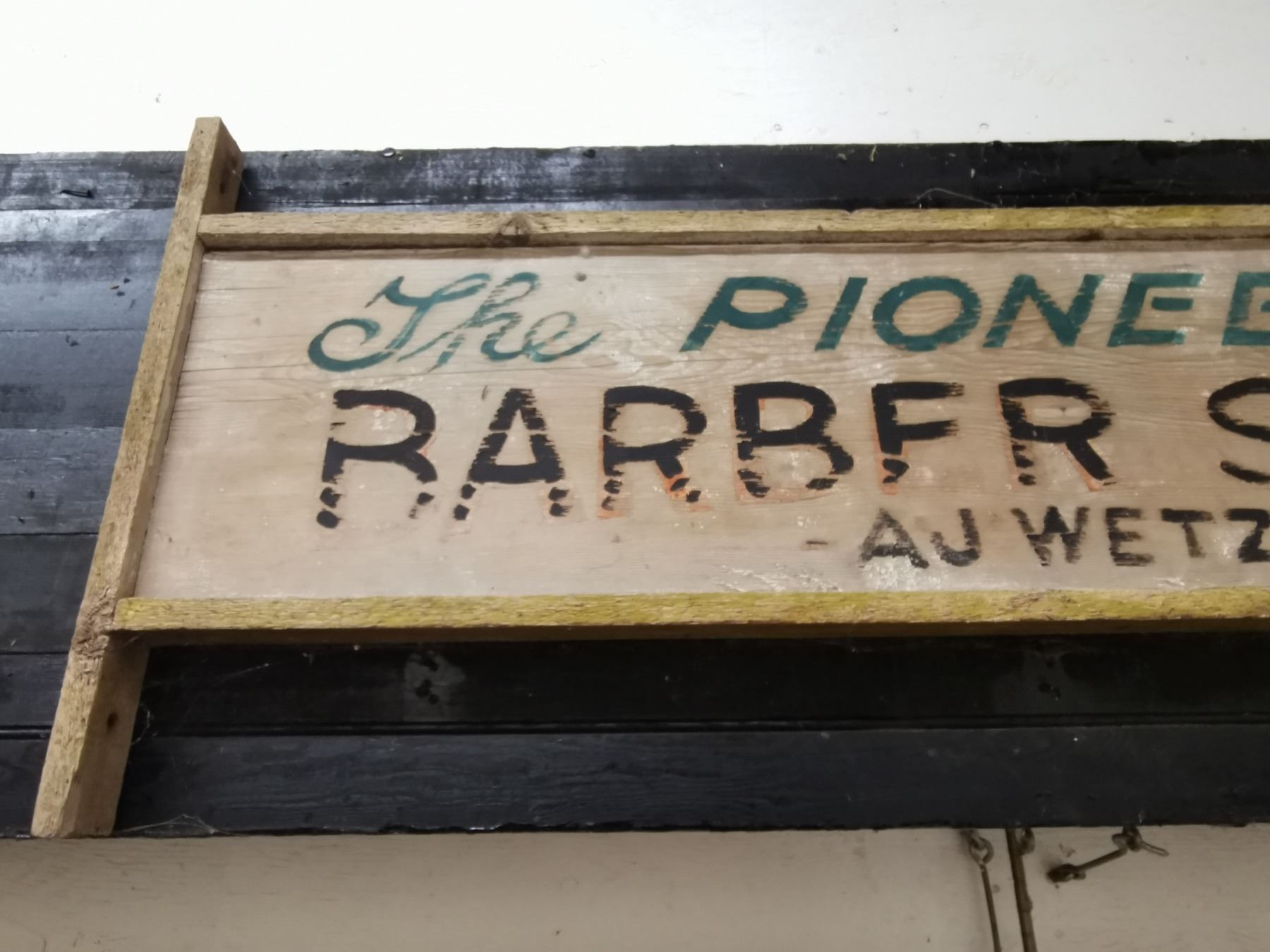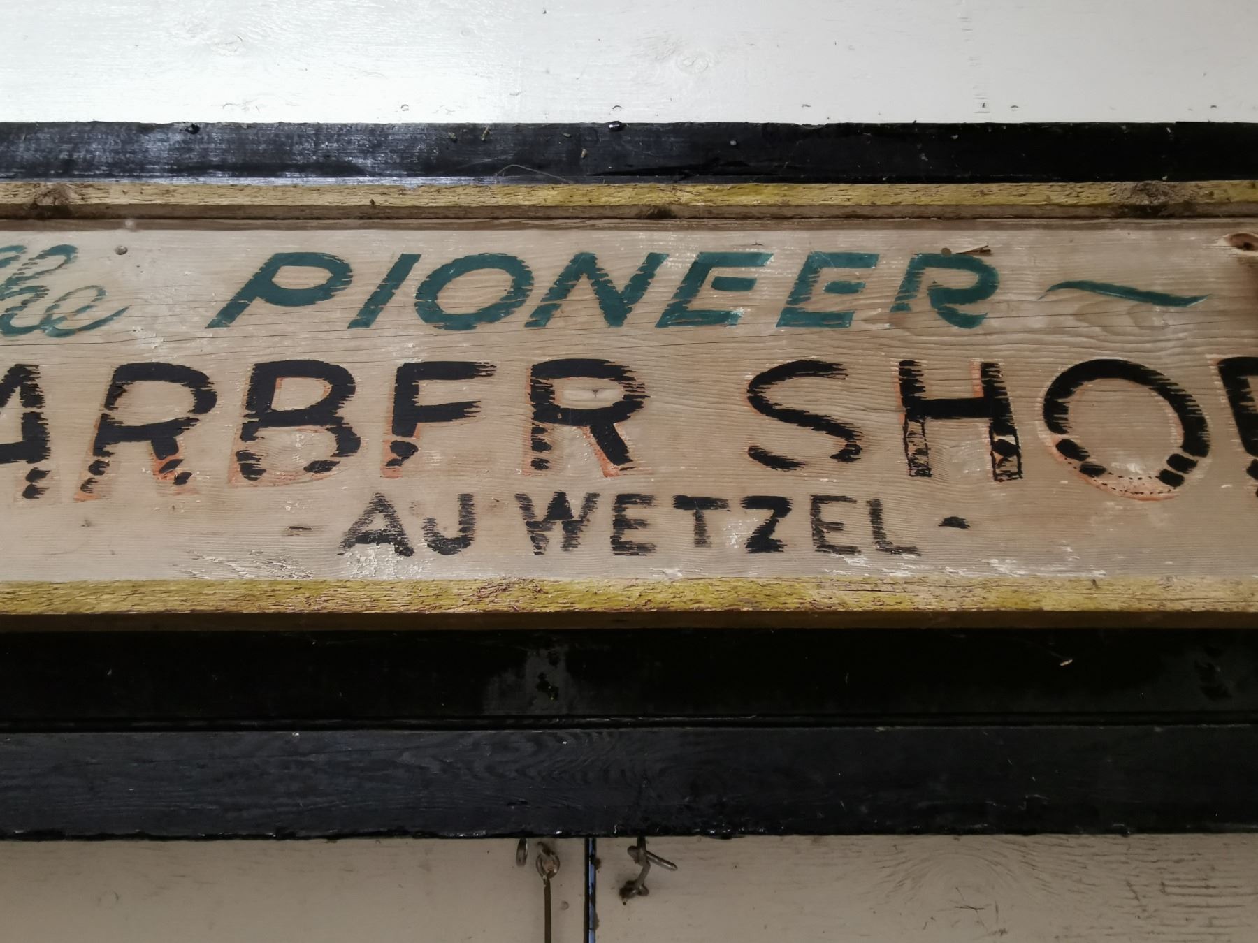 Antique local sign "The Pioneer Barber Shop - AJ Wetzel"