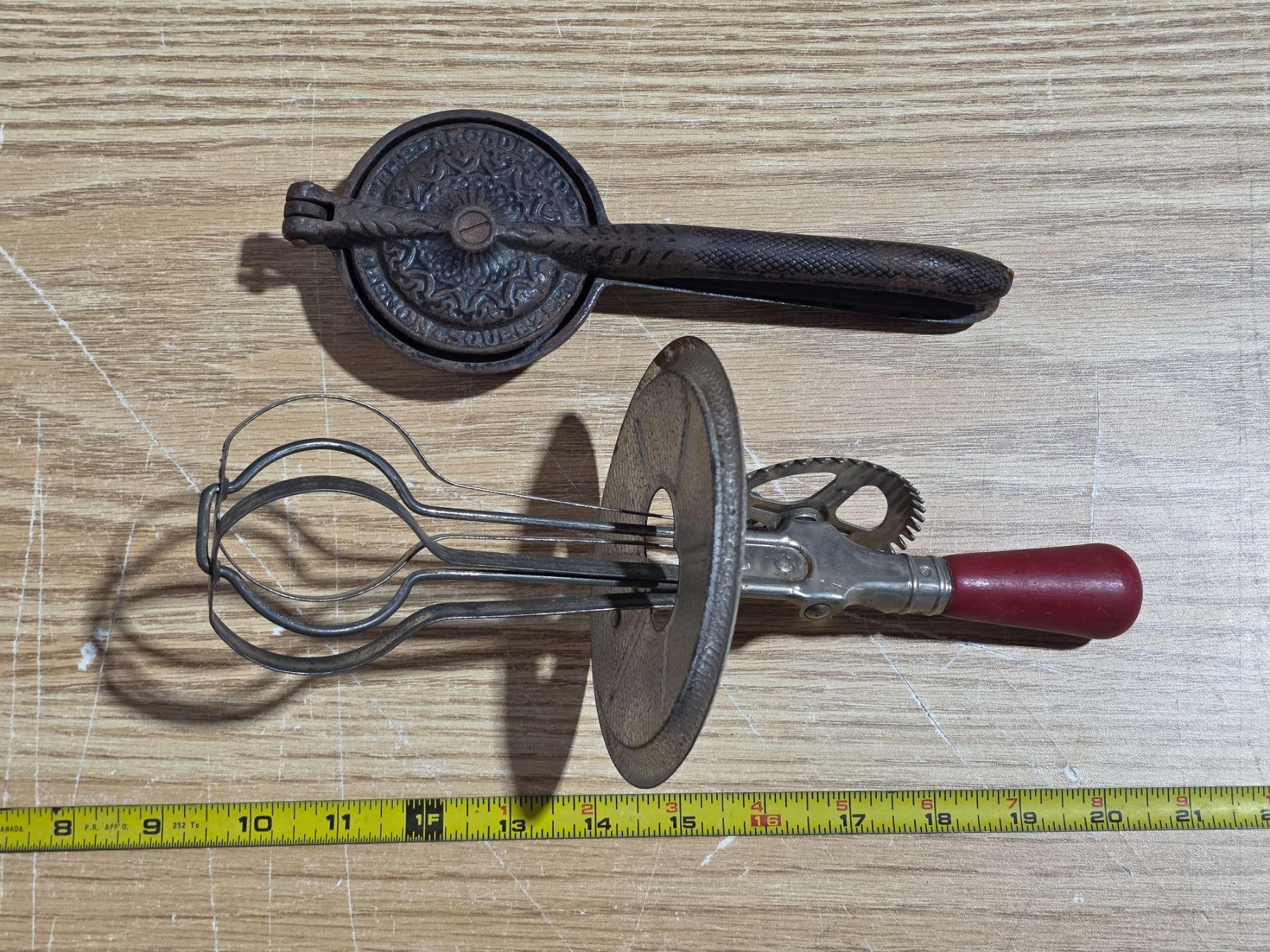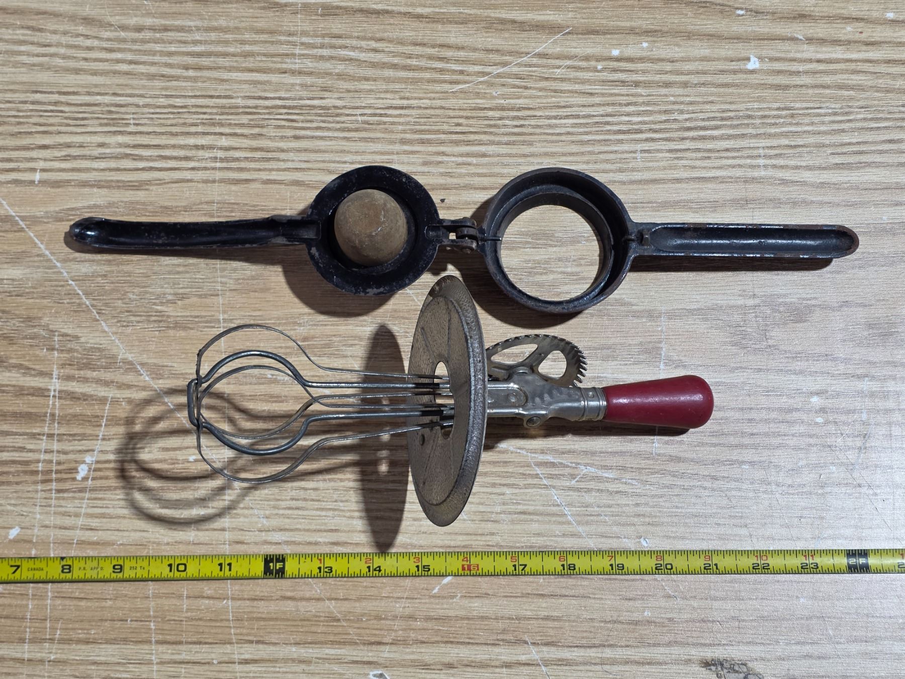 Antique nut cracker and egg beater
