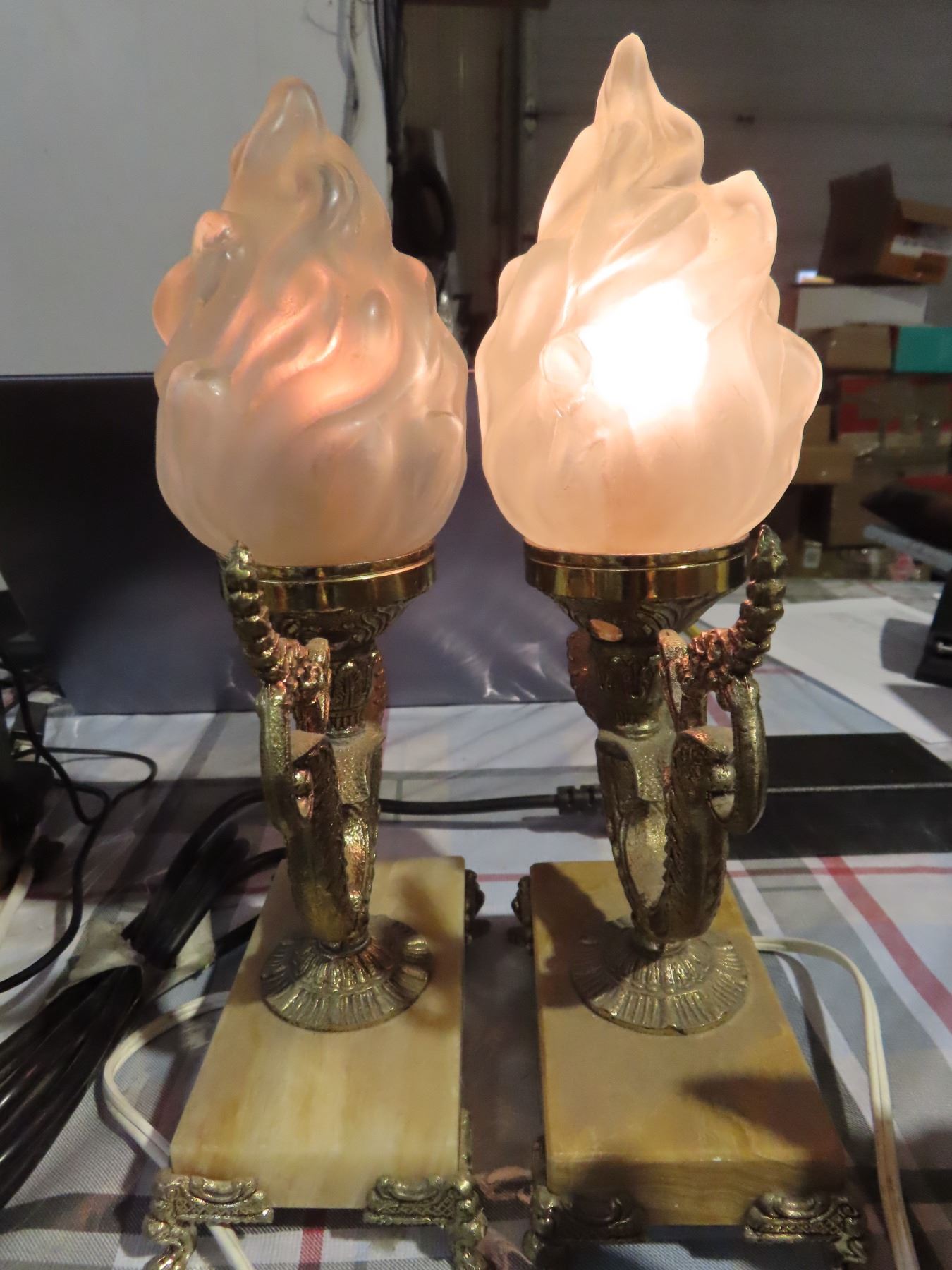 Antique old art brass mermaid lamps- working