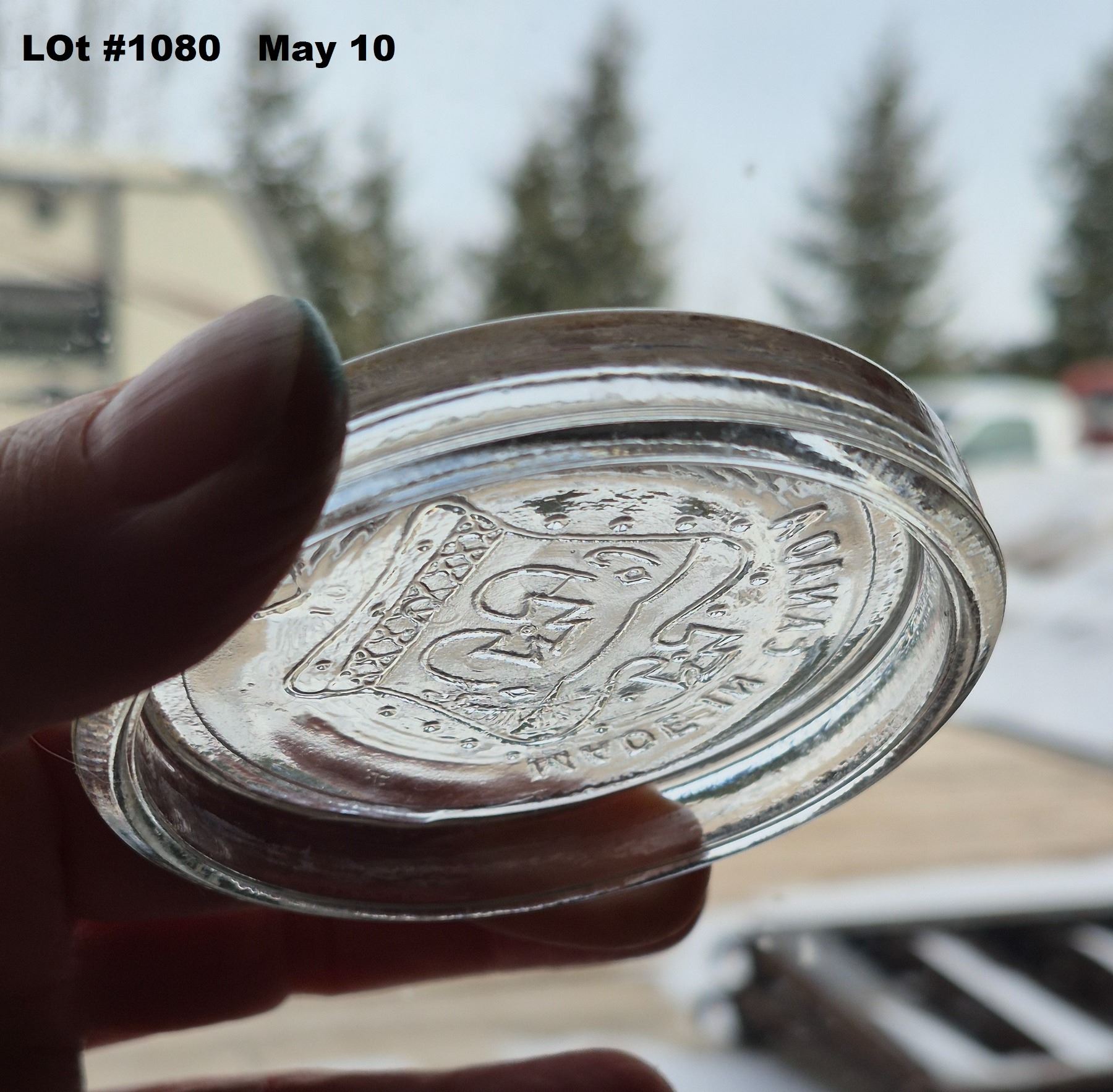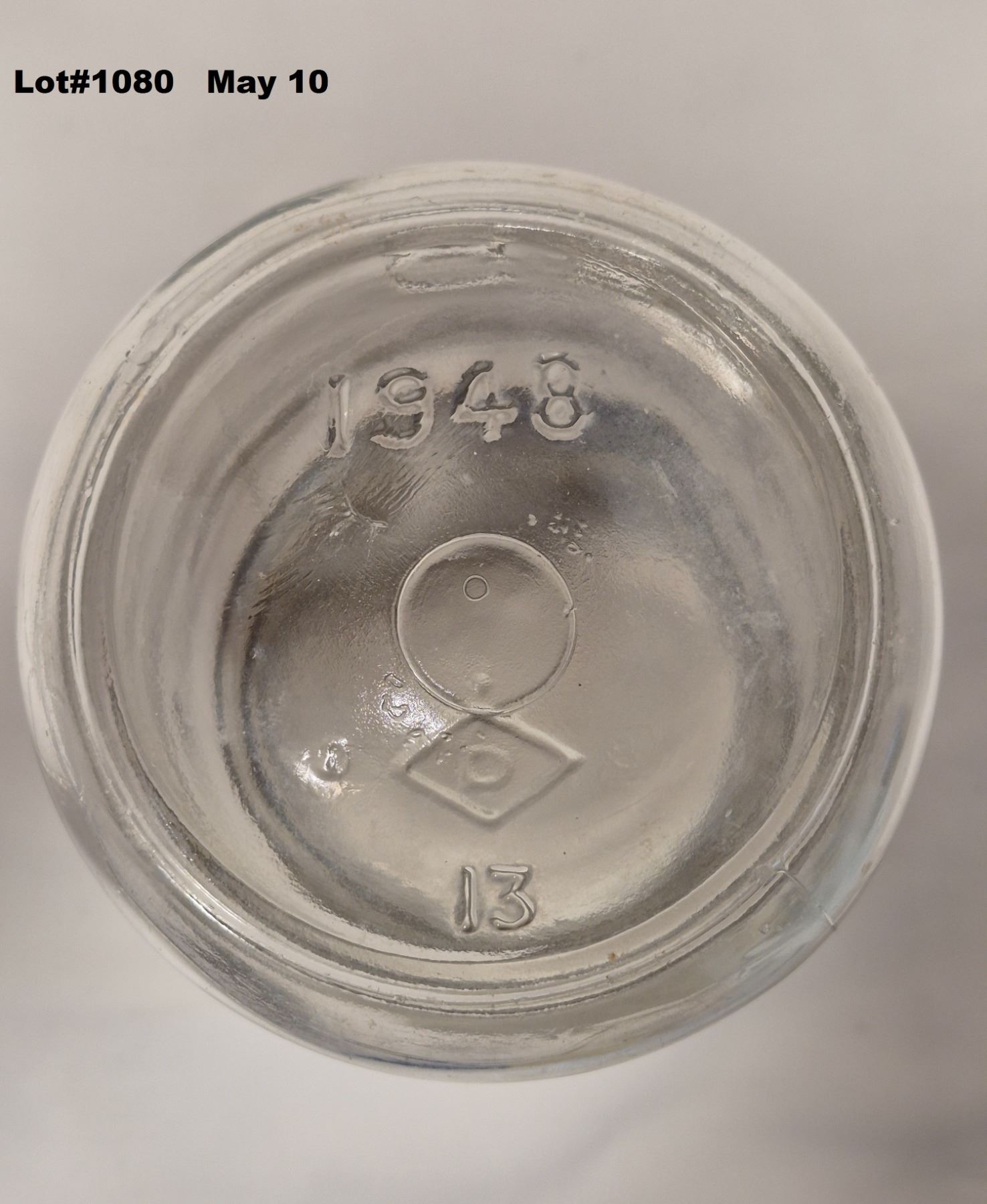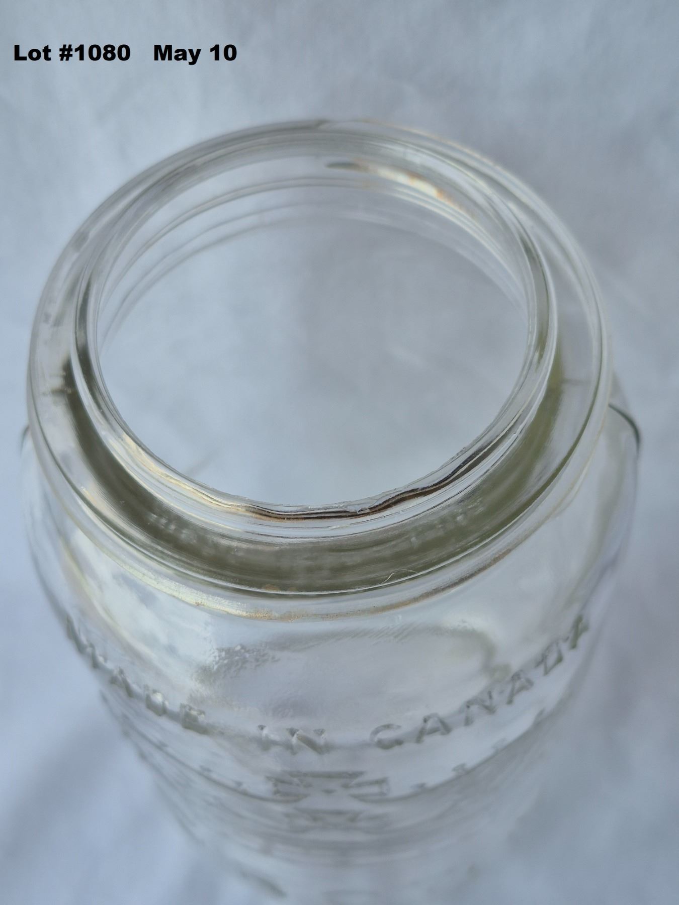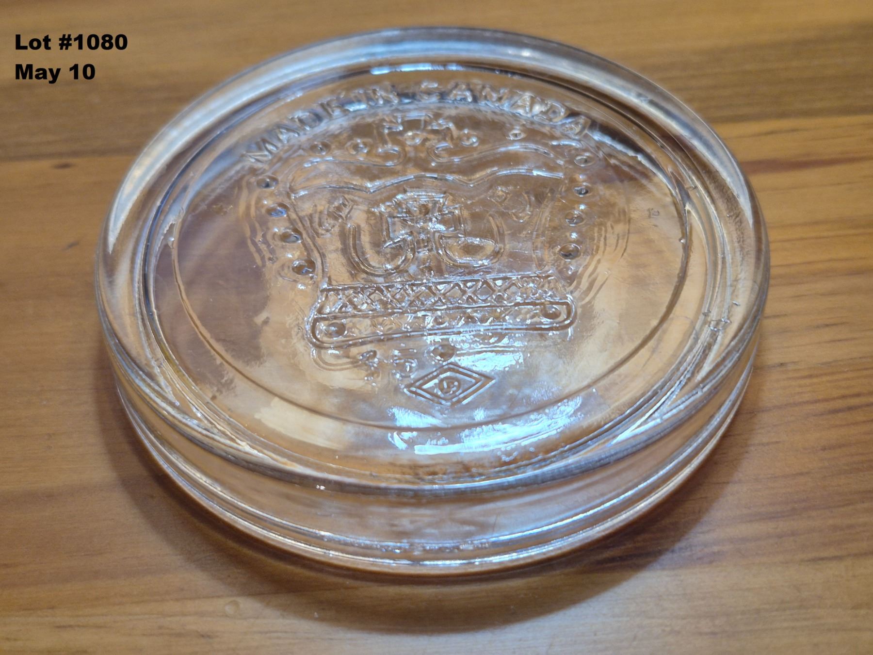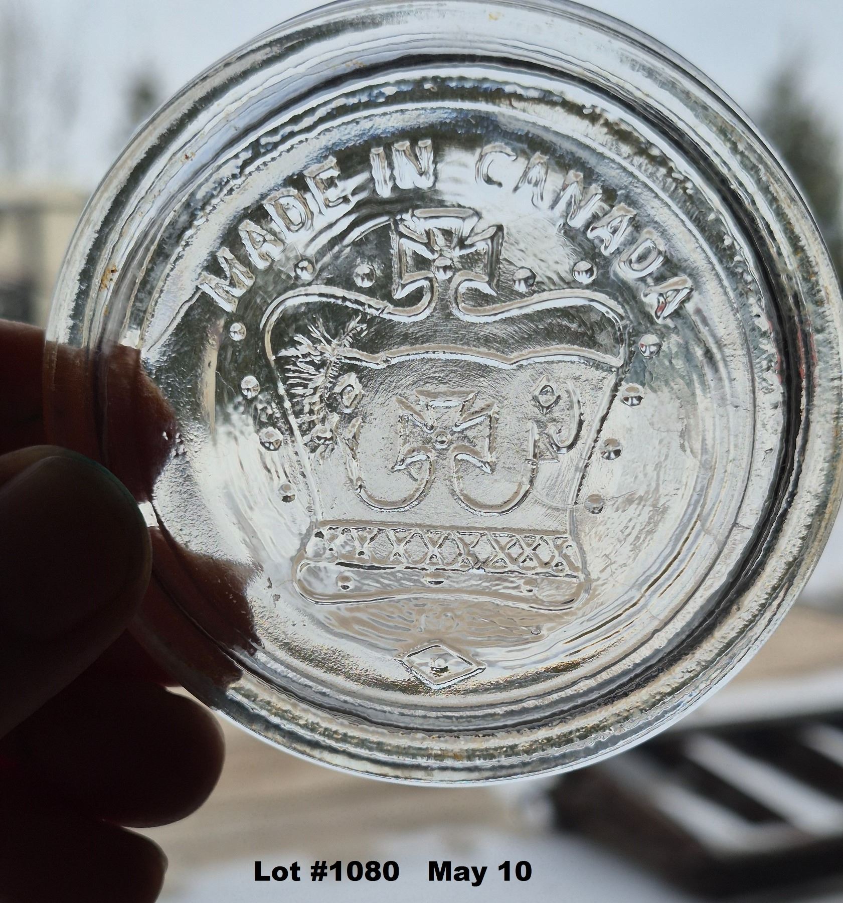 Antique old glass "CROWN" glass canning jar with lid and ring. Dominion Glass - Made in Canada. Old Style thick glass lid fits over top of the jar mouth. 1 quart size.