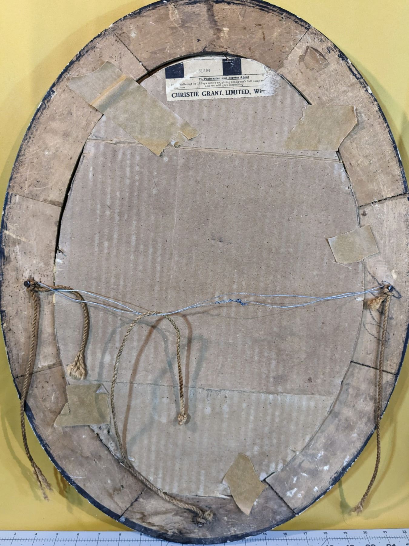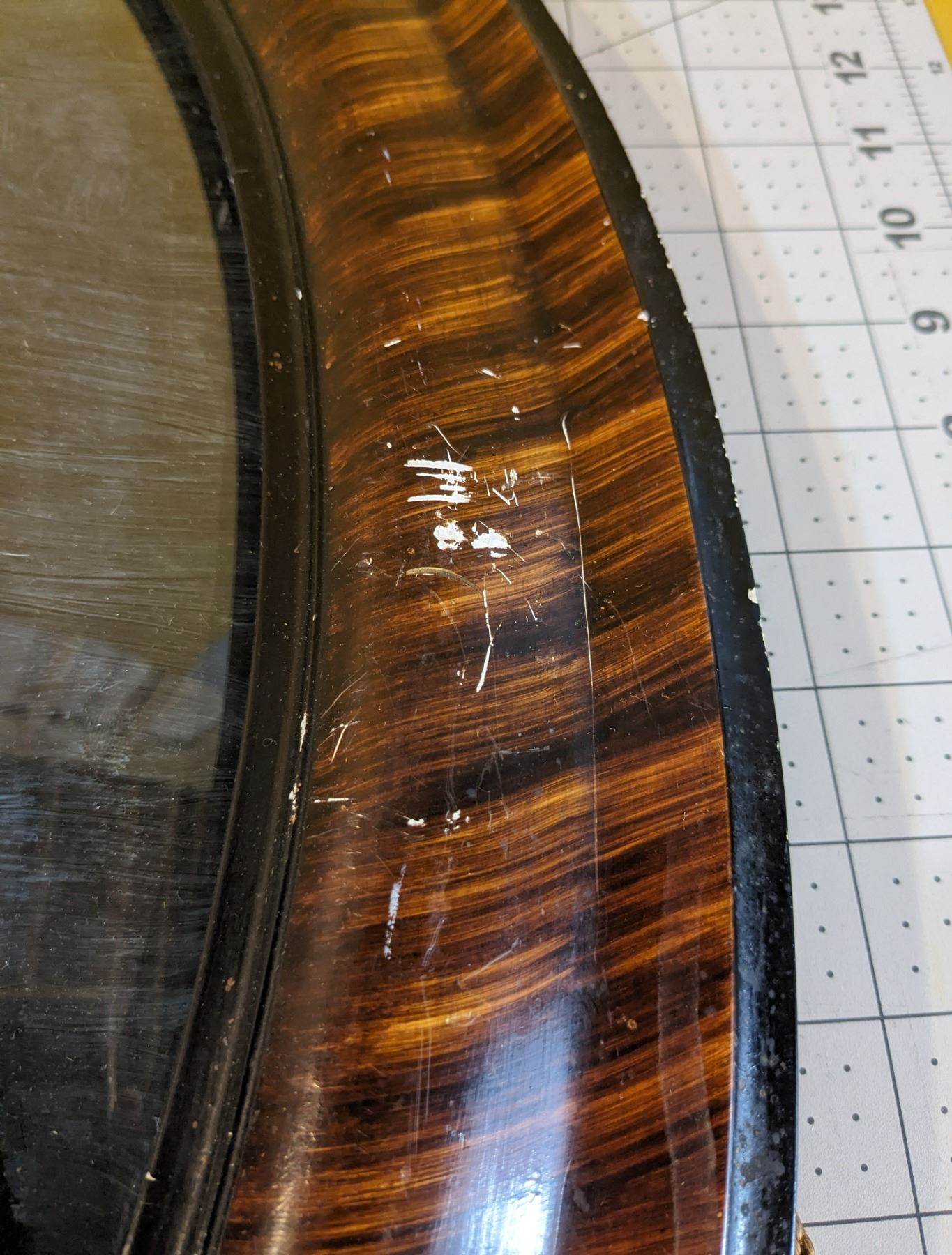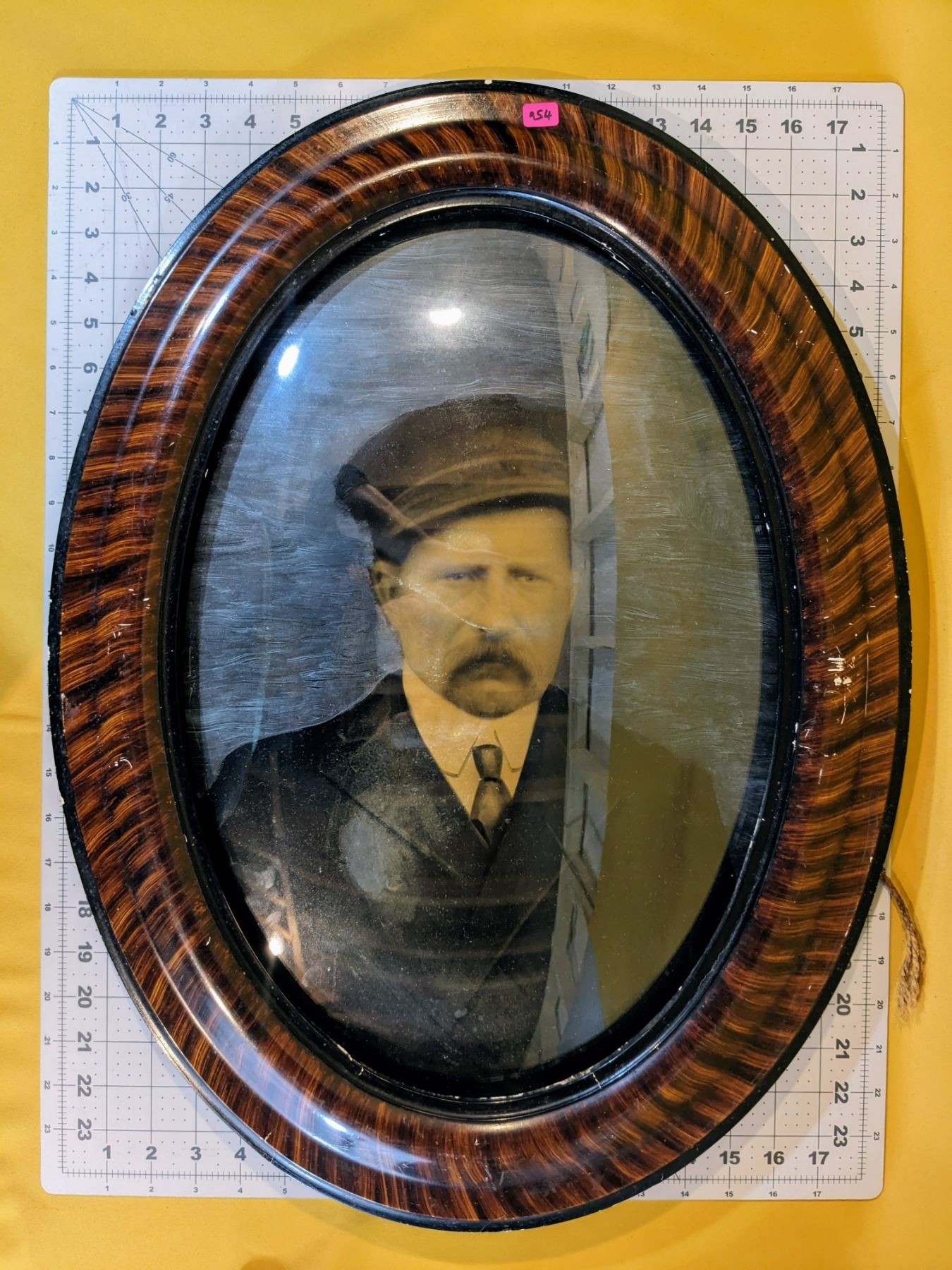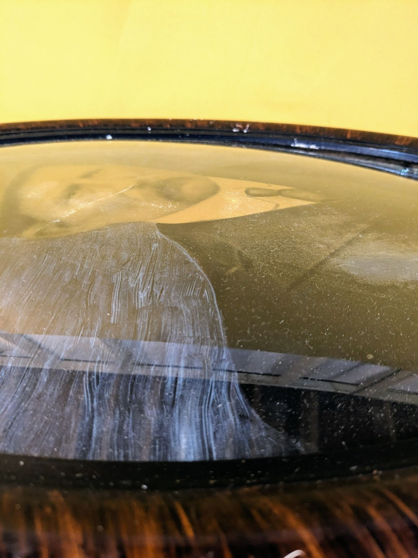 Antique oval picture frame with curved glass. Good size (24" x 18"), some wear and tear (see photos).