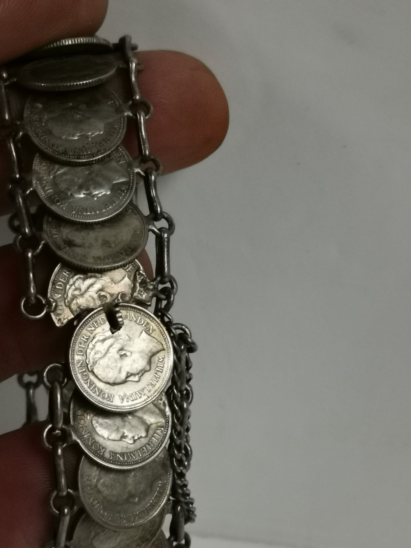 Antique silver coin bracelet 1930's Netherland 10¢ coins 1930's/40's