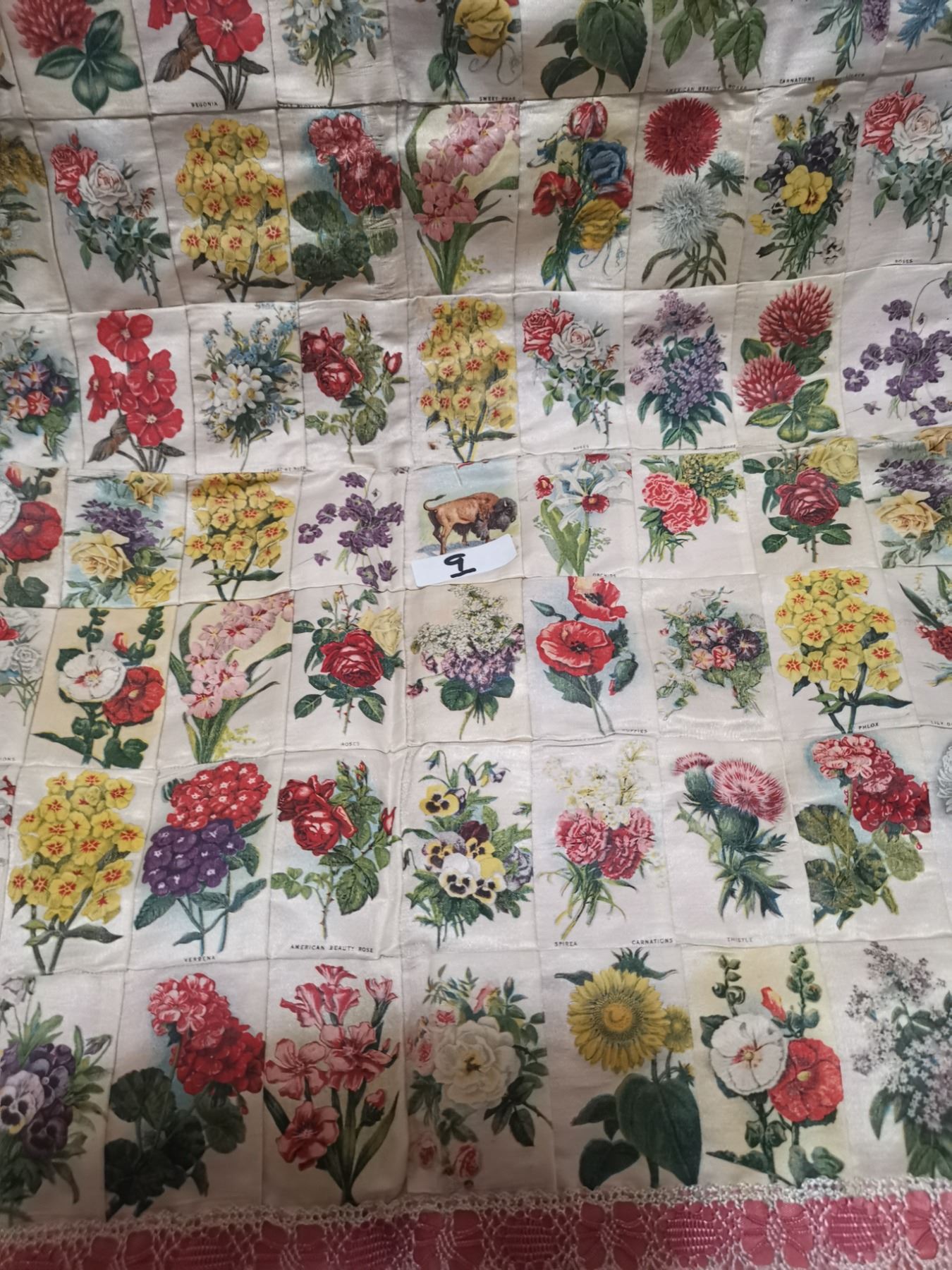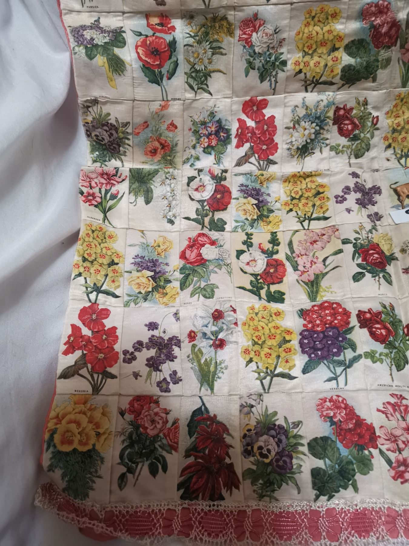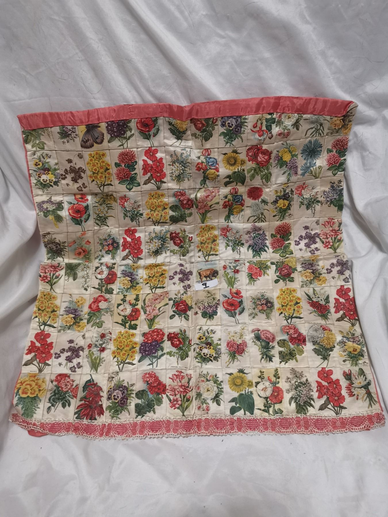 Antique tobacco flower silks, made into pillowcase - 19"x19"
