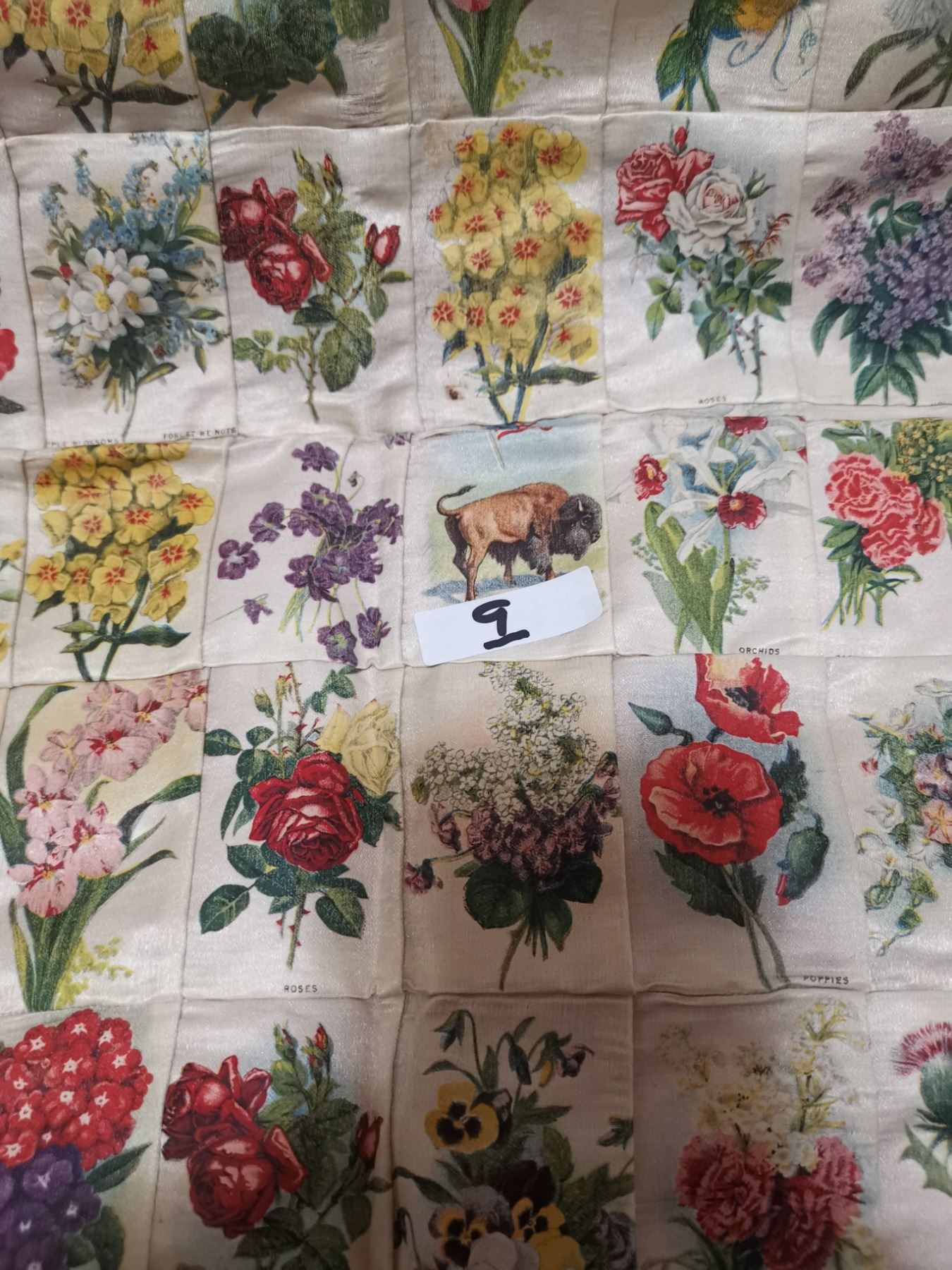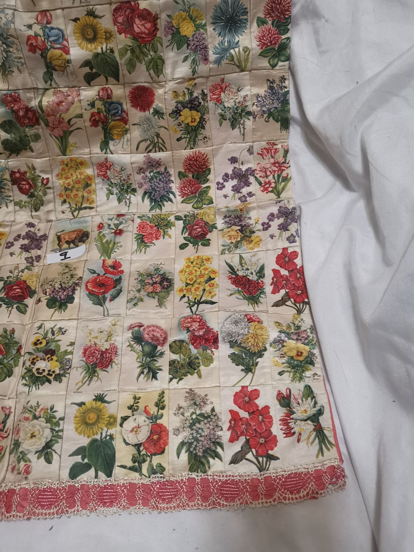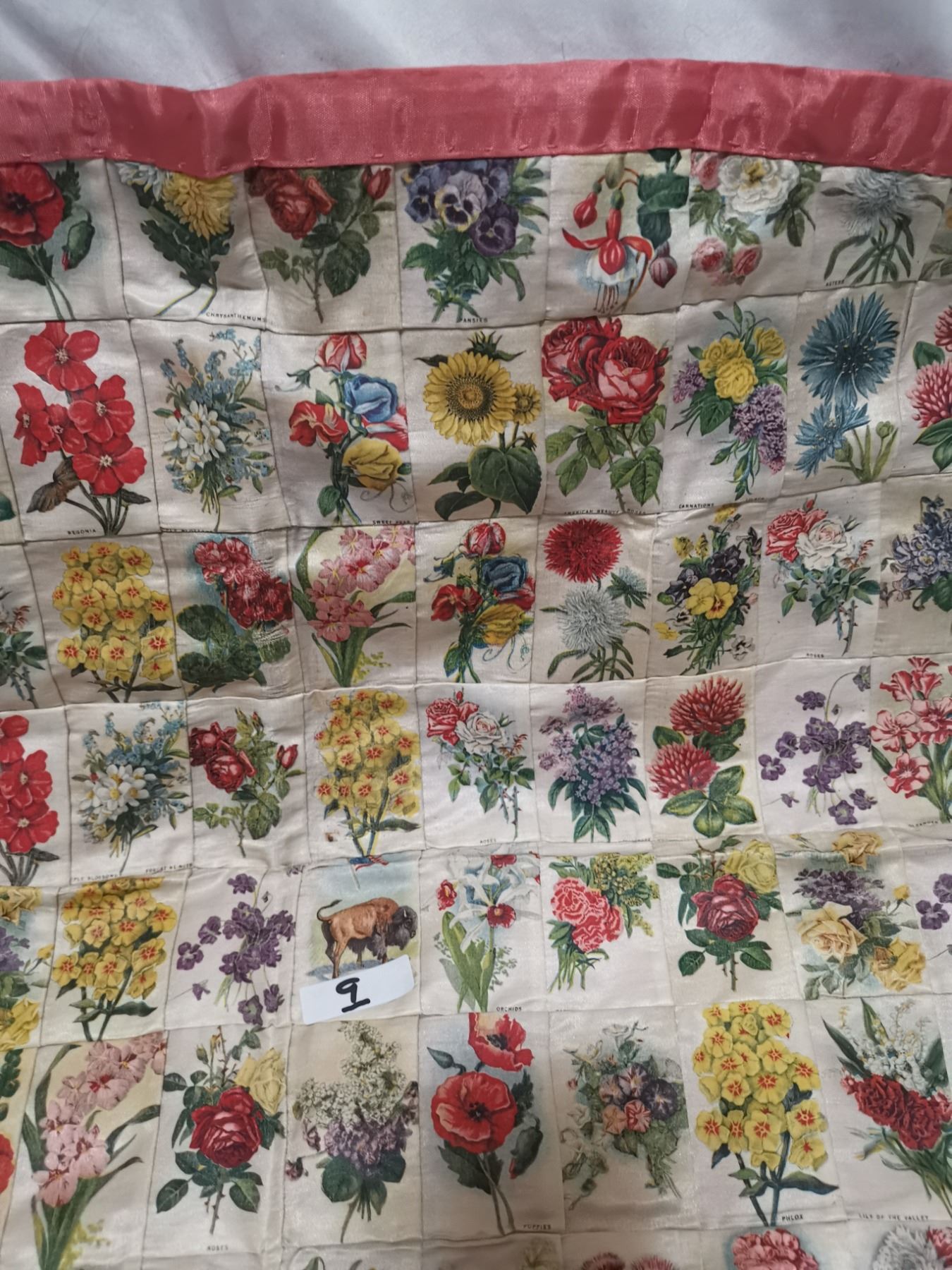 Antique tobacco flower silks, made into pillowcase - 19"x19"