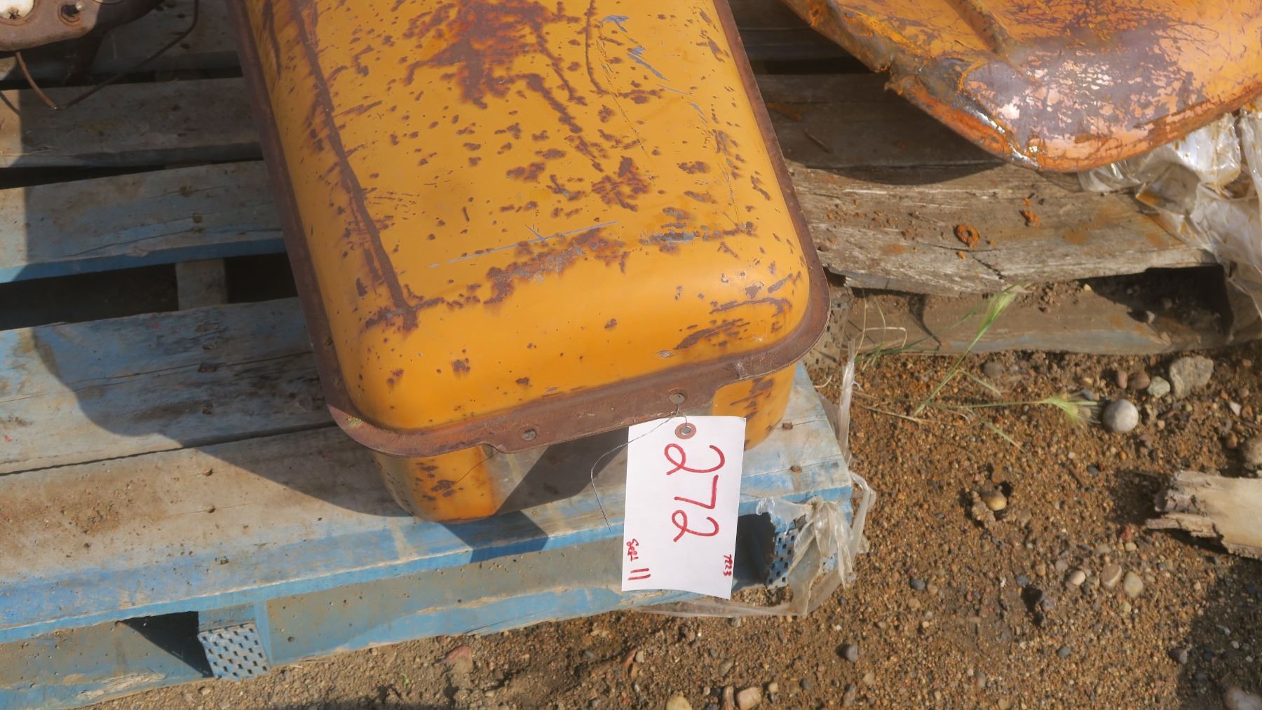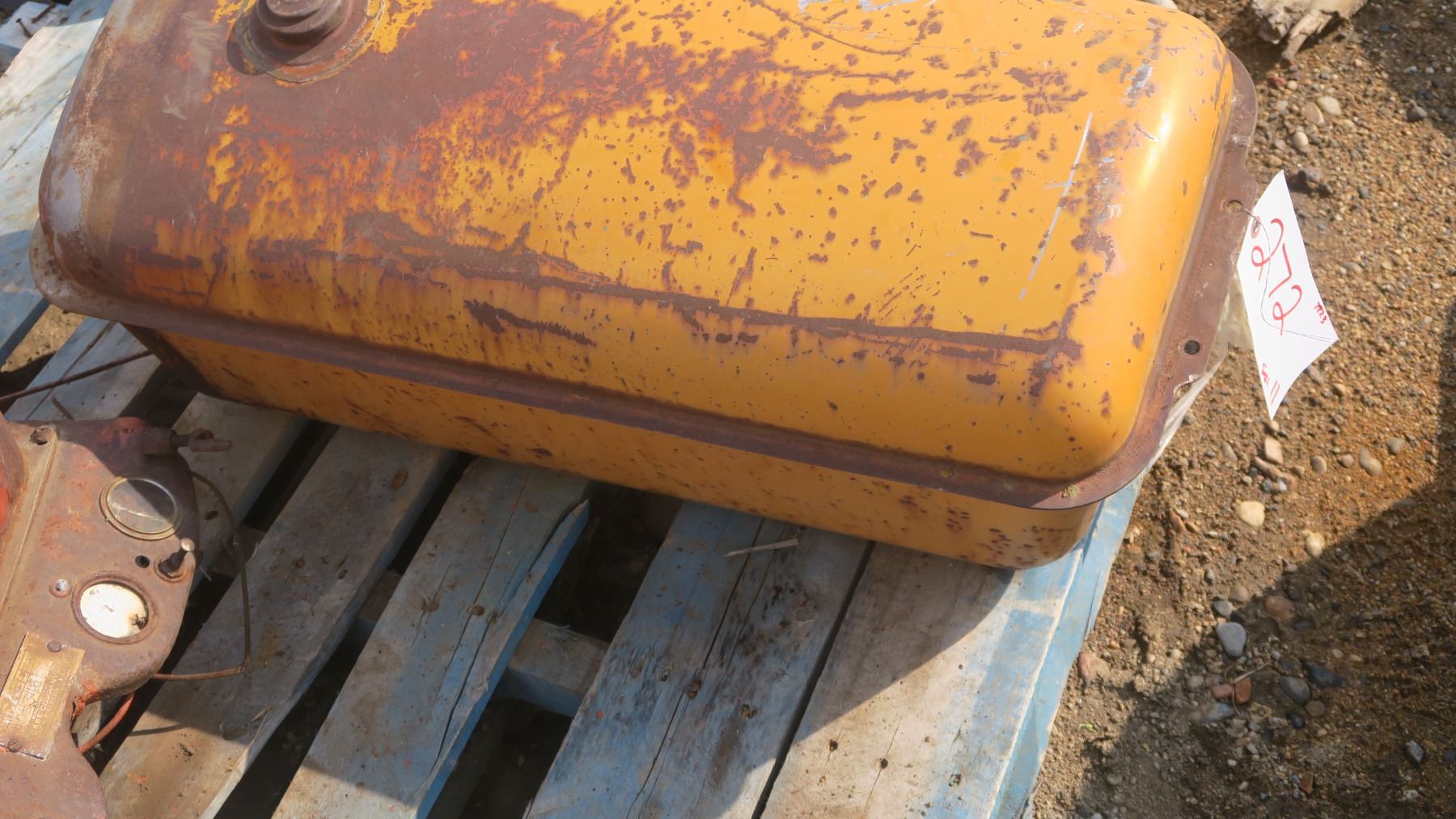 Antique tractor fuel tank, yellow