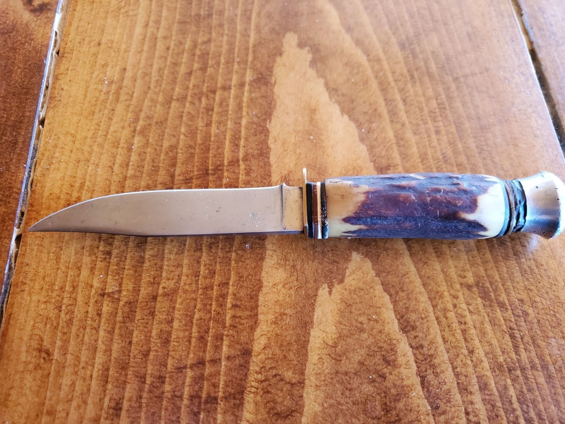 Antler Handle Hunting Knife 4-1/2" Blade Scrimshawed