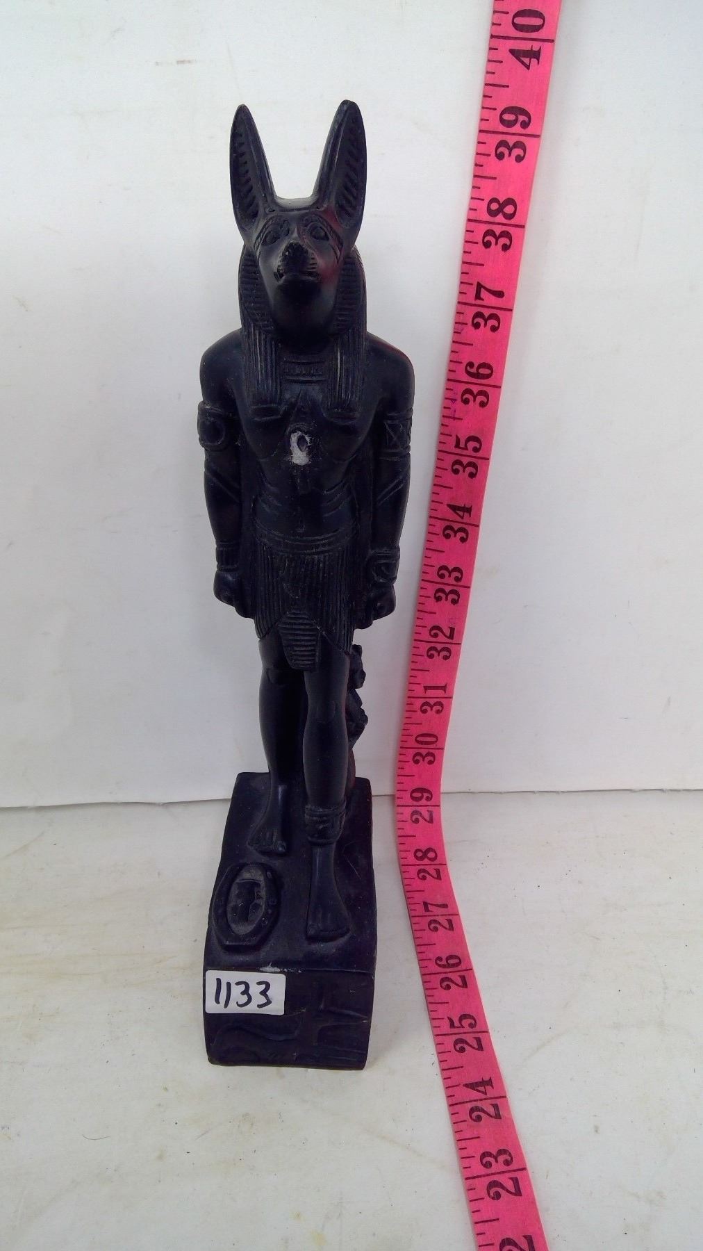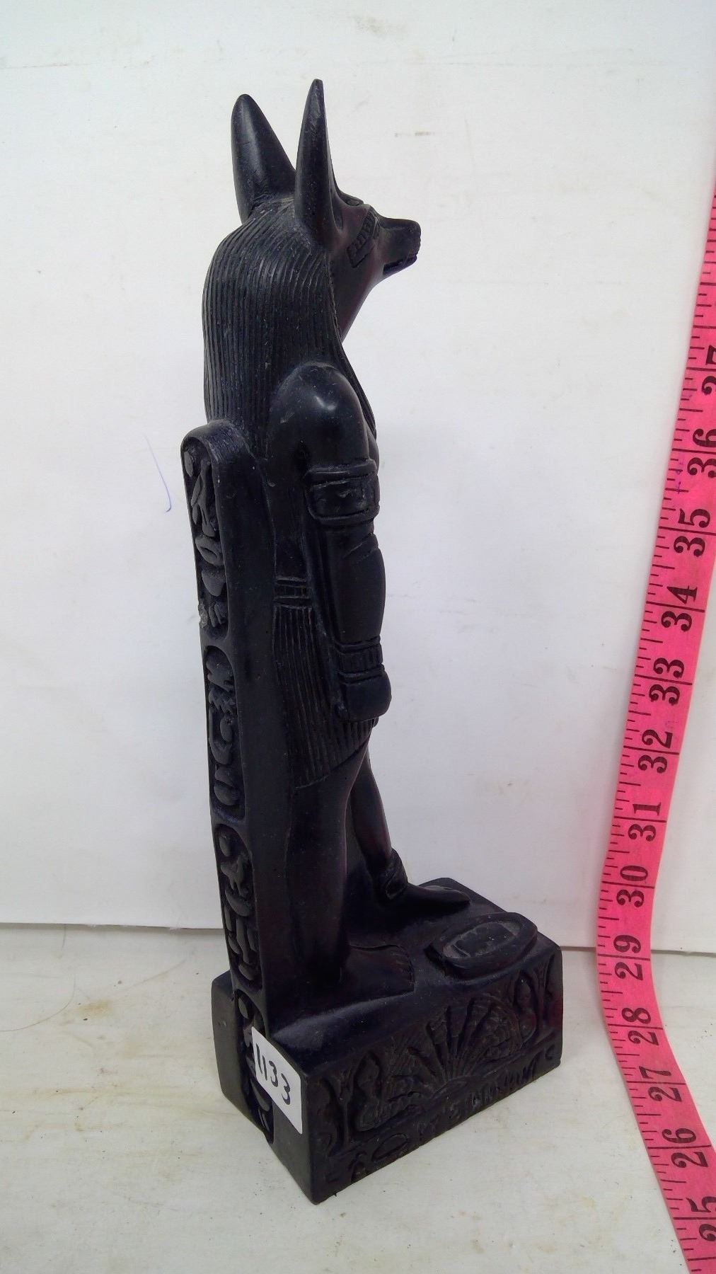 Museum copy from Louvre gift shop, Paris. Anubis the jackal-headed god. Original, of which this is a copy, black volcanic basalt. Height: 11". Ancient Egypt.