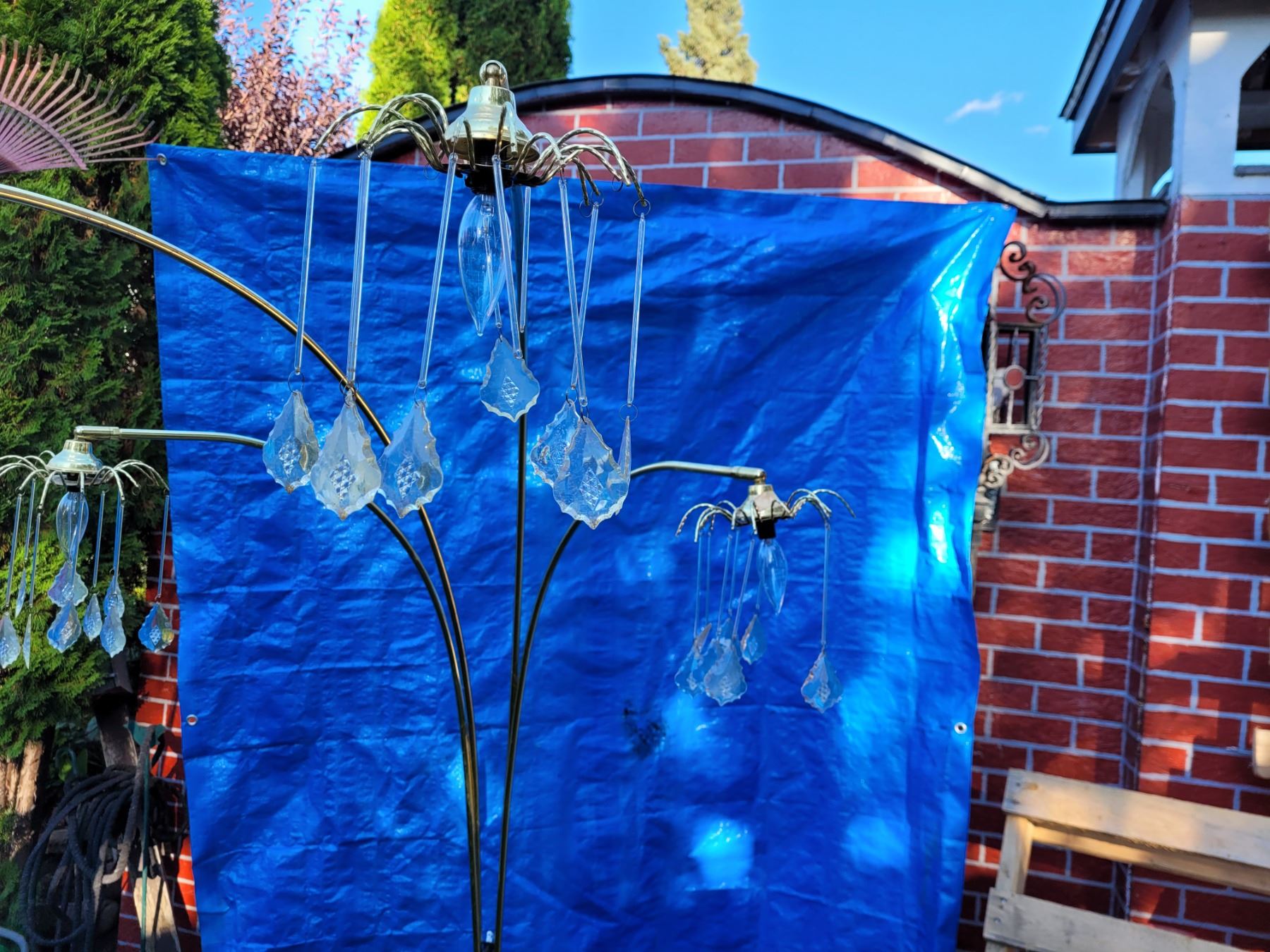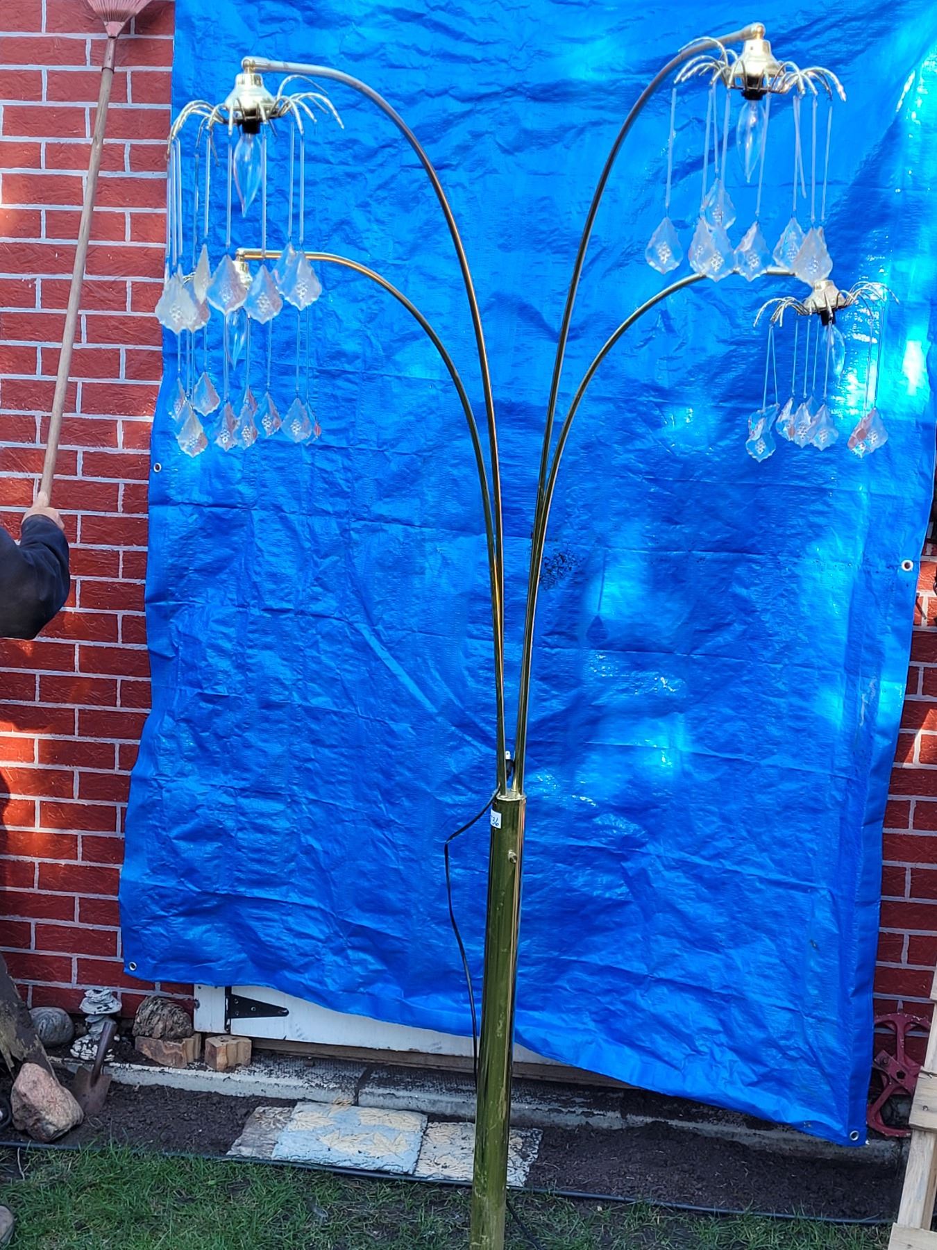 Arm arched floor lamp. 4 chandelier style lamps, gold color
