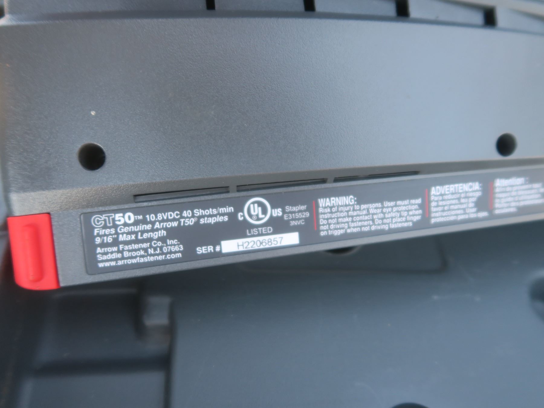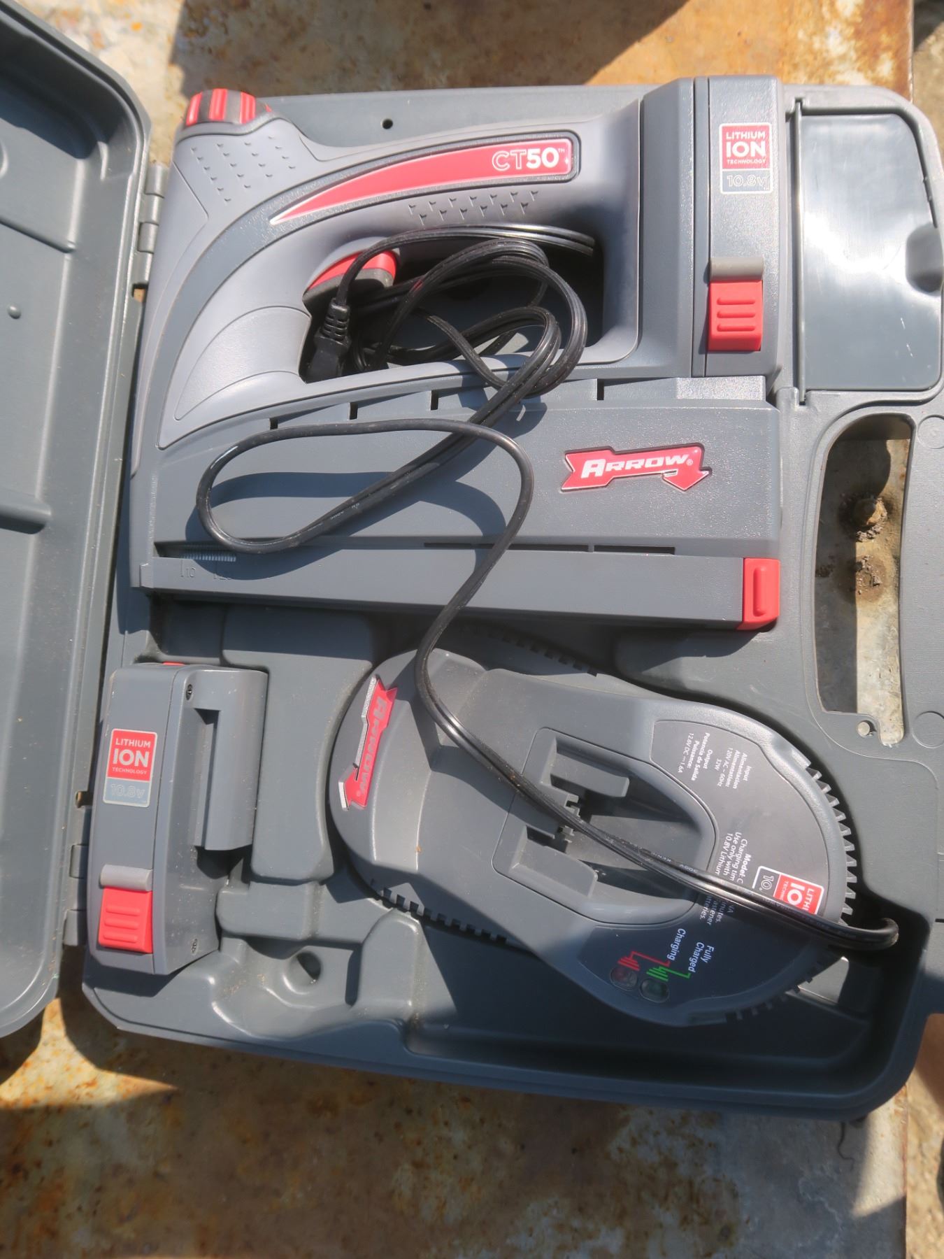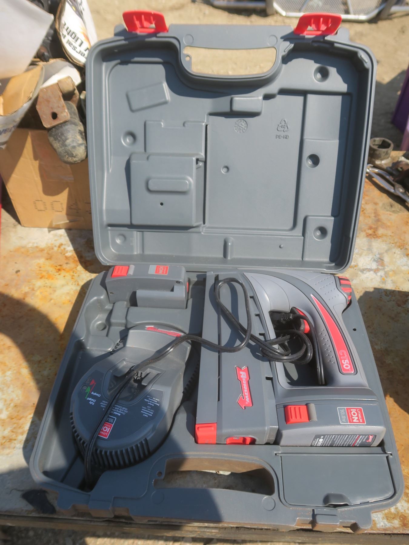 Arrow CT50 cordless stapler with 2 batteries and charger in case