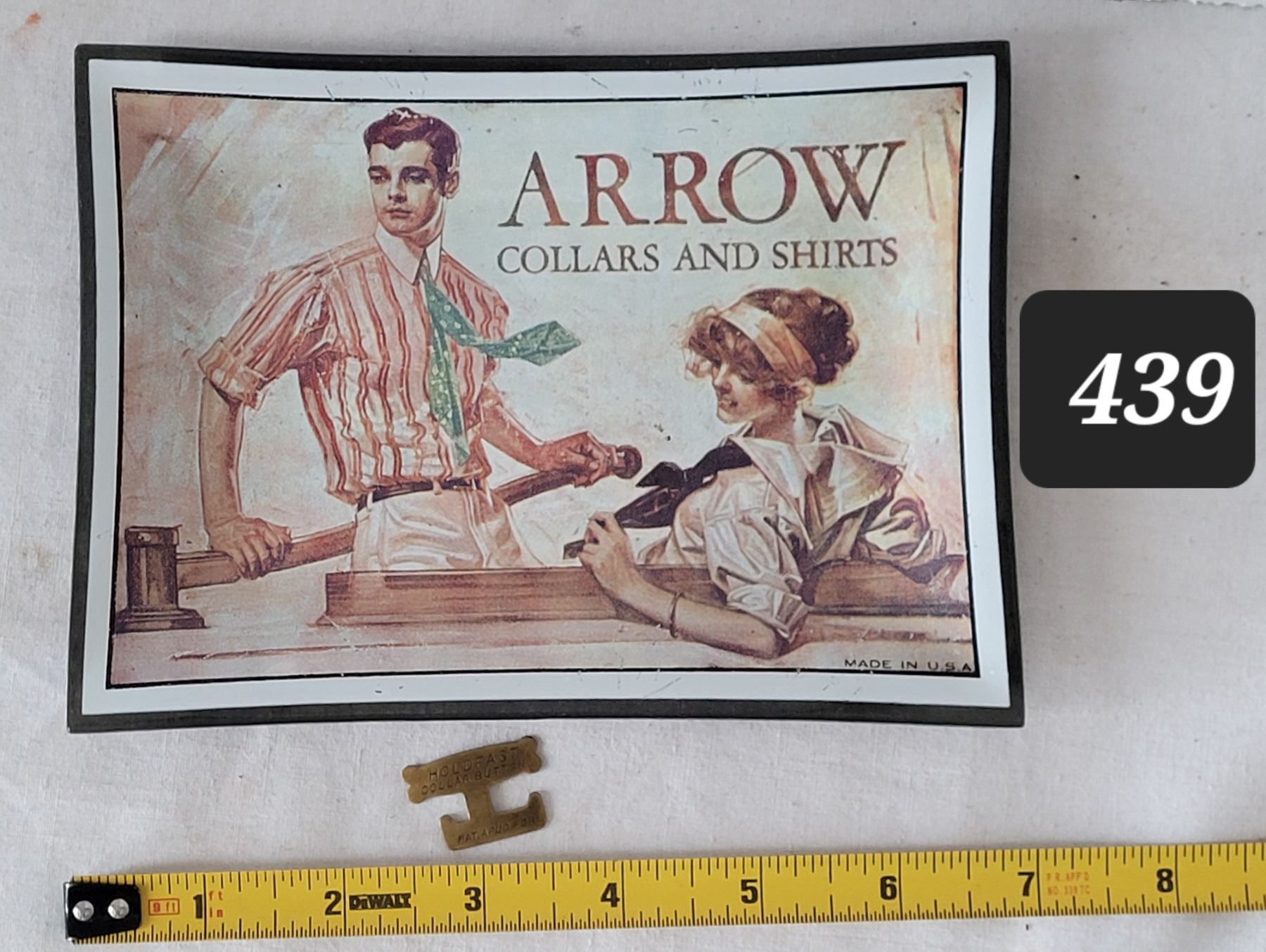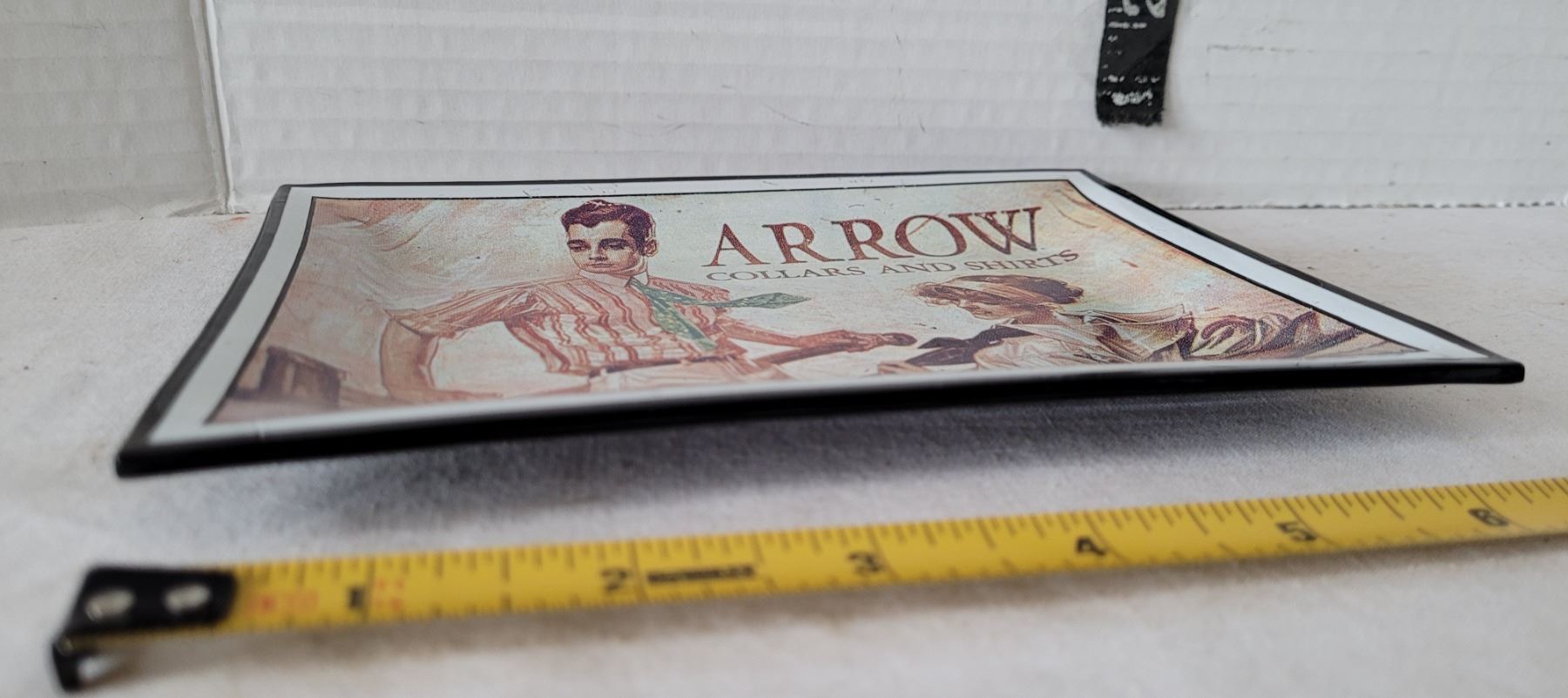 Arrow Collars & shirts small advertising porcelain tray. (USA) Antique Holdfast collar button