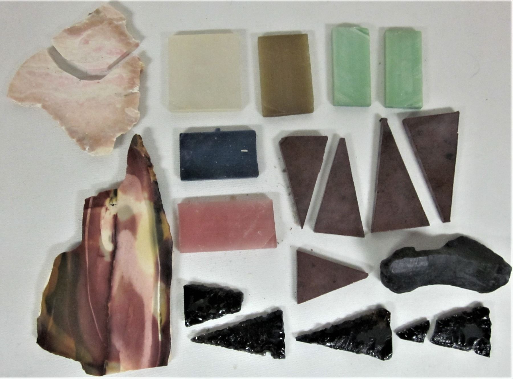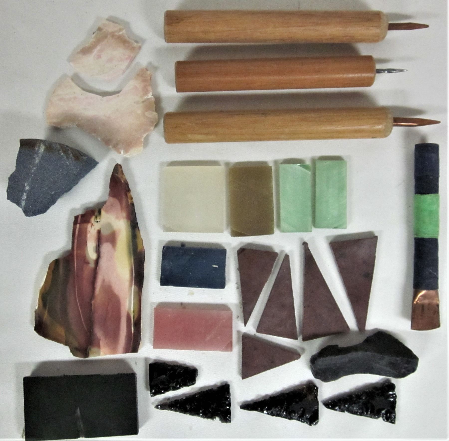 Arrowhead stone cutting kit/asst genuine Arizone agate-quarts stones 2 hand made obsidian arrowheads
