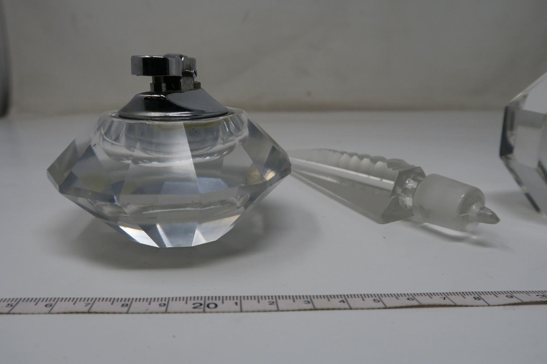 Art Deco Cut Crystal - Lighter, Perfume Bottle and Cap
