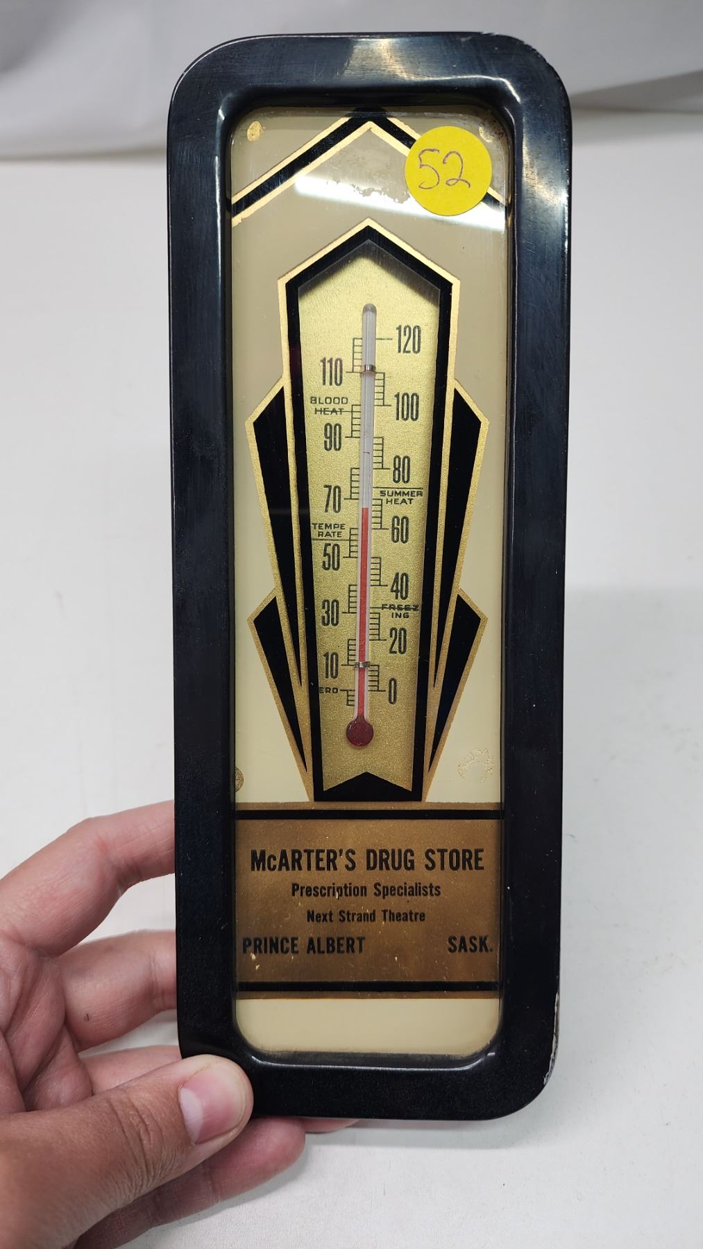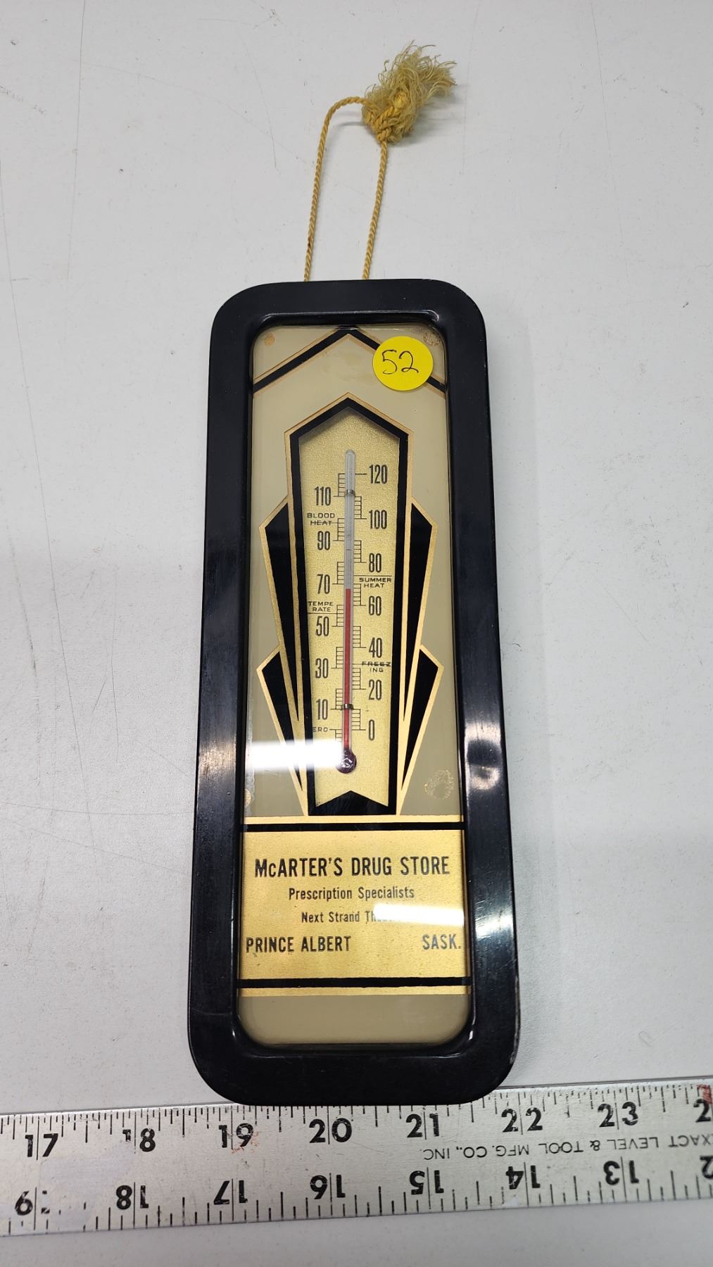 Art Deco "McArter's Drug Store" Prince Albert Thermometer 9.5" tall