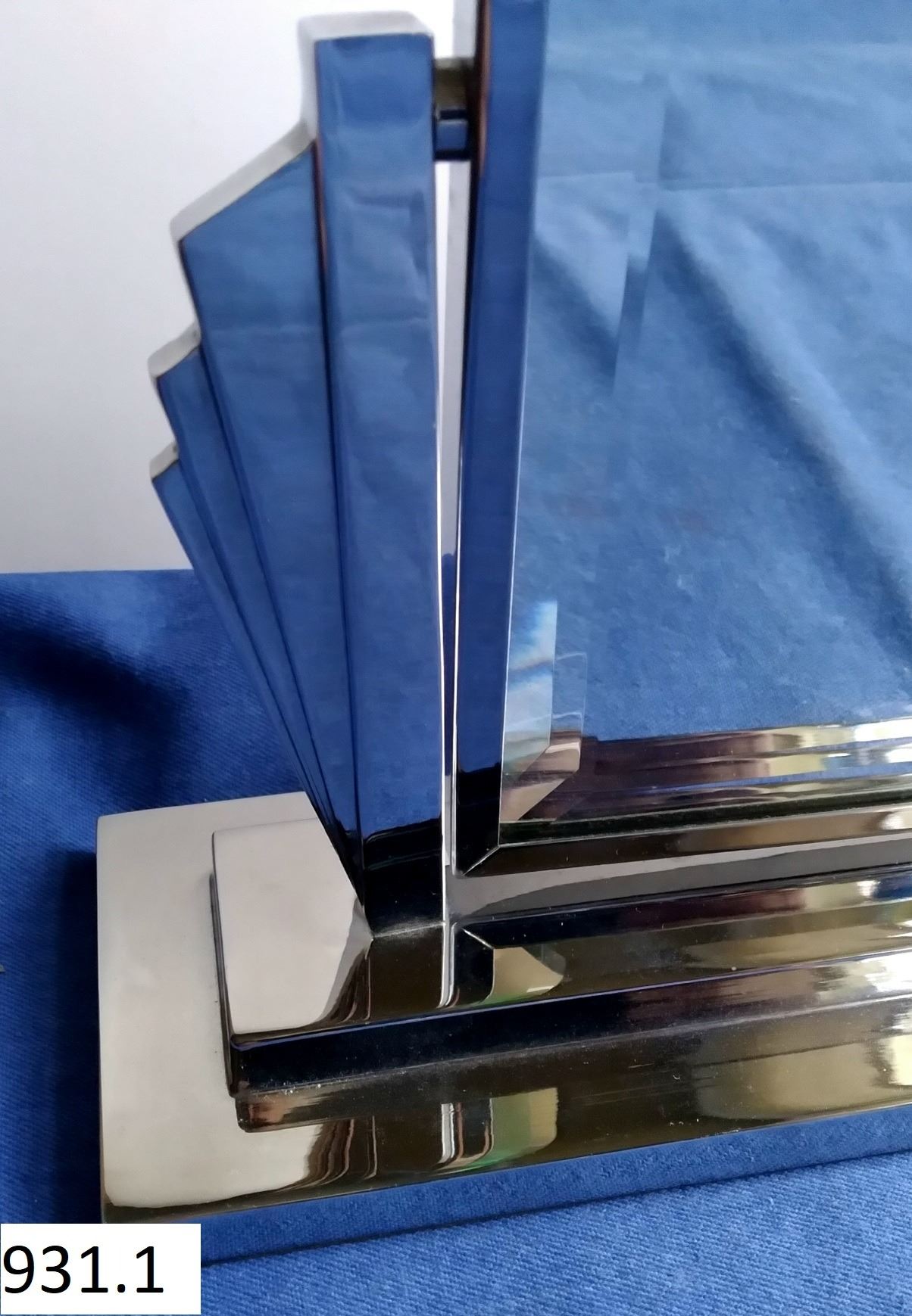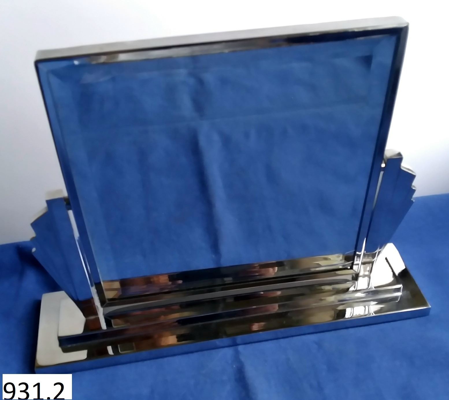 Art Deco table-top chrome mirror, classic design, excellent condition, 9 1/4 inches tall, 12 inches