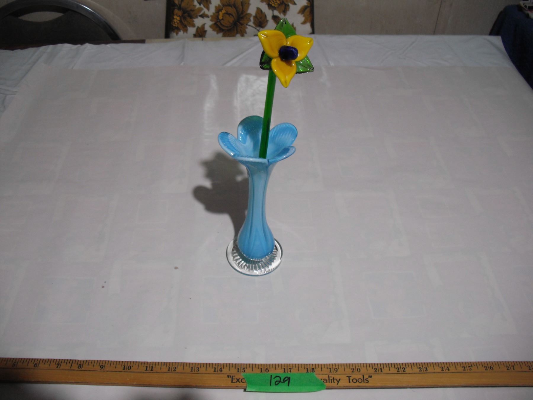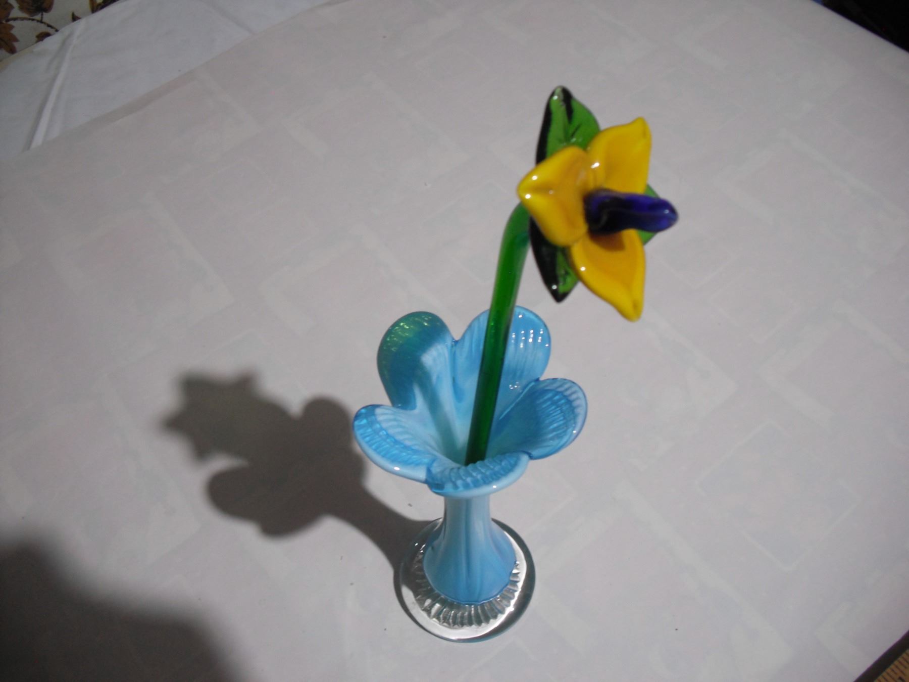 Art Glass Vase & Glass Flower