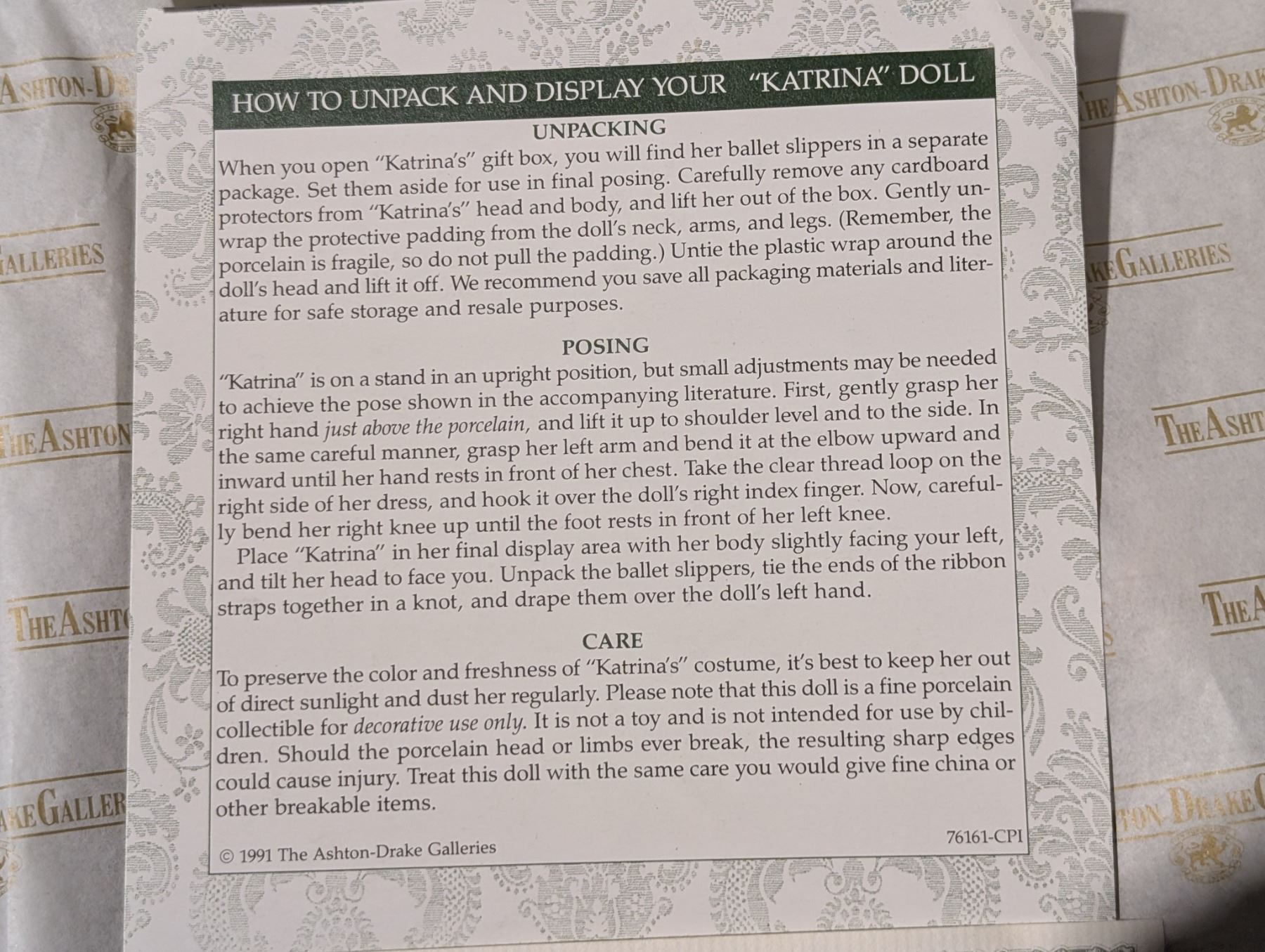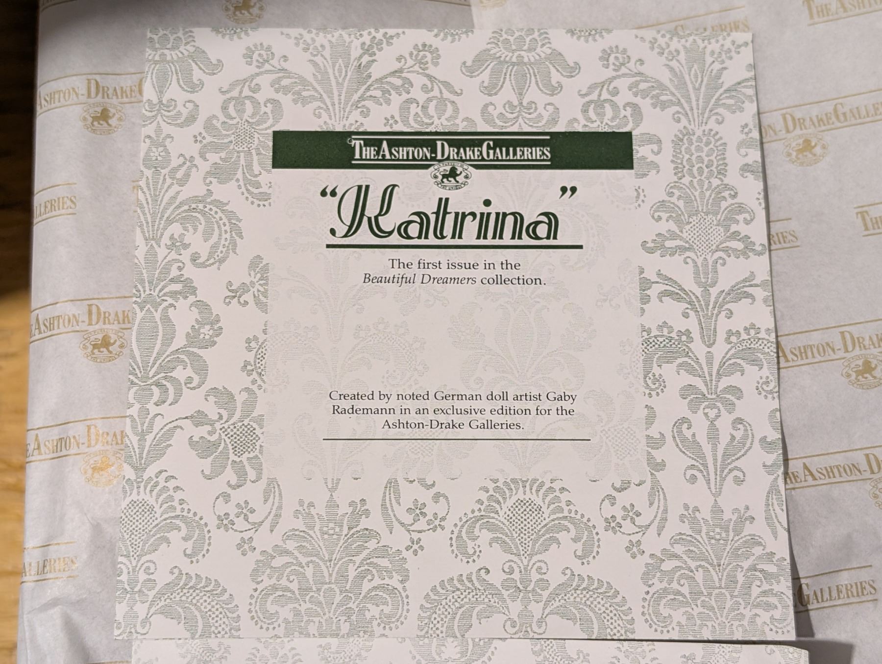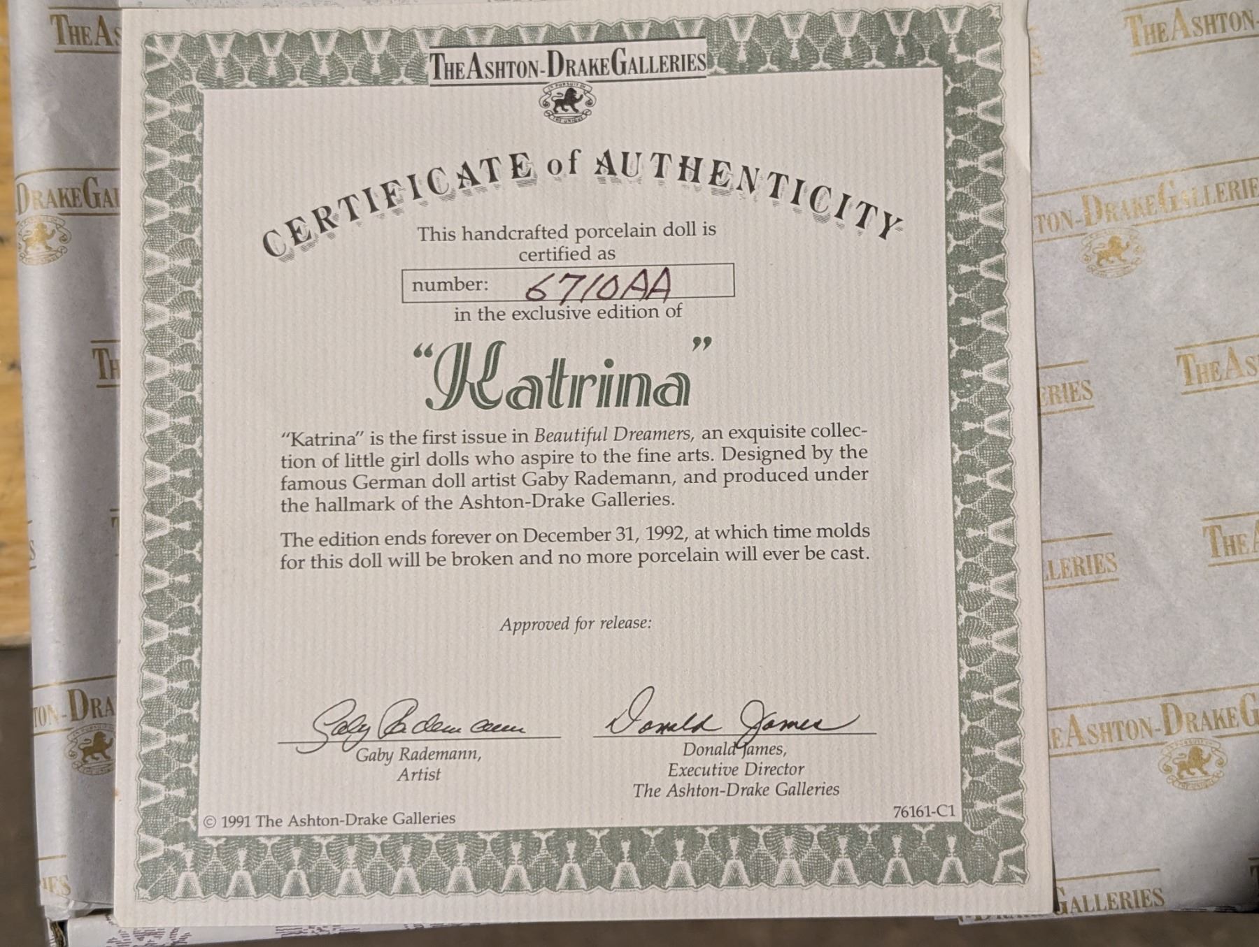 Ashton Drake Porcelain Doll "Katrina" 17" Original and Original Box