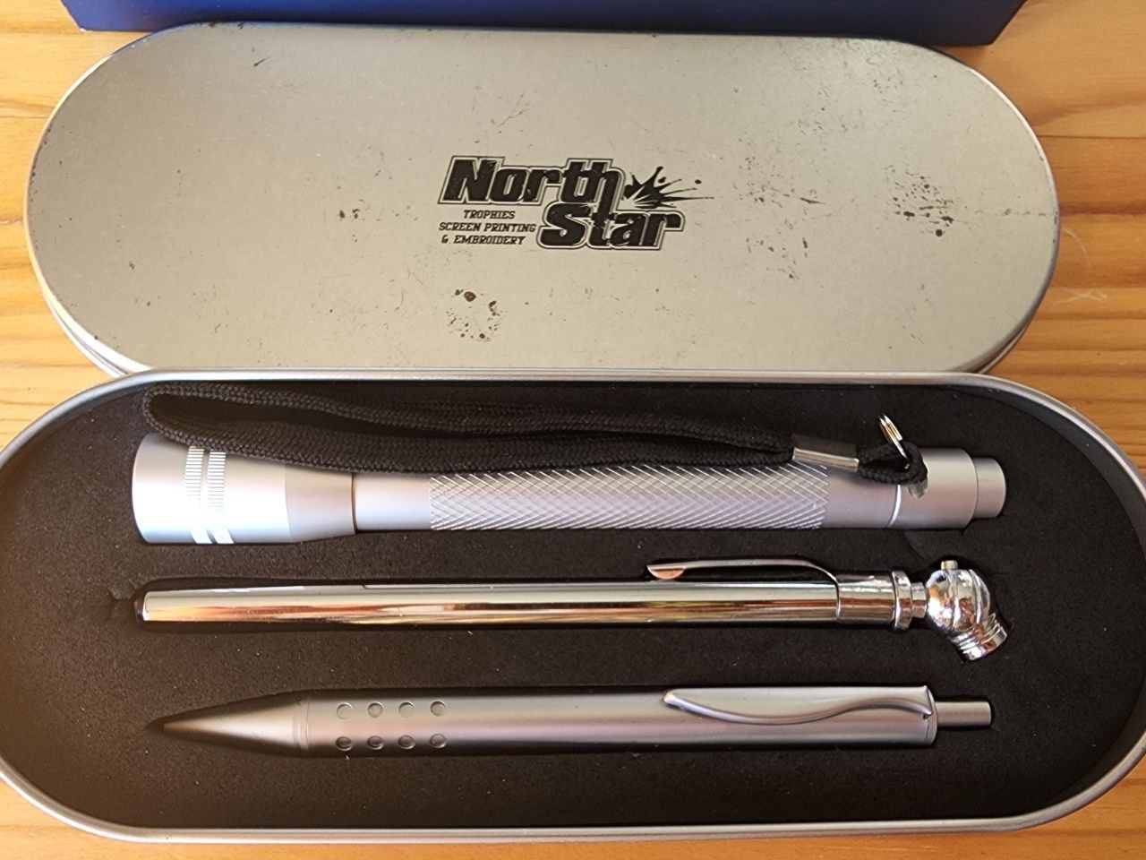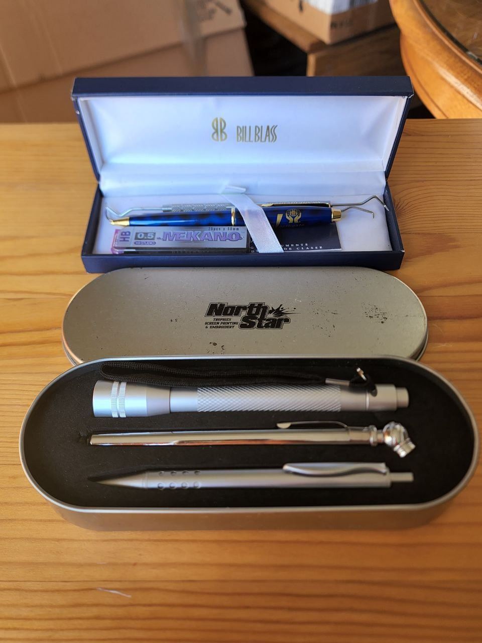 Assorted Company Pens/Utensils in cases. North Star, Bill Bass