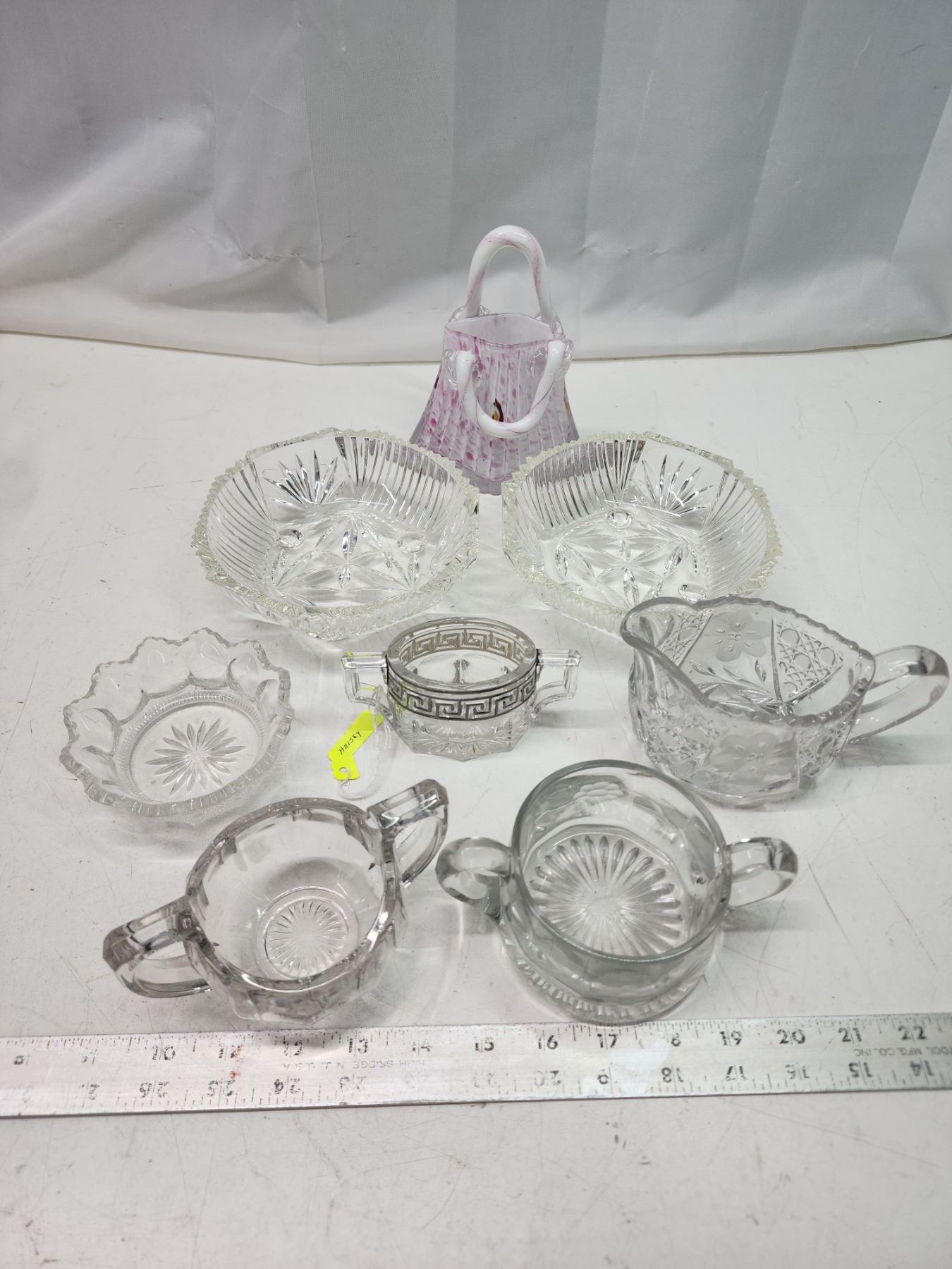 Assorted crystal dishes - bowls, cream n sugars, etc.