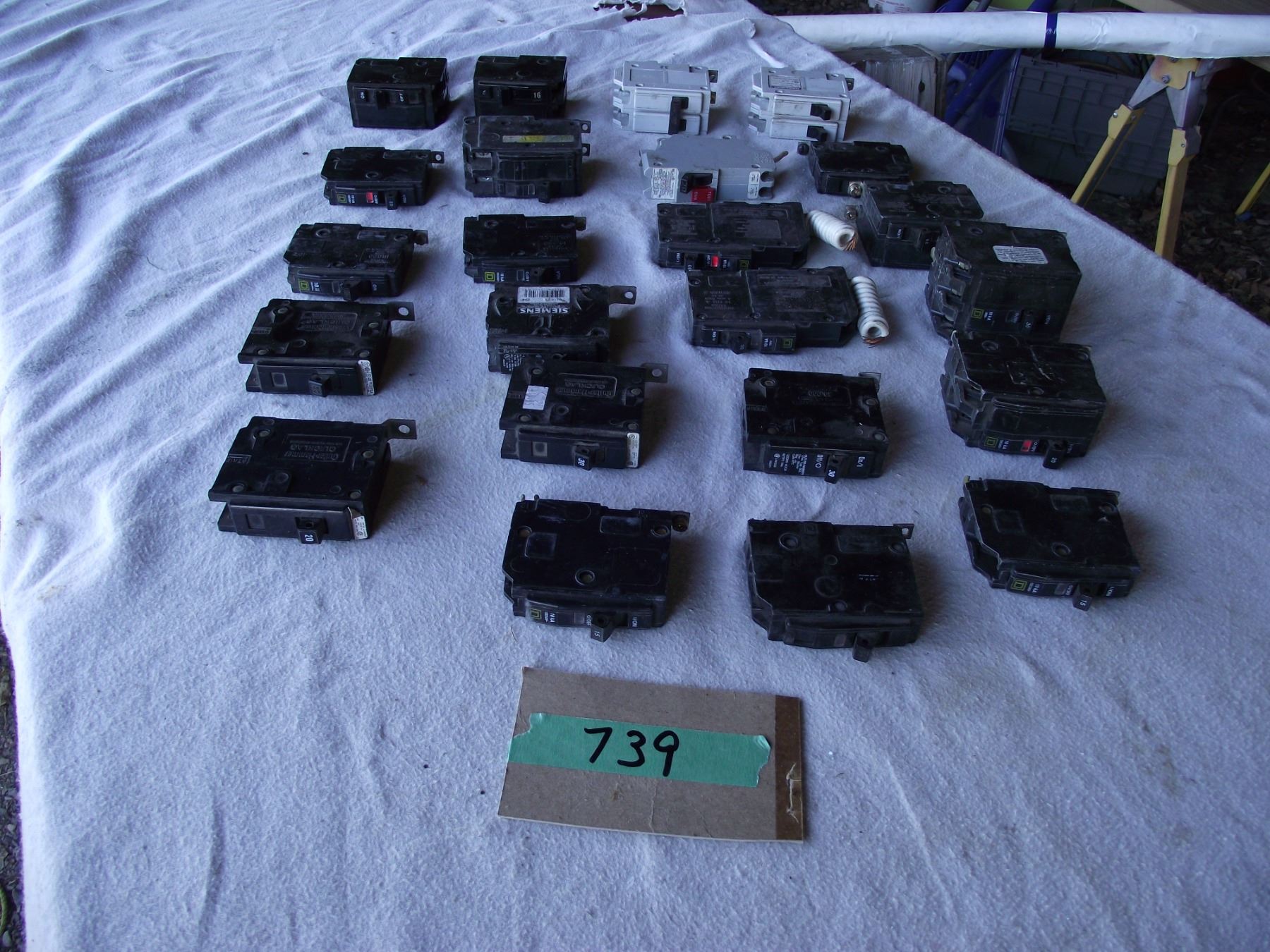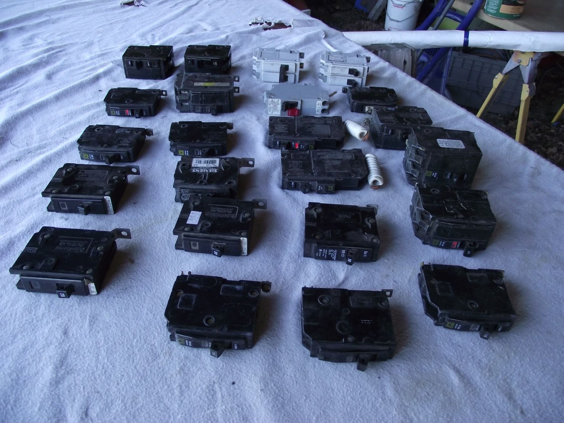 Assorted electrical breakers, Mostly Sq D & Westinghouse bolt in style, 2 push in style