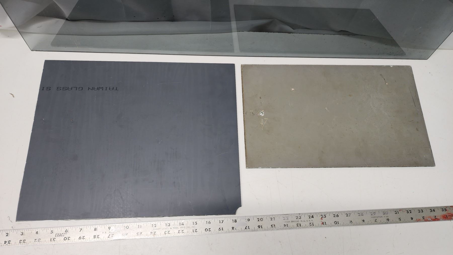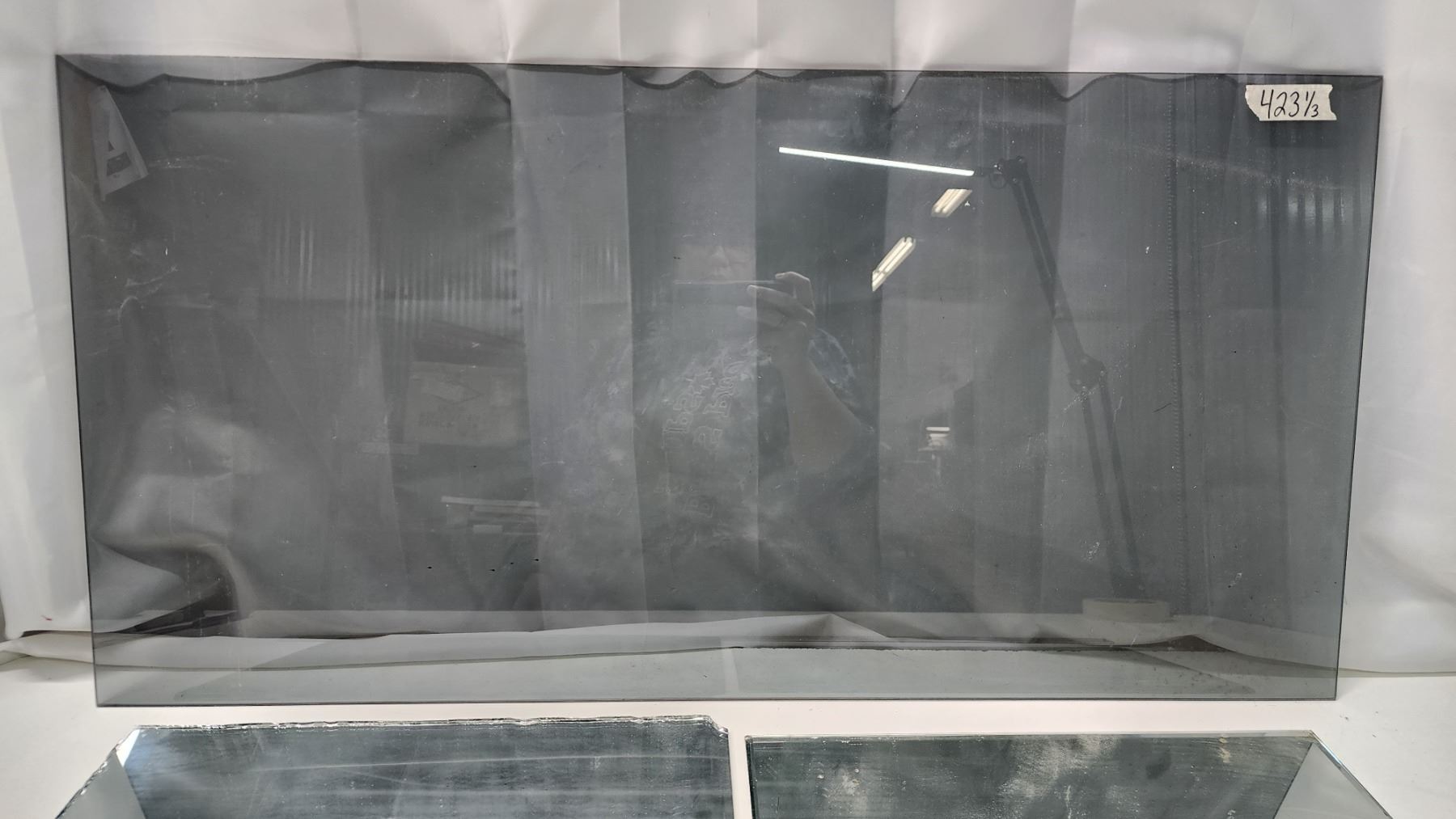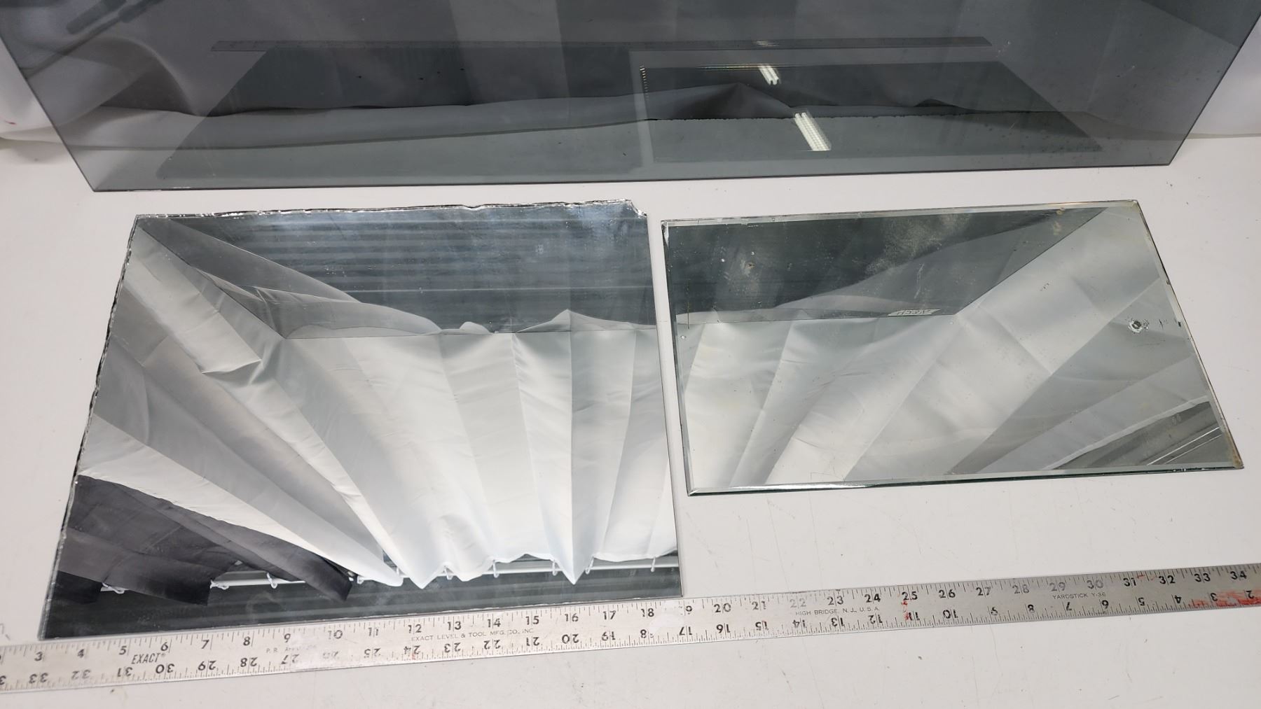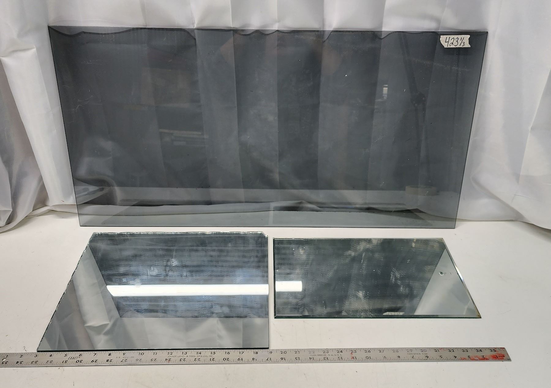 Larger mirror - 16 1/4" x 13", Smaller mirror - 16"H x 9.5"W & Glass pane - 36"x18"