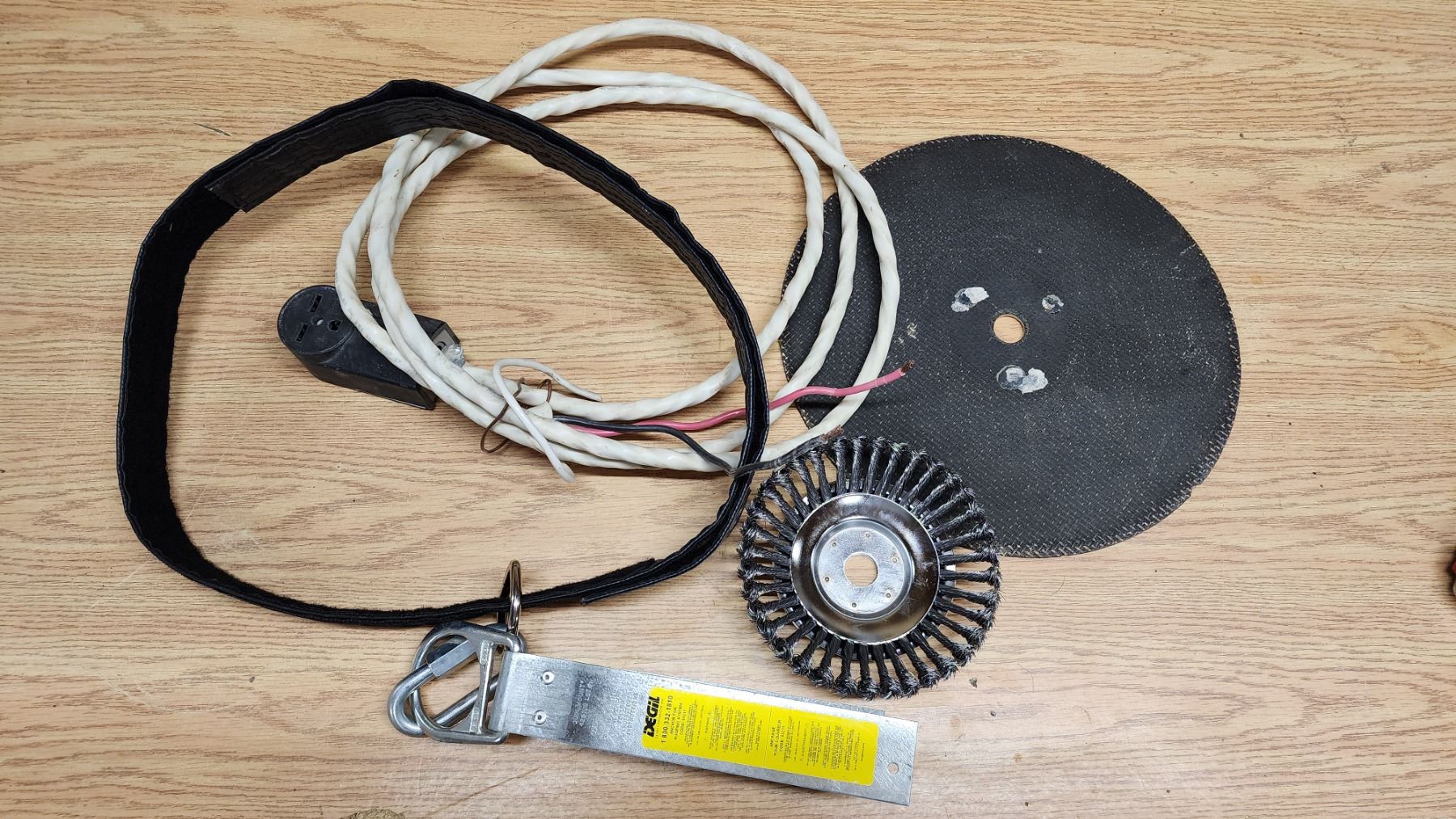 Assorted hardwares - Heavy punching bag strap, Roof anchor, Grinder, Power cable piece, etc