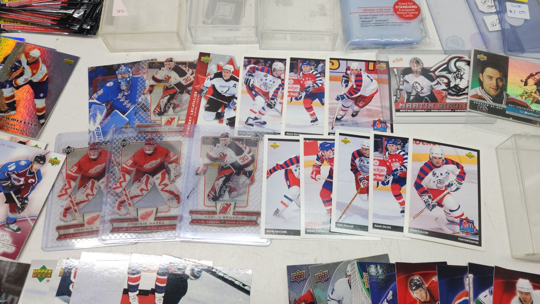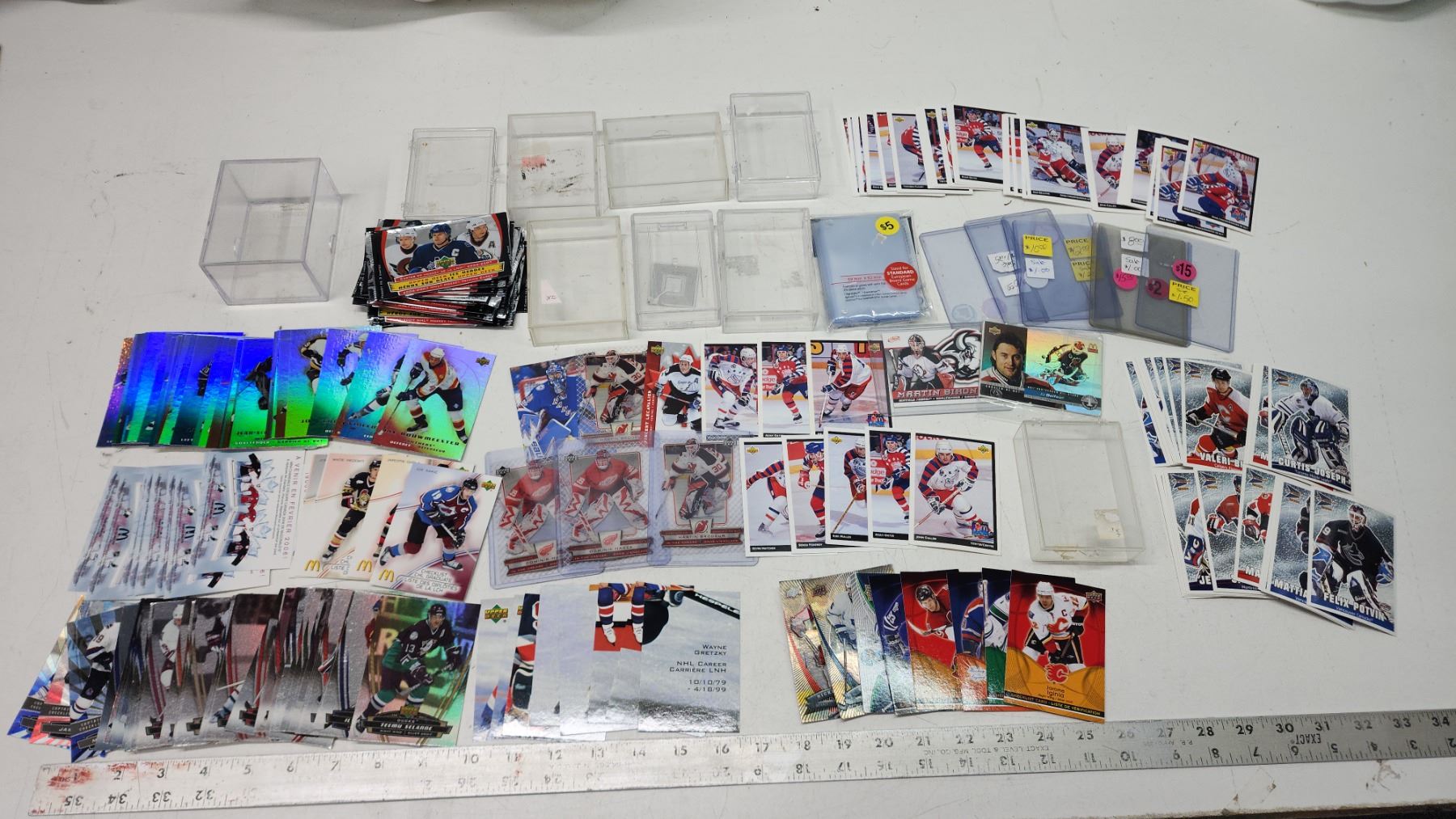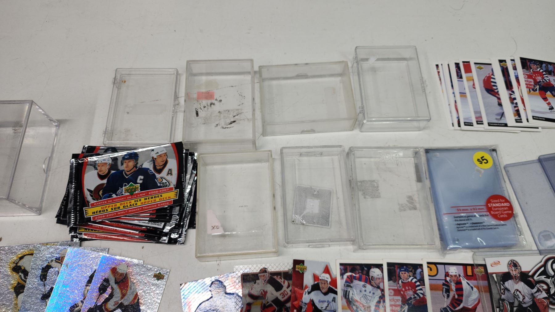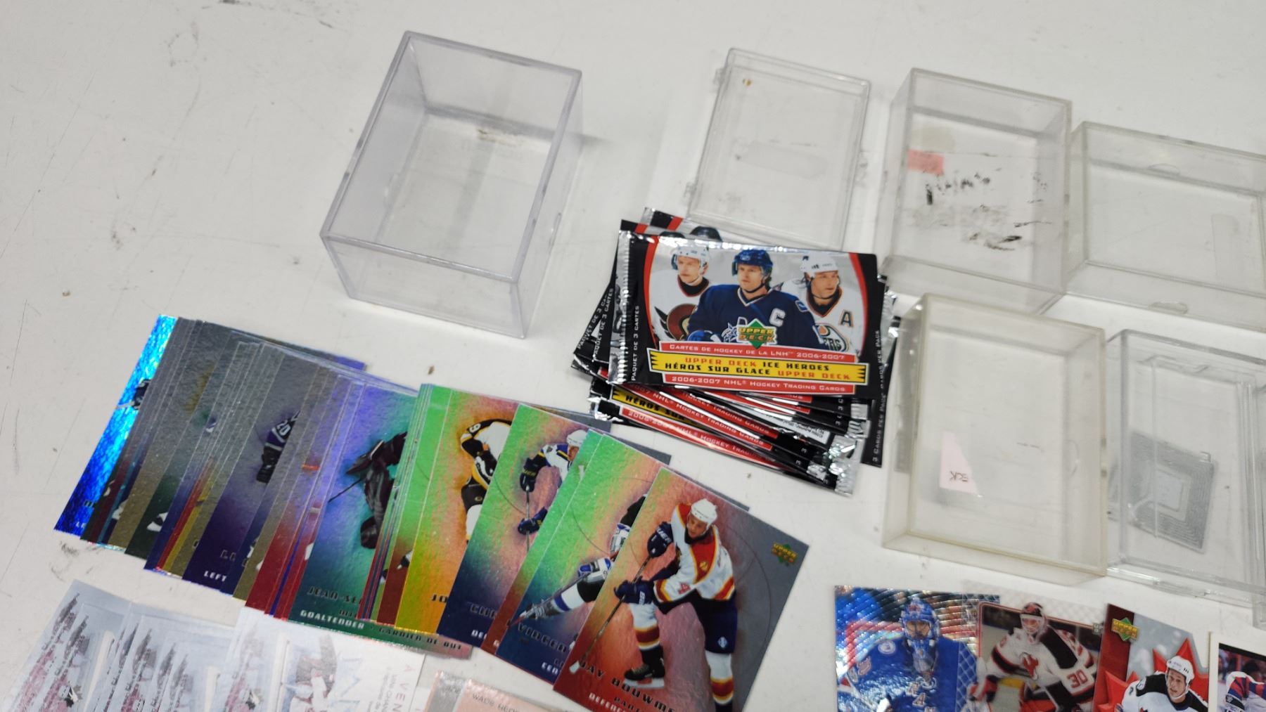 Assorted hockey cards, plastic cases/sleeves