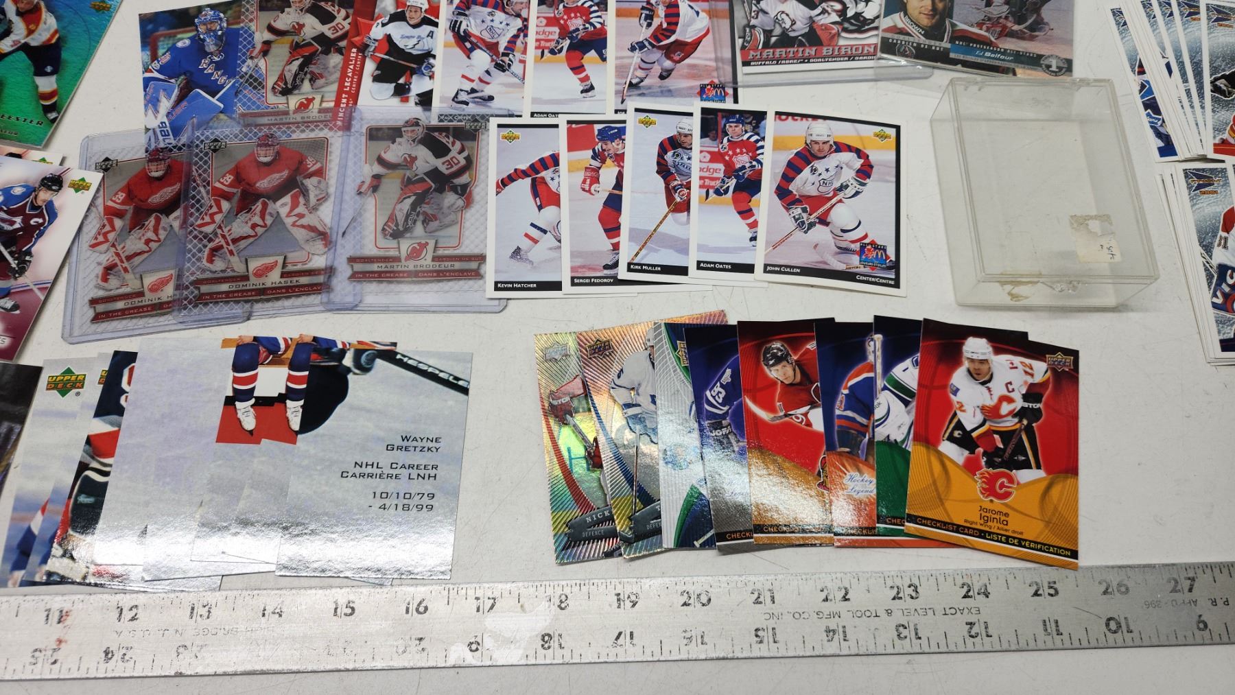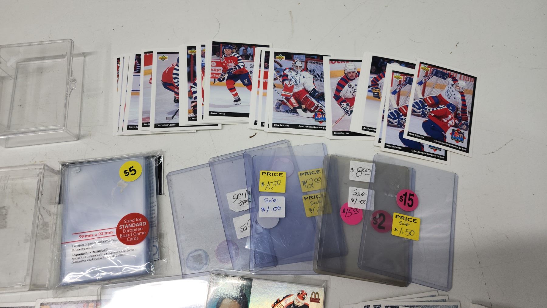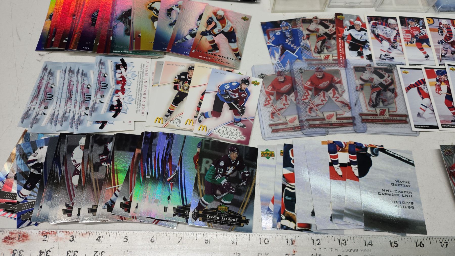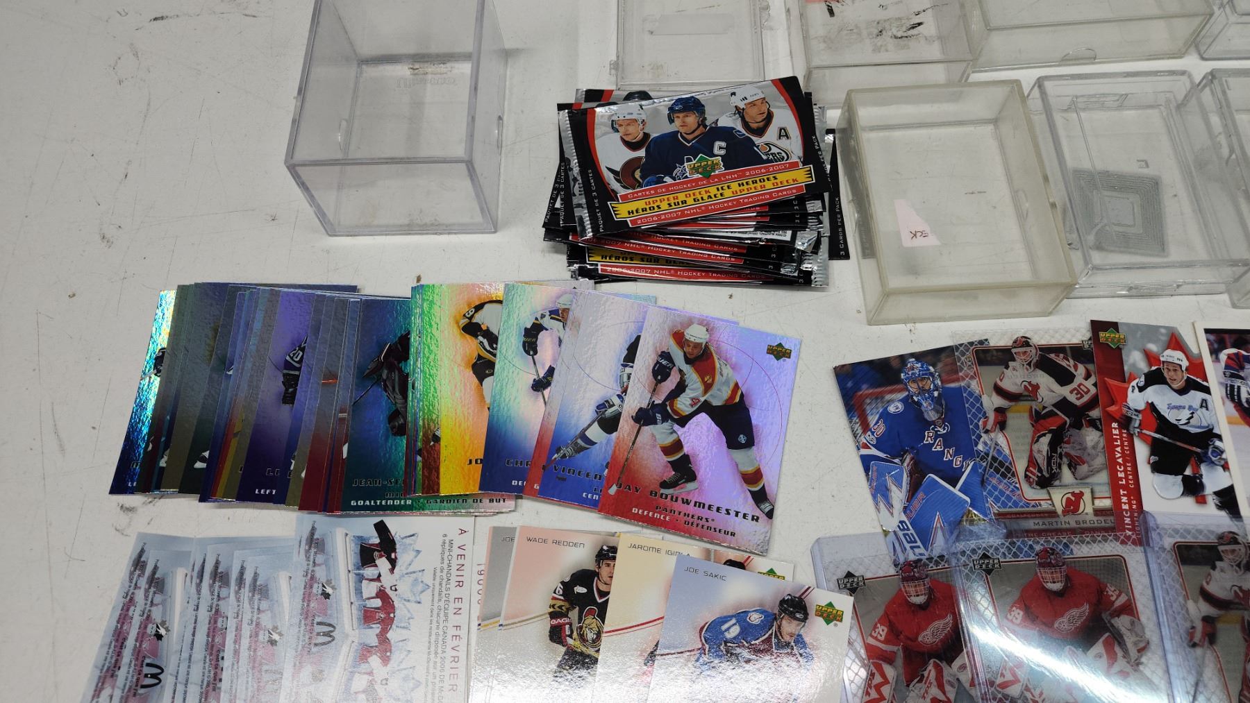 Assorted hockey cards, plastic cases/sleeves