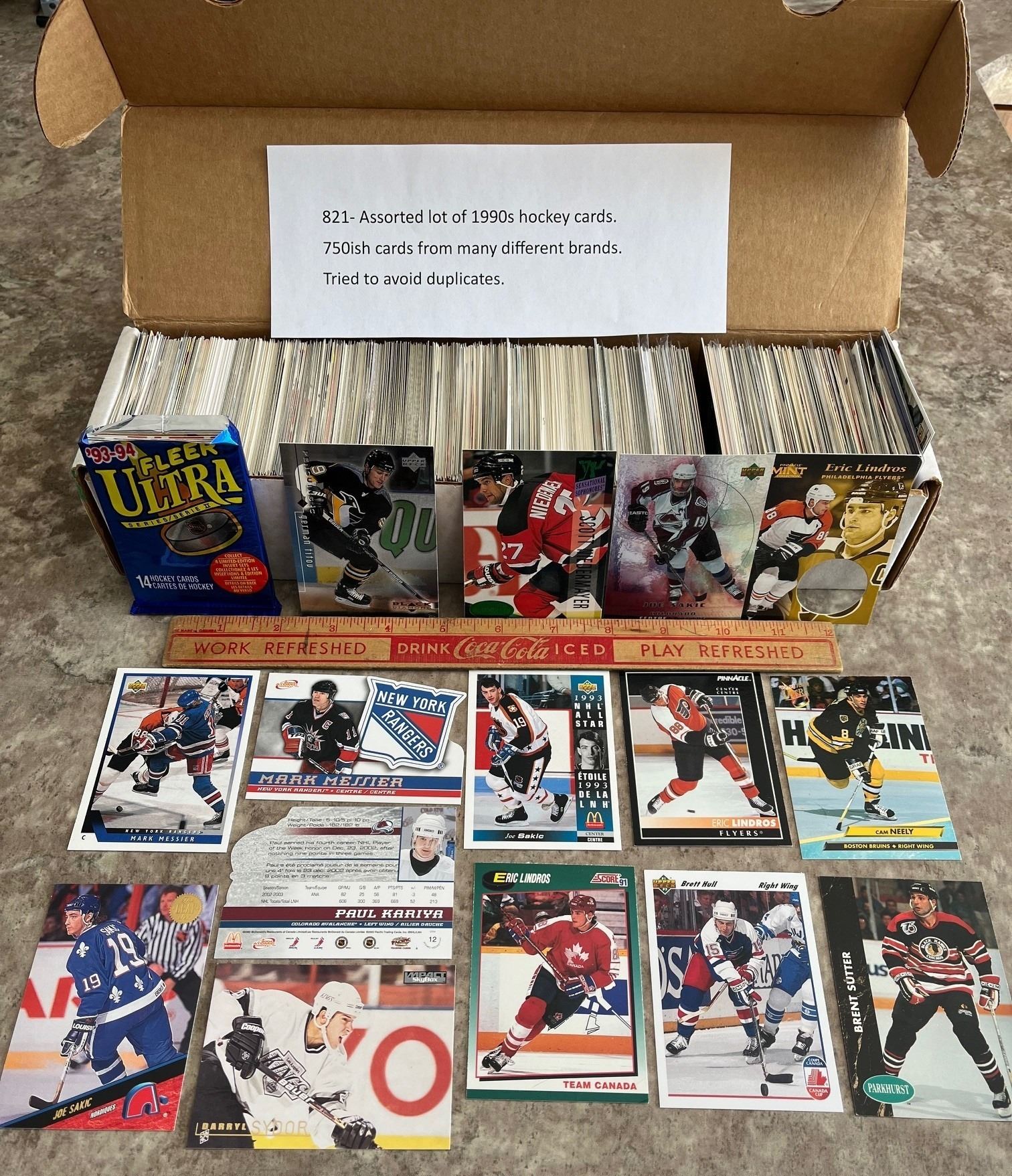 Assorted lot of 1990s hockey cards. 750ish cards from many different brands. Tried to avoid duplicates.
