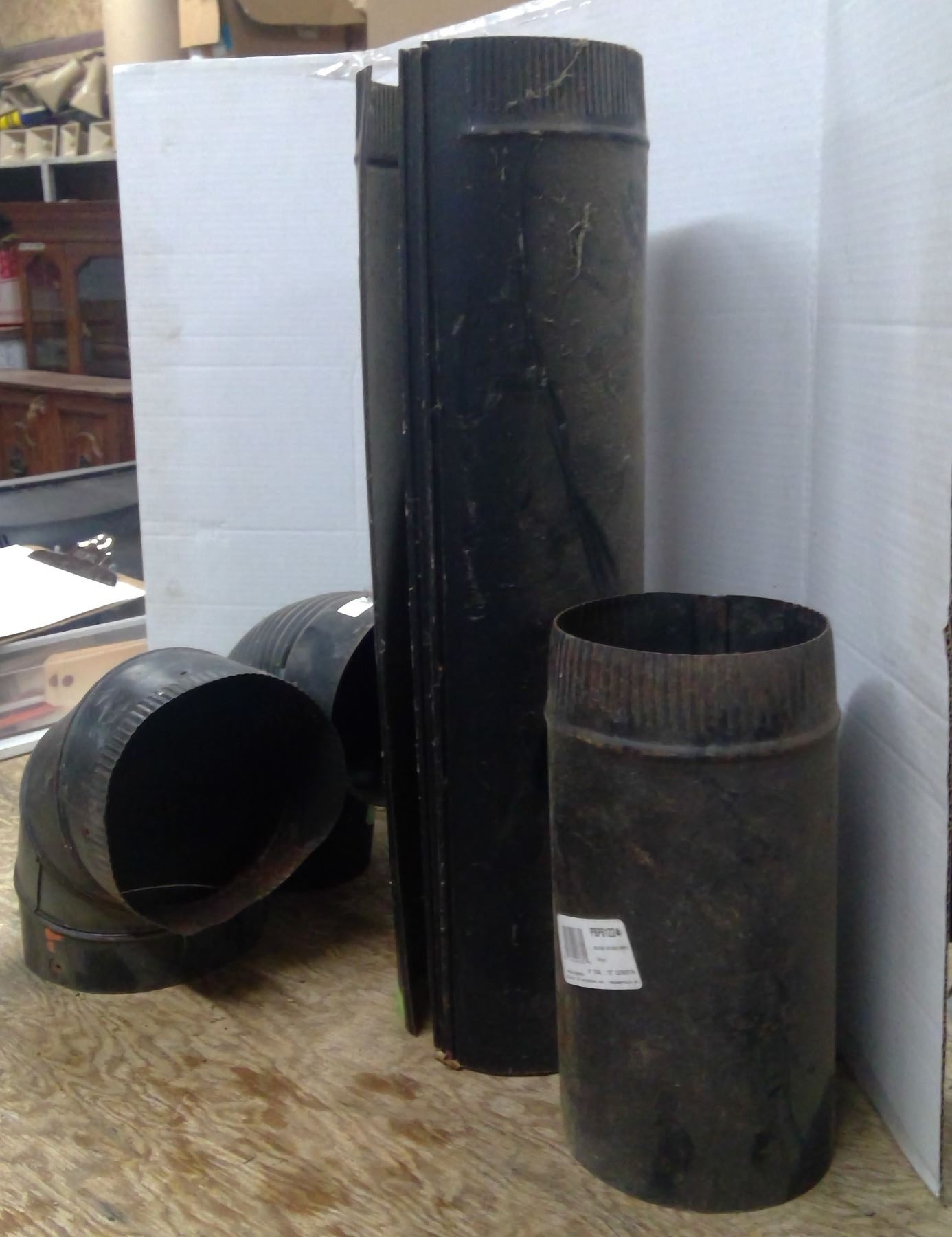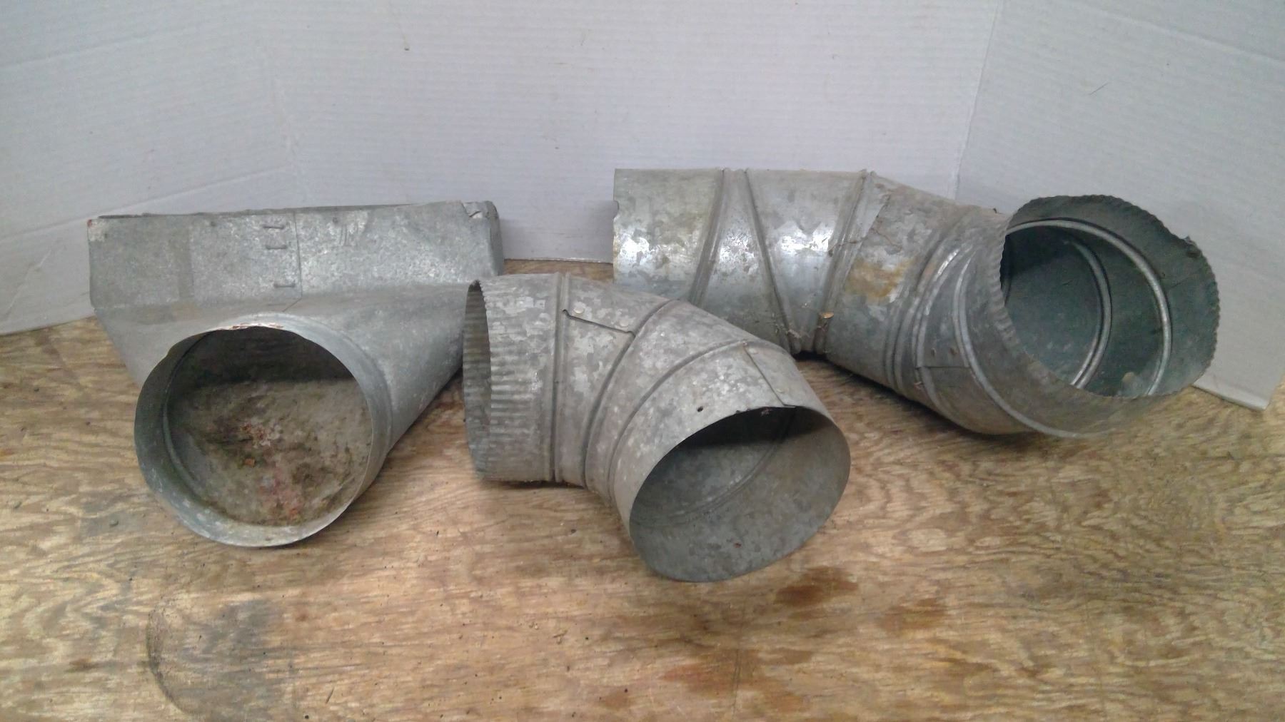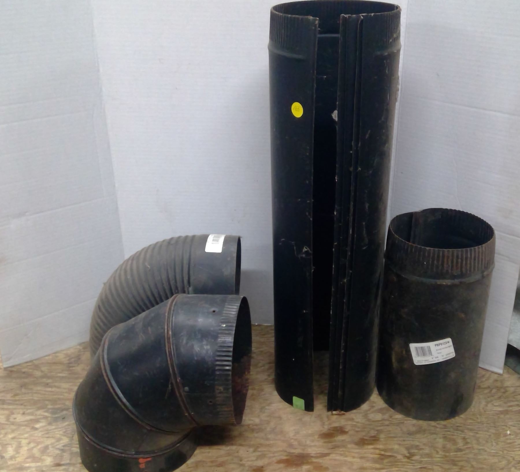 Assorted stove pipe 6", 7" elbows, galvanized duct work 5"