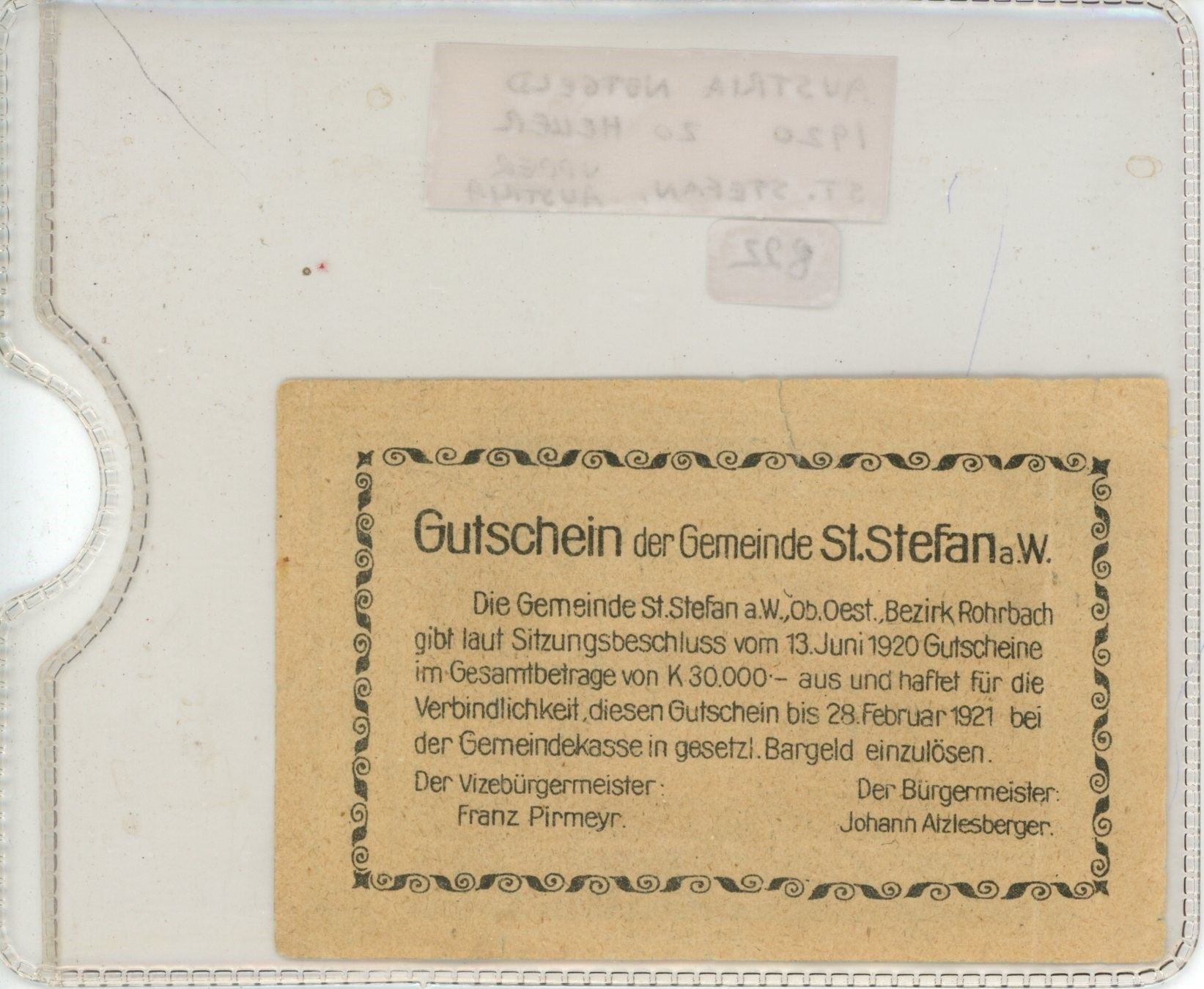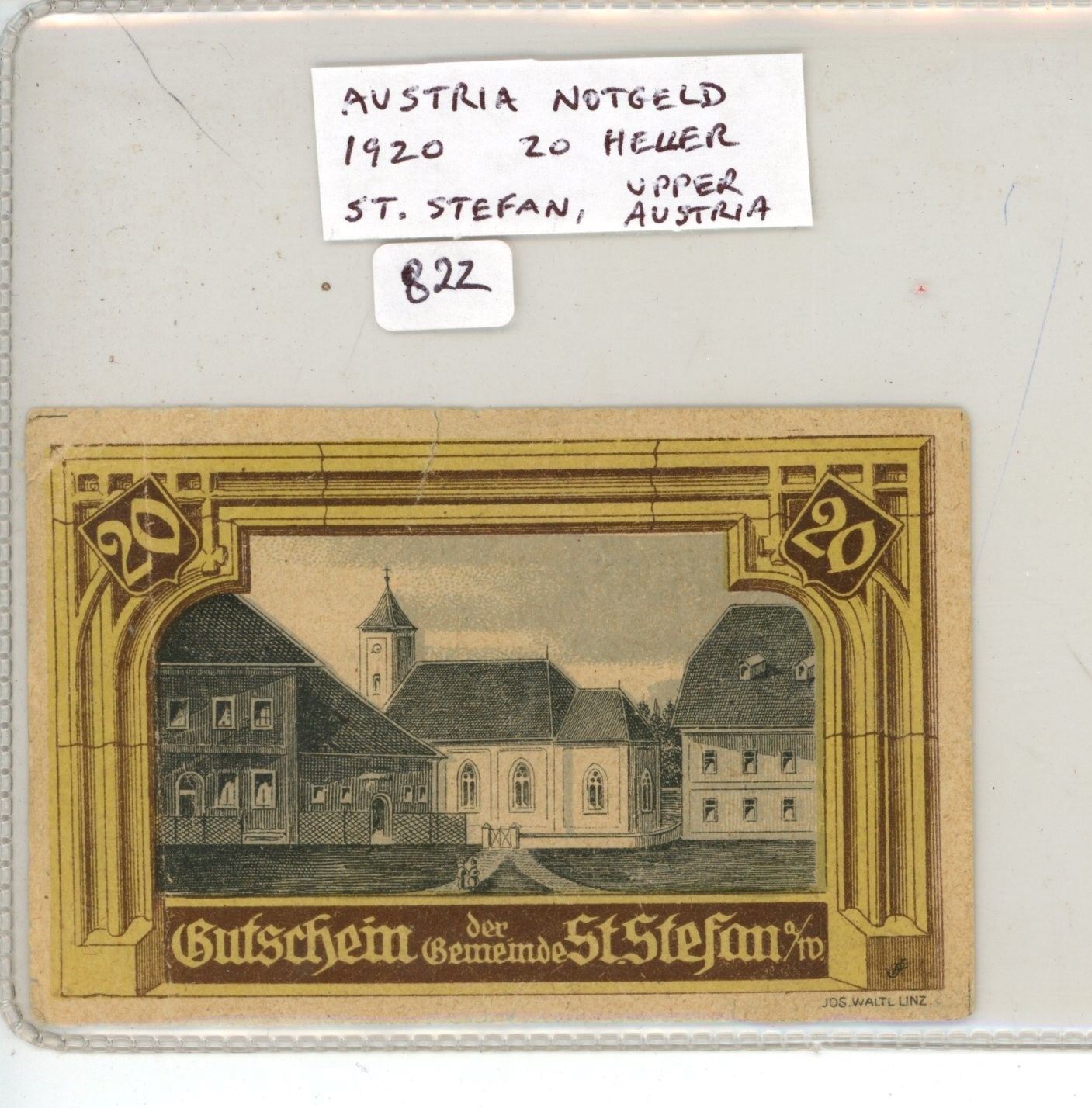 Austria Notgeld (Necessity Money). 1920 20 Heller. St. Stefan, Upper Austria. F.