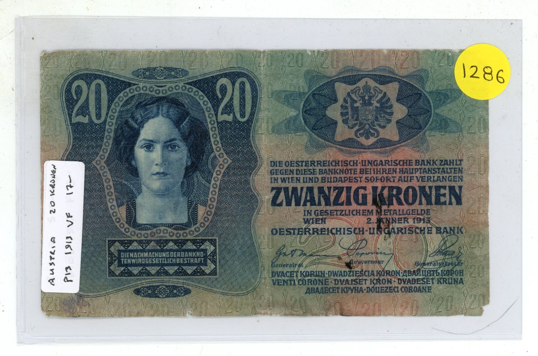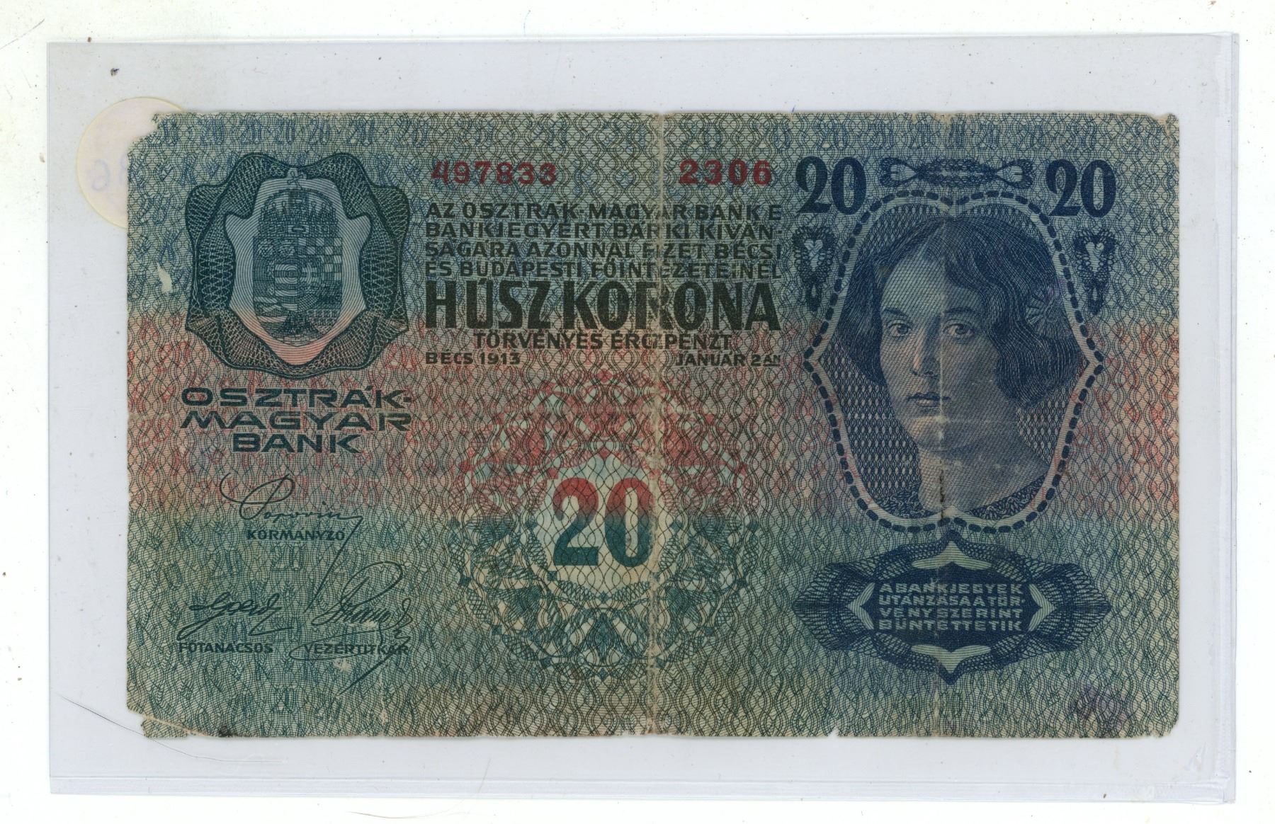 Austro-Hungarian Empire. 1913 20 Kronen. Bilingual note in both German and Hungarian. VF.