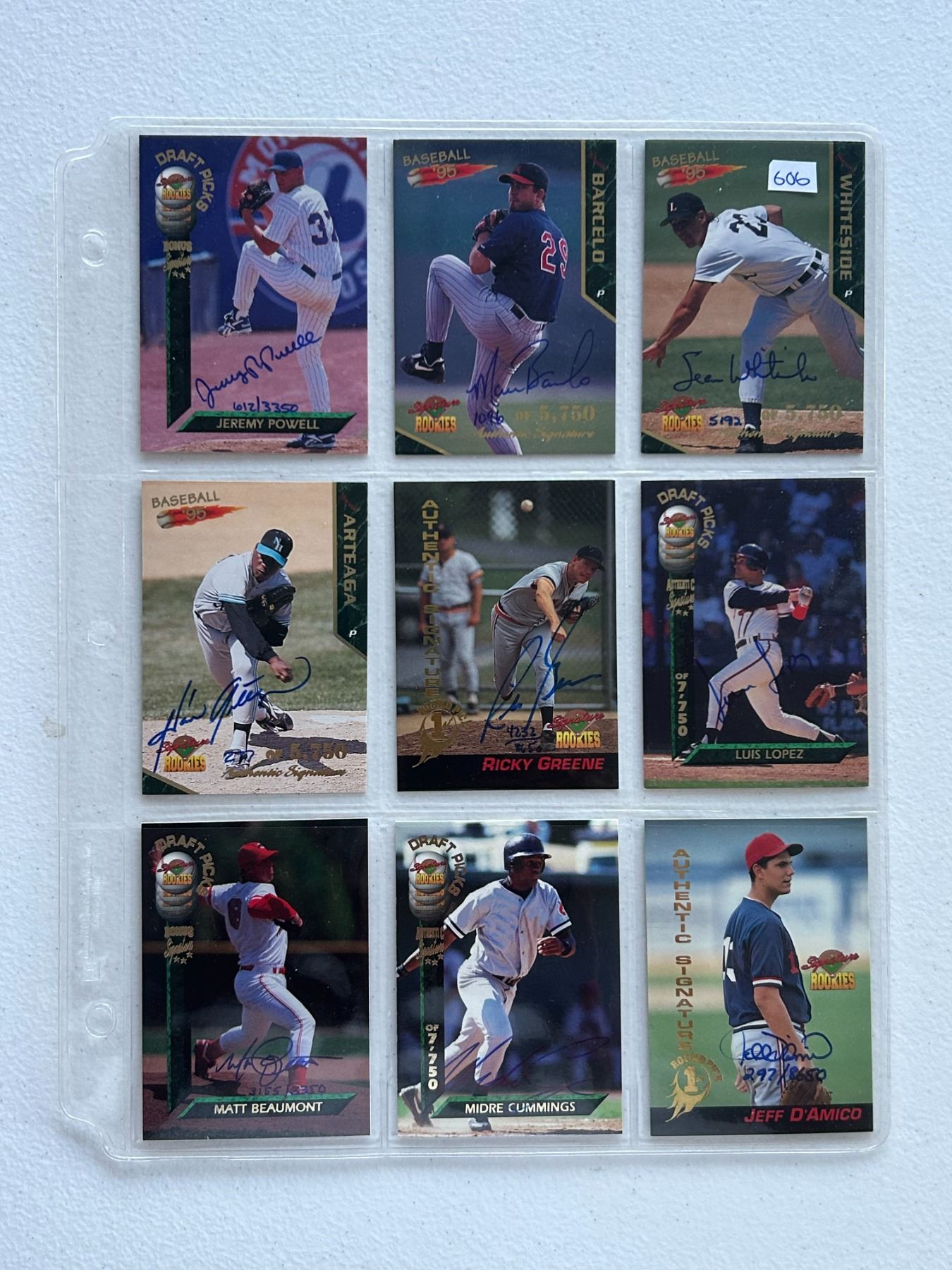 Autographed Baseball Cards - 1 Sheet (9 Baseball Cards)