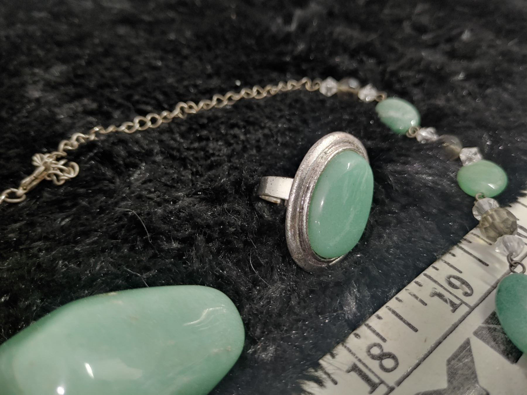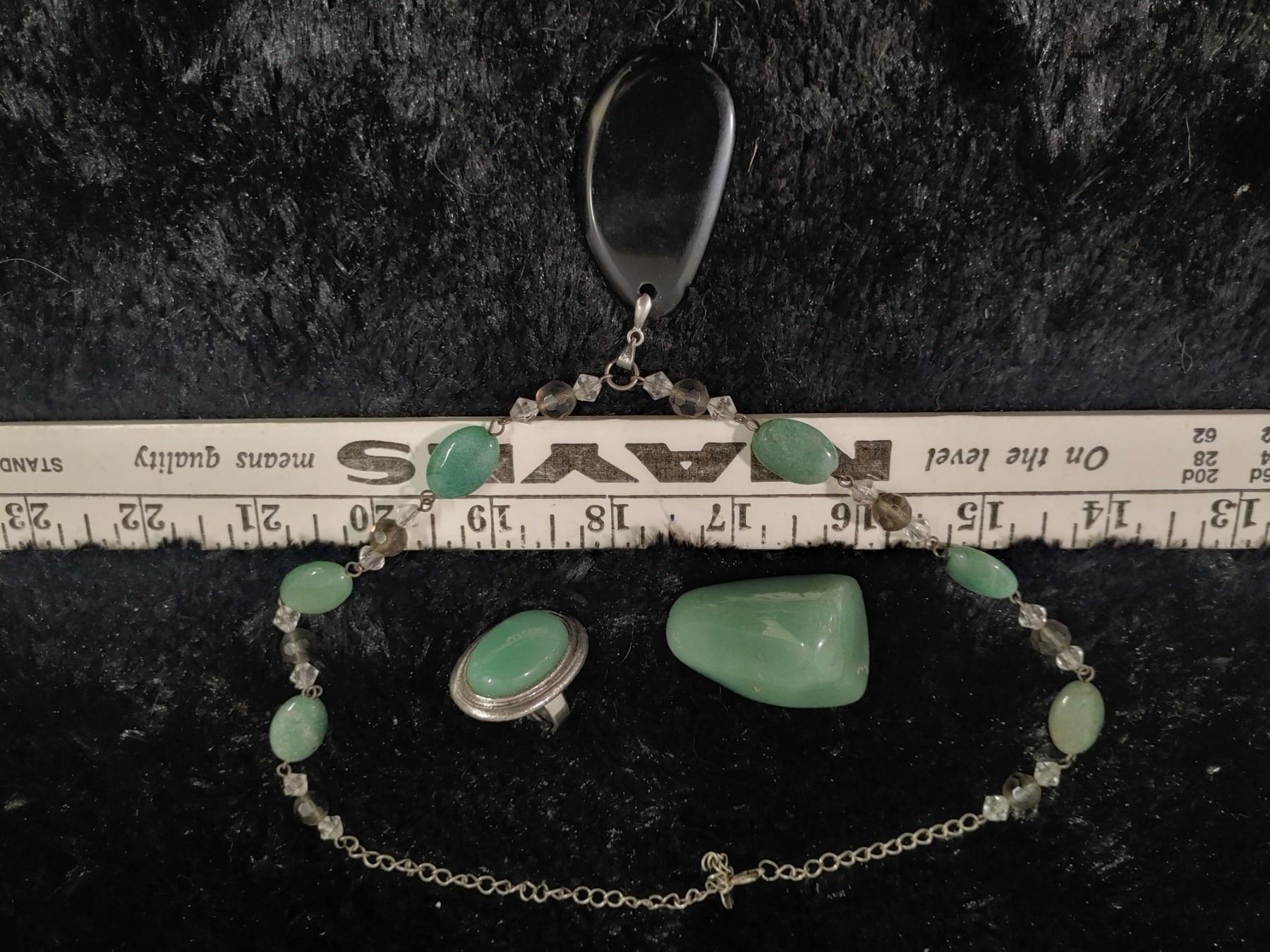 Aventurine + Onyx Necklace + Ring + Palm Stone