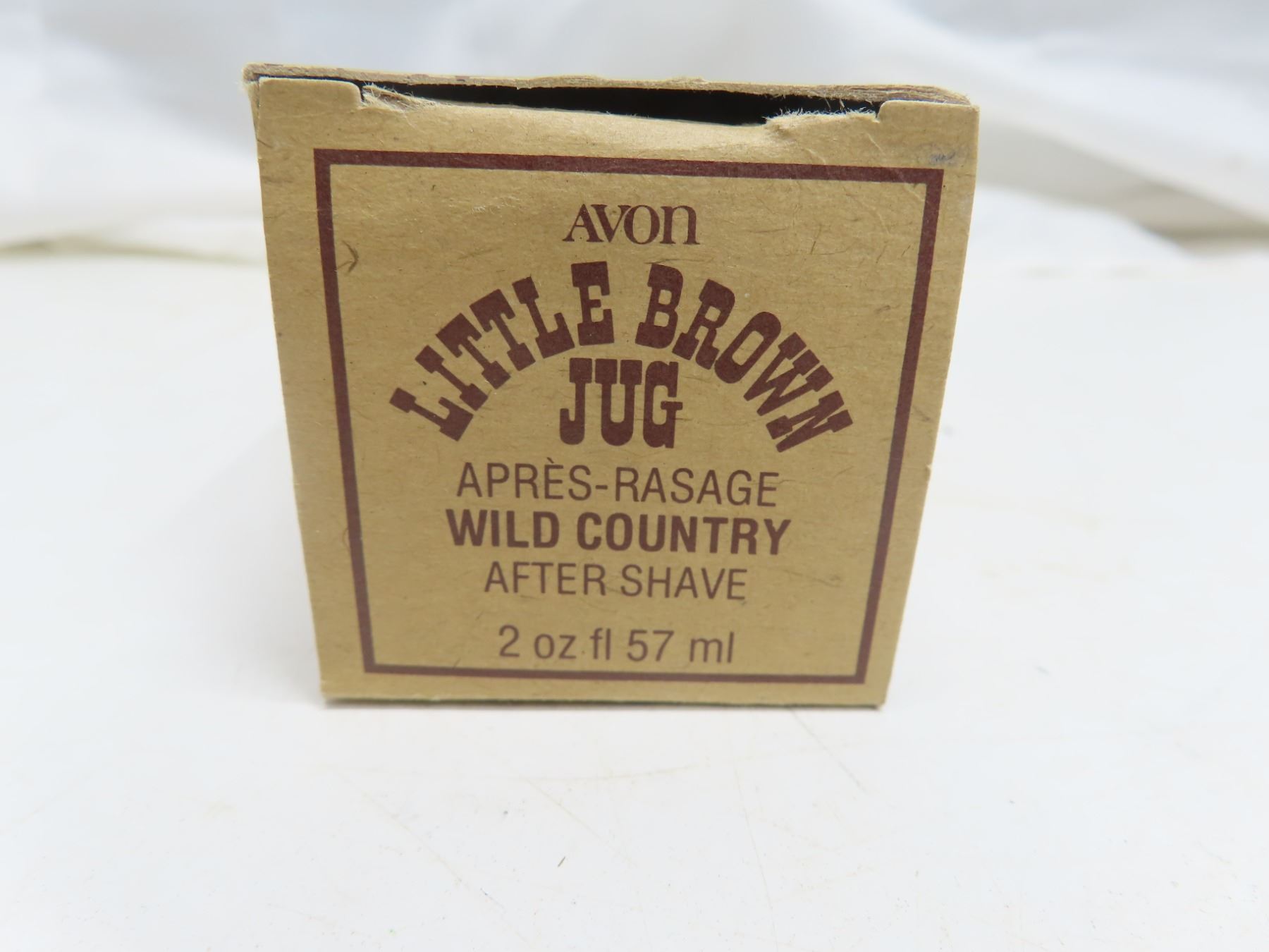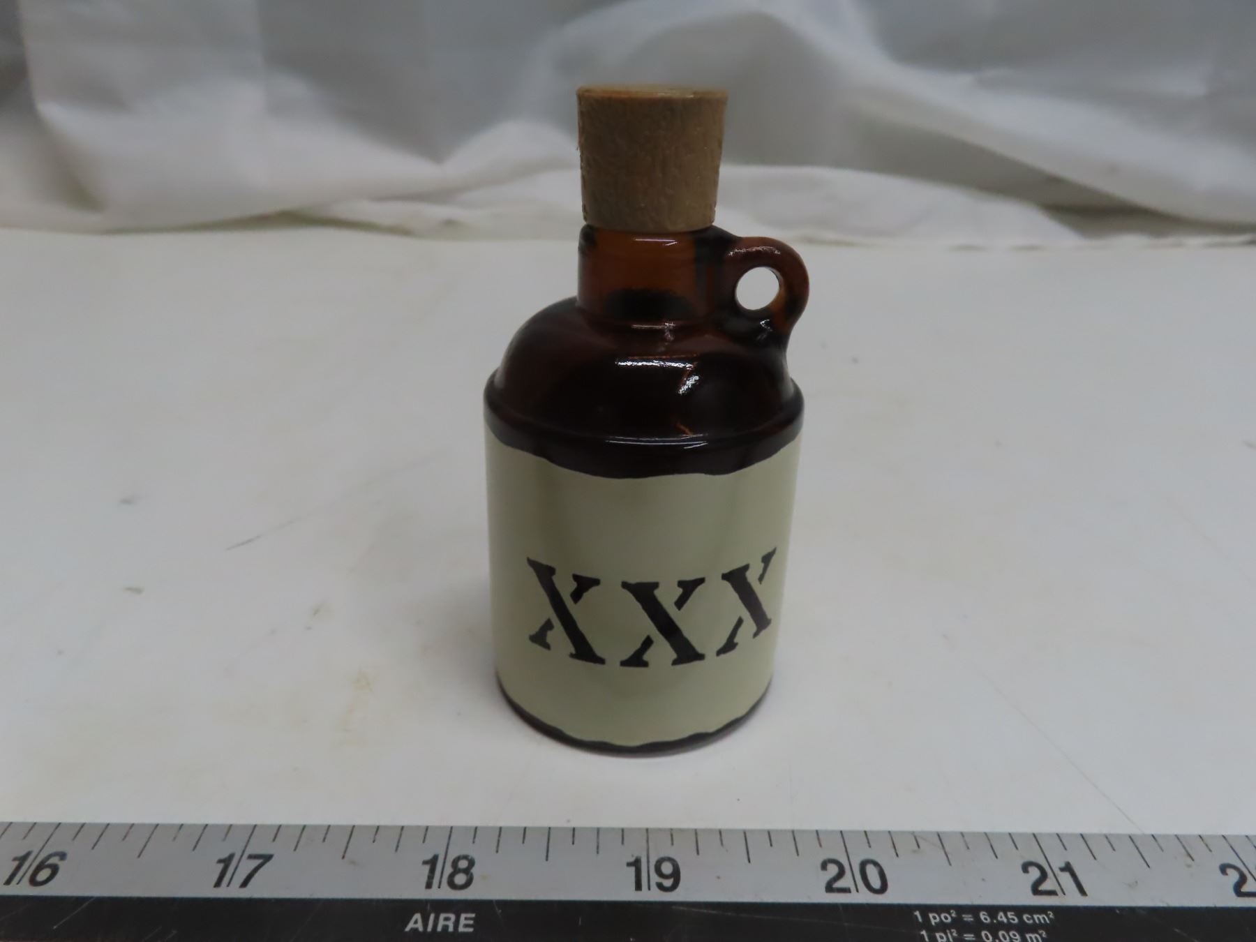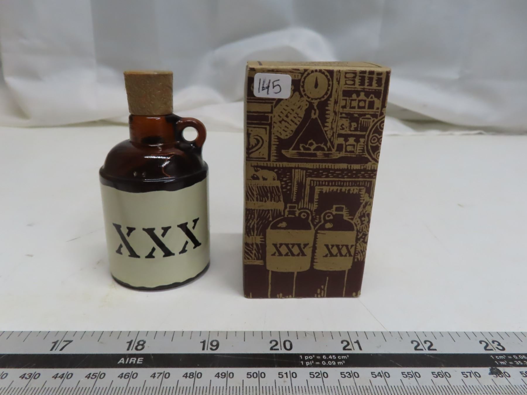 Avon Little Brown Jug. Brown glass with cork stopper. Housed in its original cardboard box.