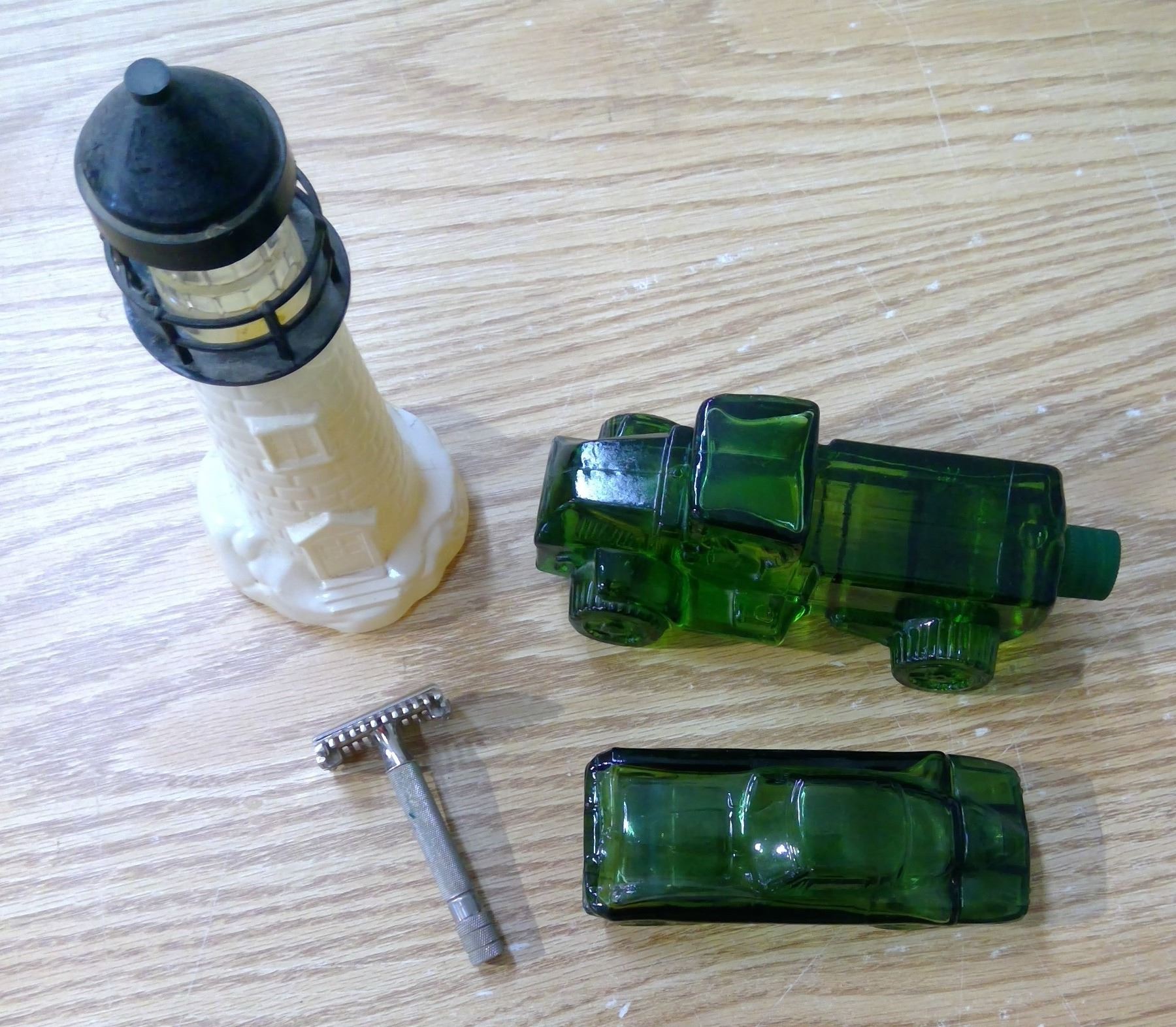 “Avon” + “Old Spice” Lighthouse full, Big Mack – Deep Woods Aftershave – Full, 1964 Chevy Stingray + Vintage Razor