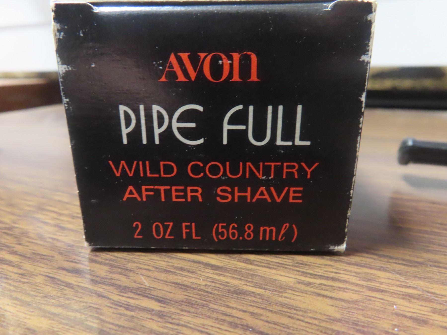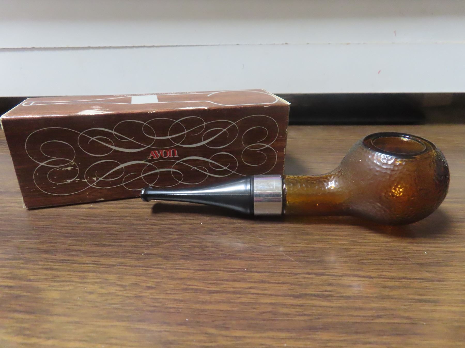 Avon Pipe Full Pipe. 2-ounce brown glass with black stem. Housed in its original Avon box.