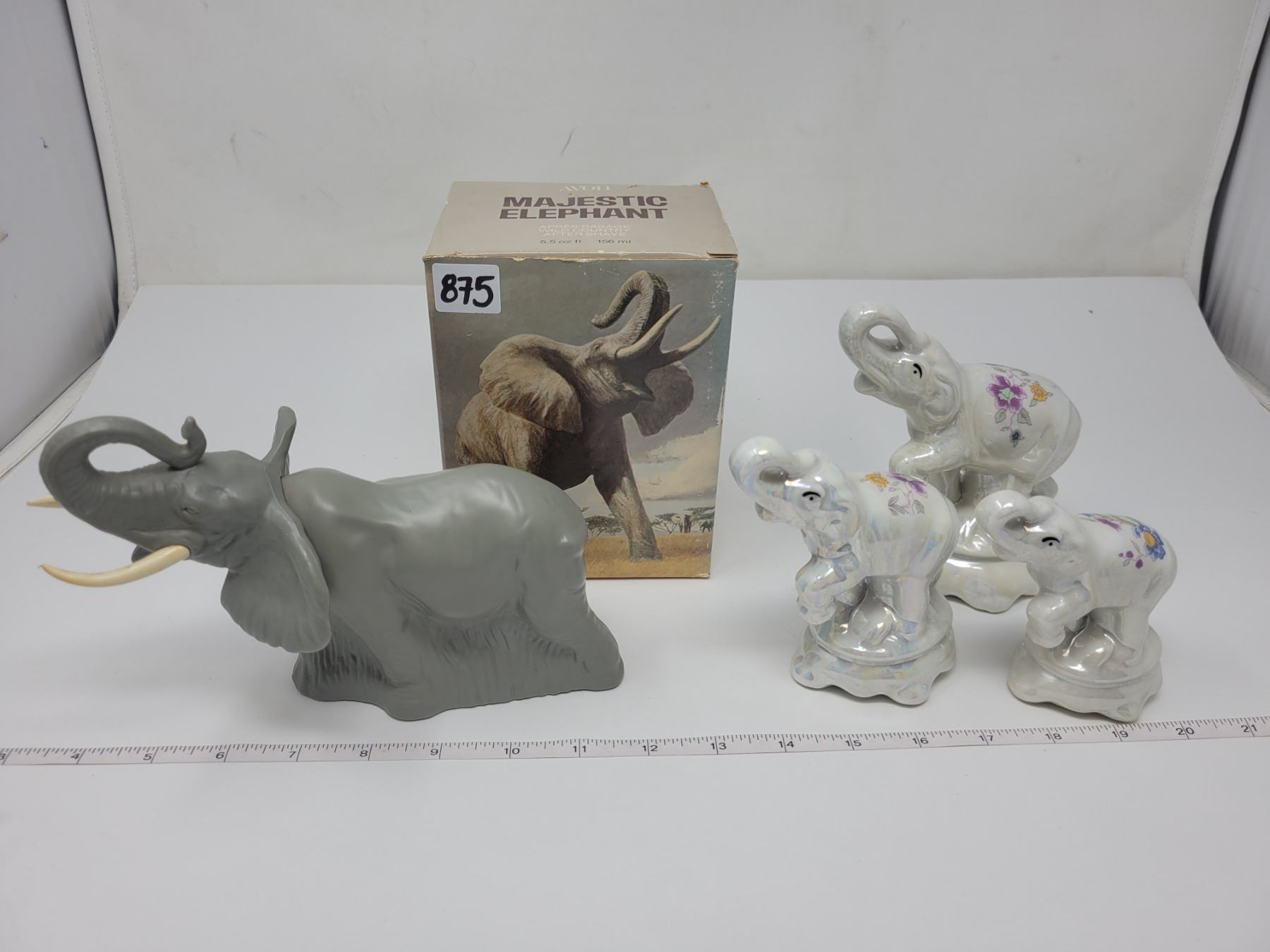 Avon majestic elephant (full) & 3 elephant figurines