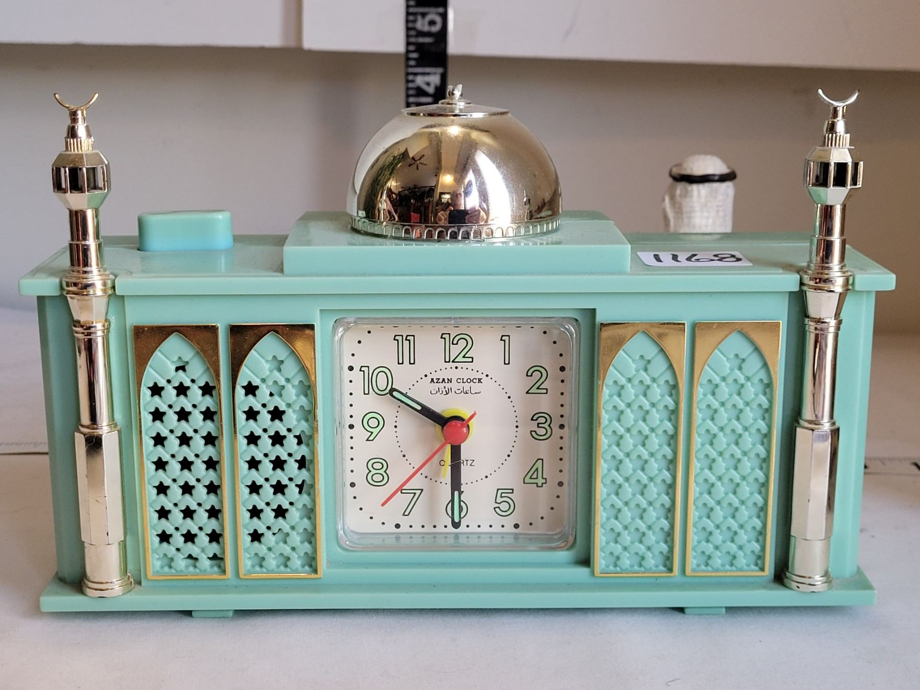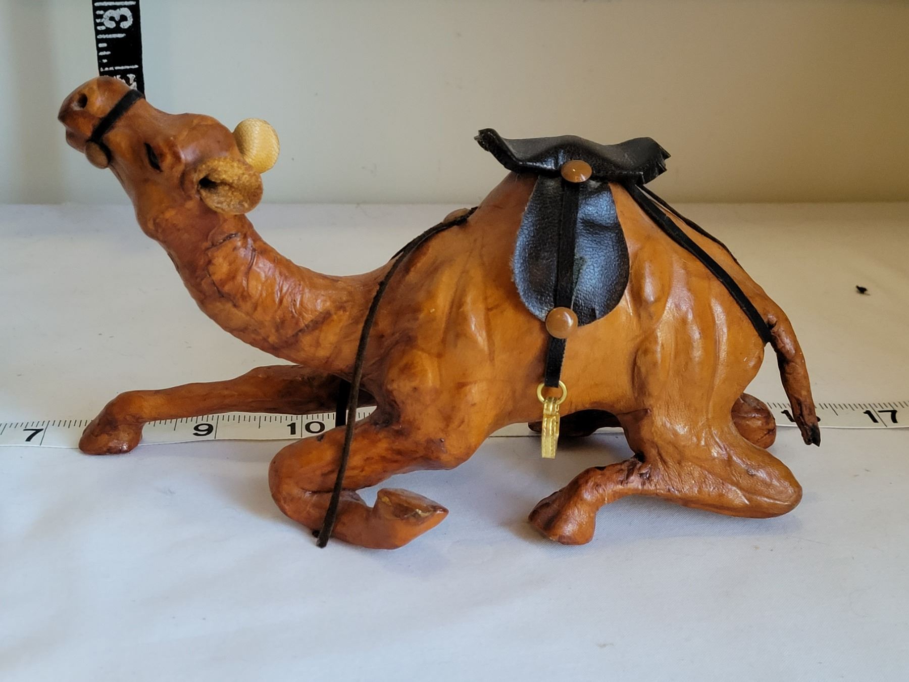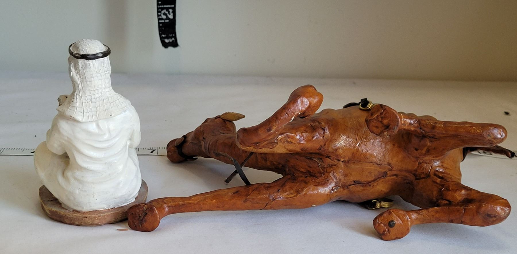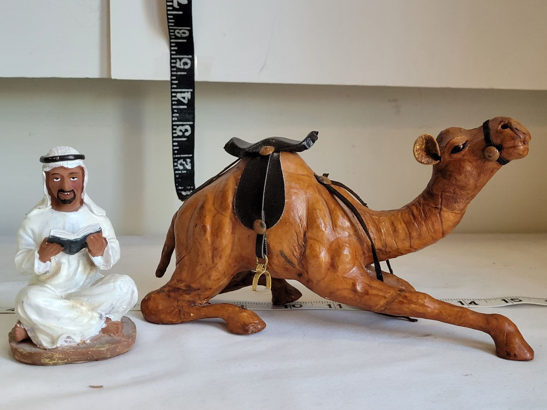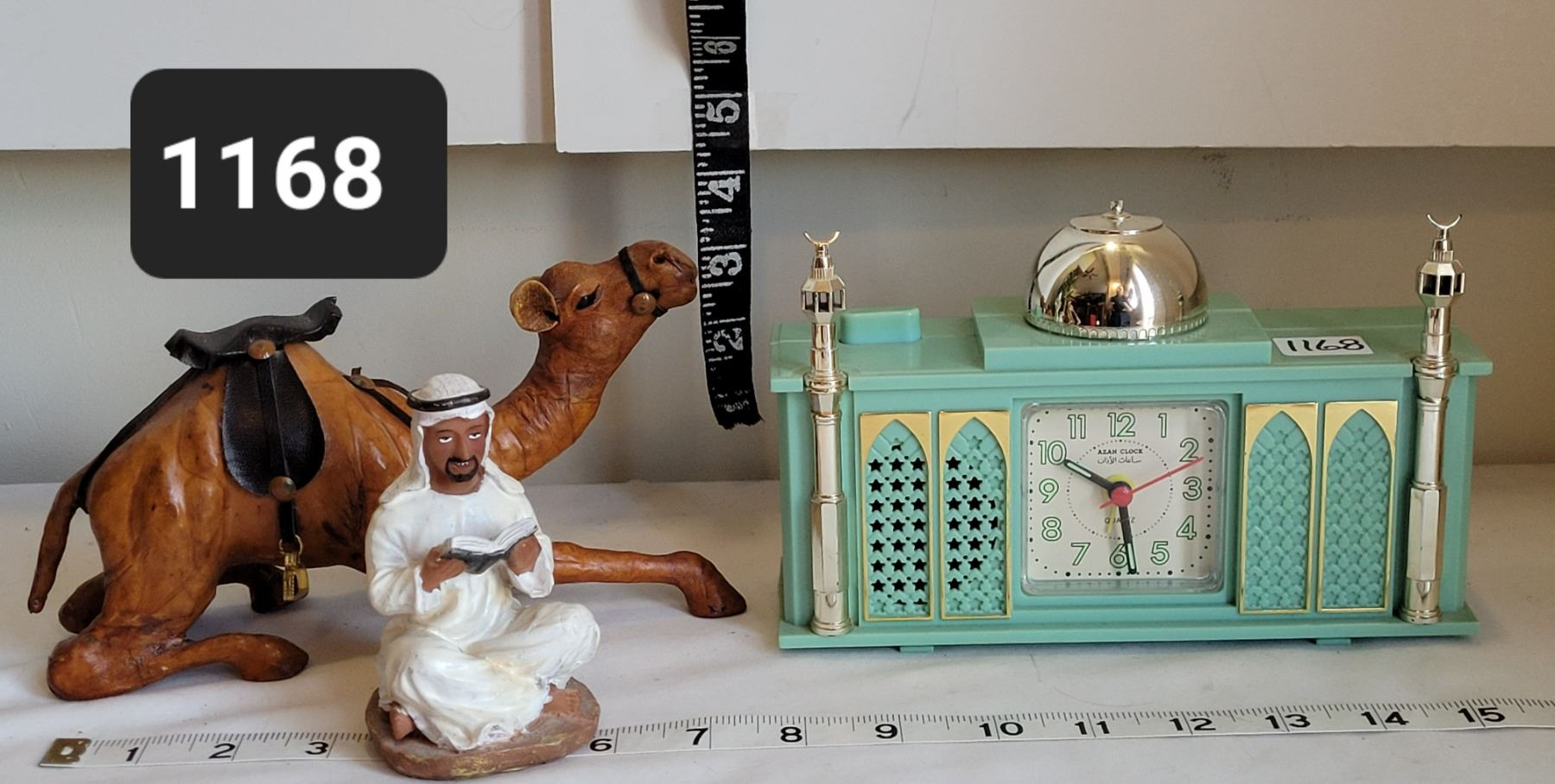 Azan alarm clock, male figure & leather camel.