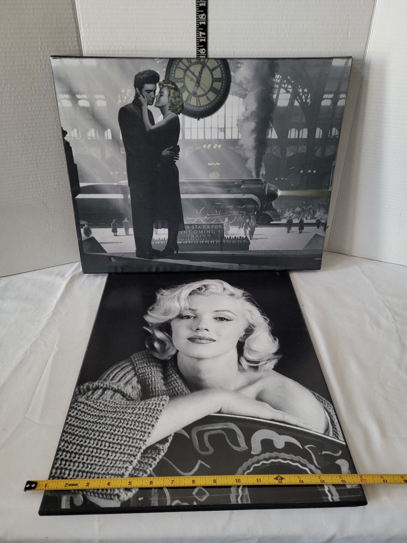 B&W canvas & board prints of Marilyn Monroe & Elvis Presley.
