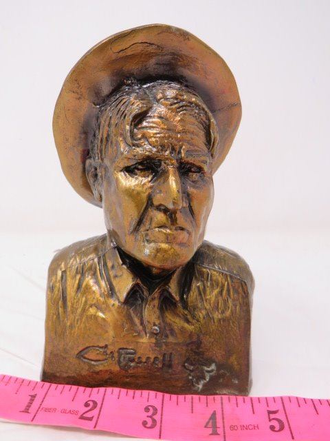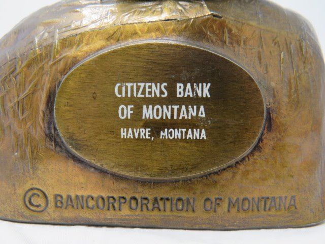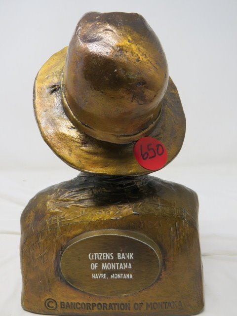 BANK BUST (CHARLES M. RUSSEL) *1962* (METAL W/BRONZE COLOR)