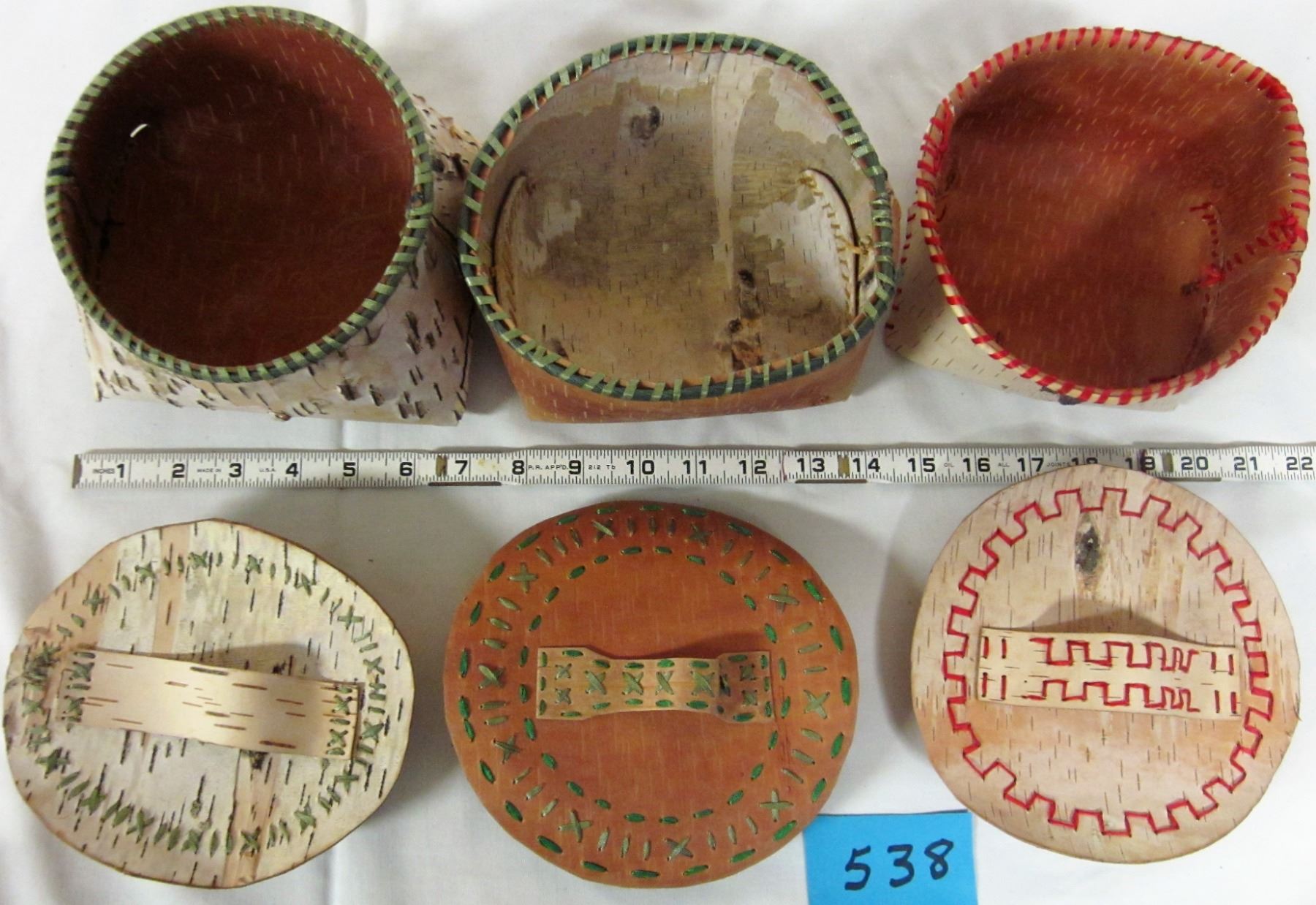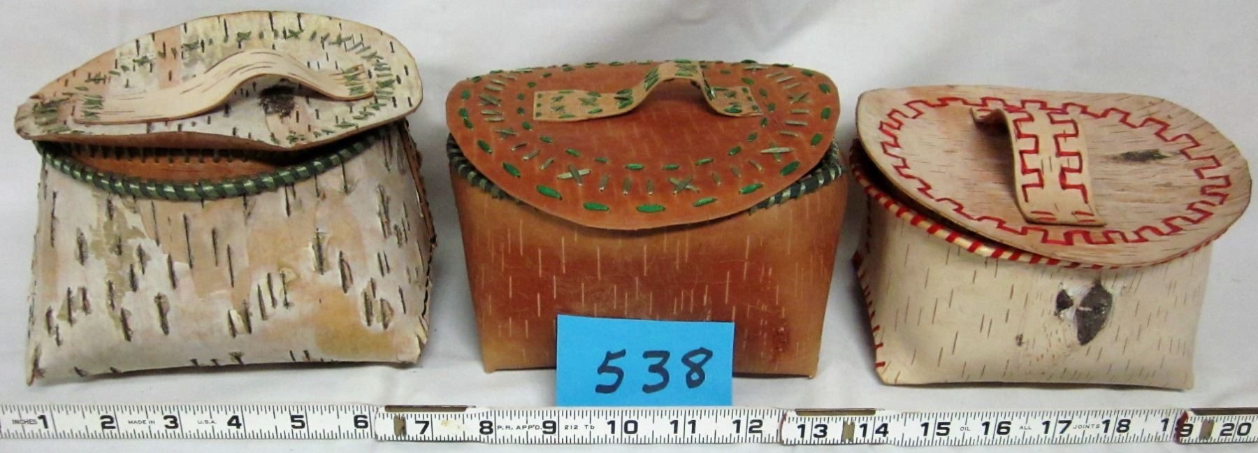BASKETS & LIDS (NATIVE HAND CRAFTED BIRCH BARK) *QTY 3*