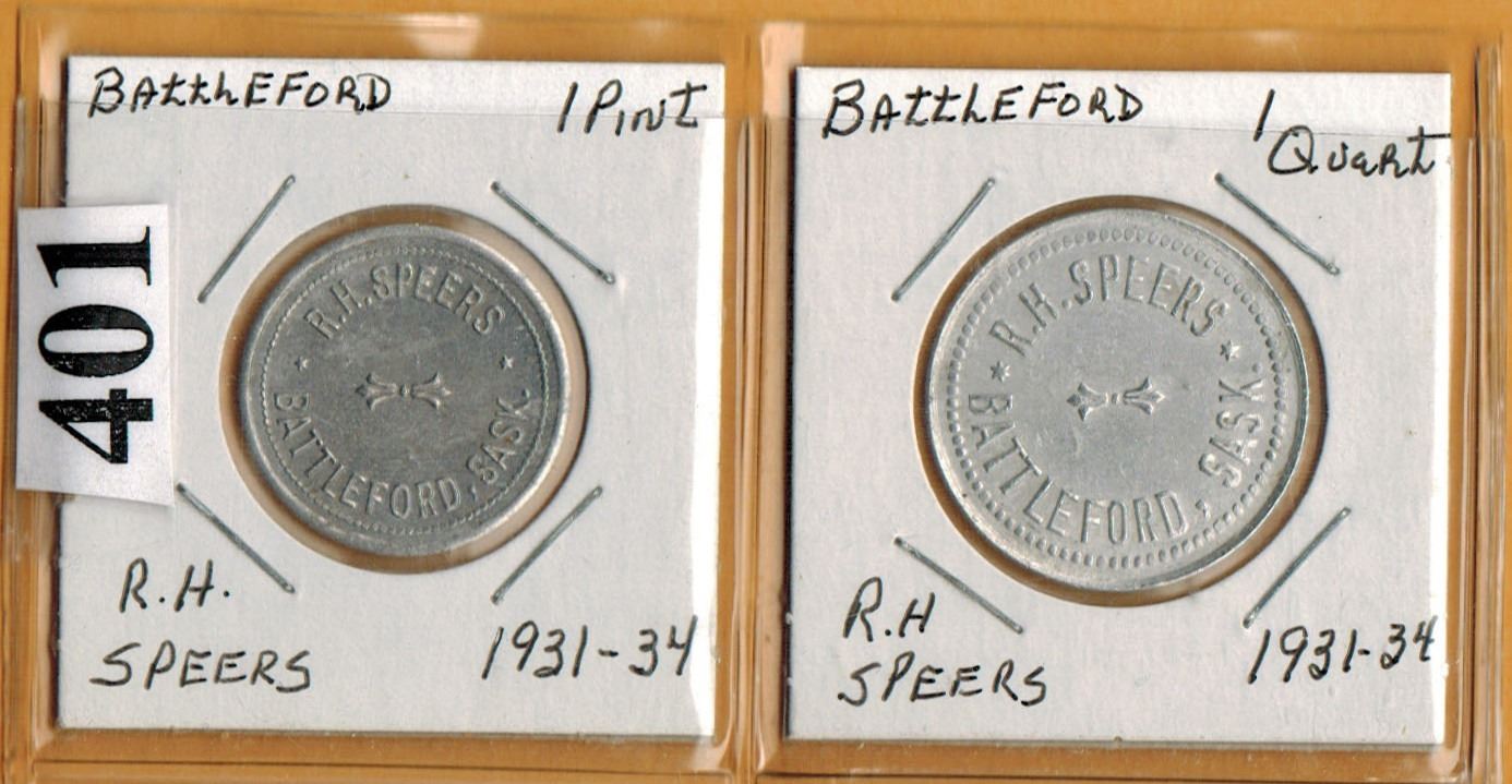 BATTLEFORD DAIRY TOKENS - R.H. SPEERS - PINT & QUART - Used from 1931 to 1934