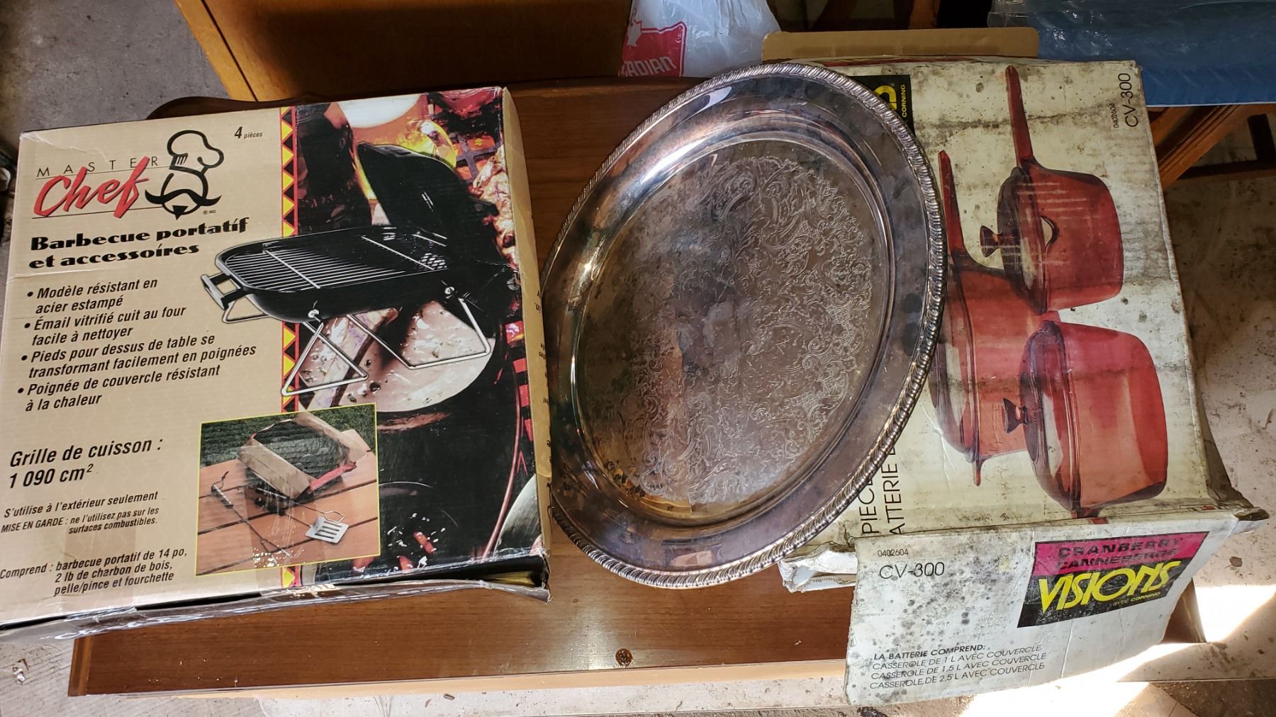 BBQ, SILVER SERVING TRAY, 6PC CORNING COOKWARE