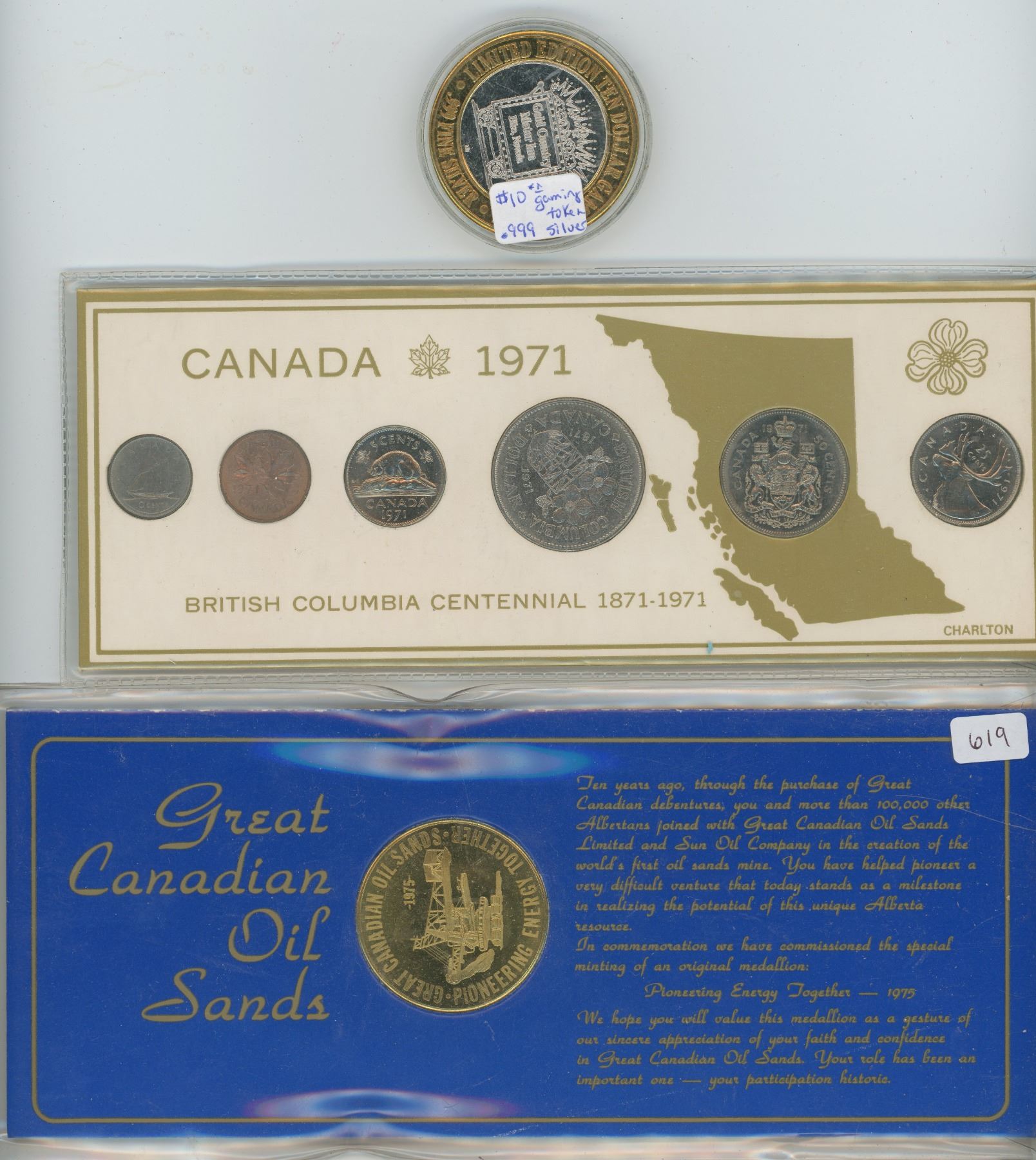 BC 1971 Centennial Coin Set, 1975 Oil Sands Medallion, and Elko Nevada Gaming Token (.999 Silver)