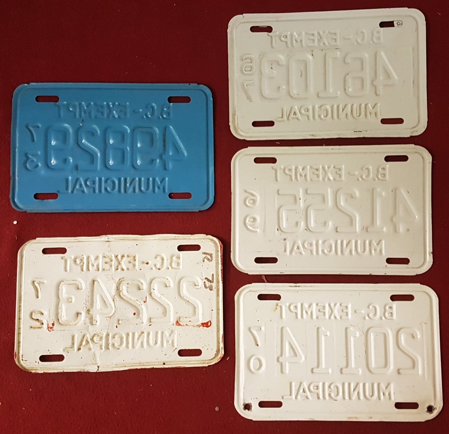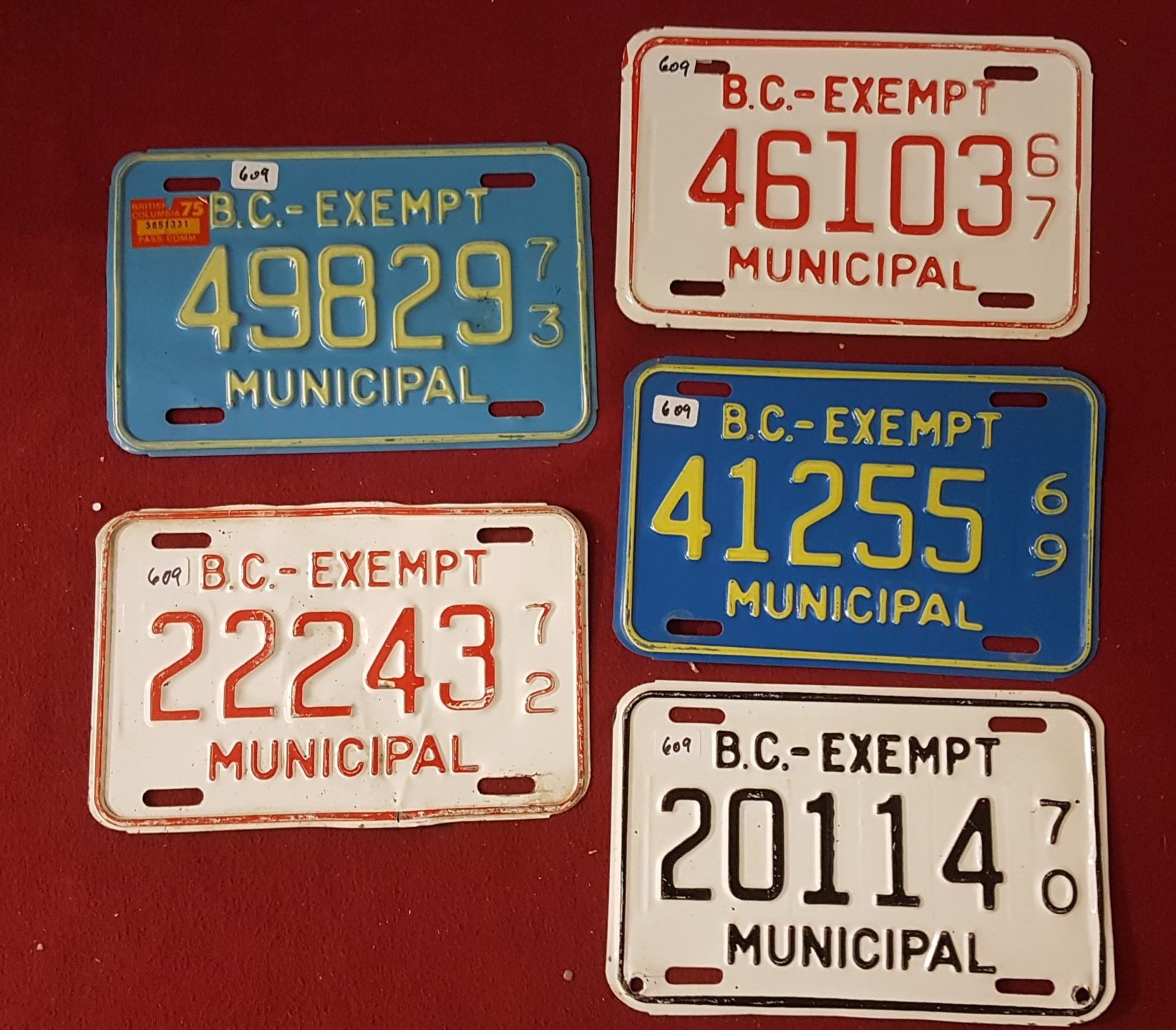 BC Exempt Municipal Plates 67, 69, 70, 72, 73